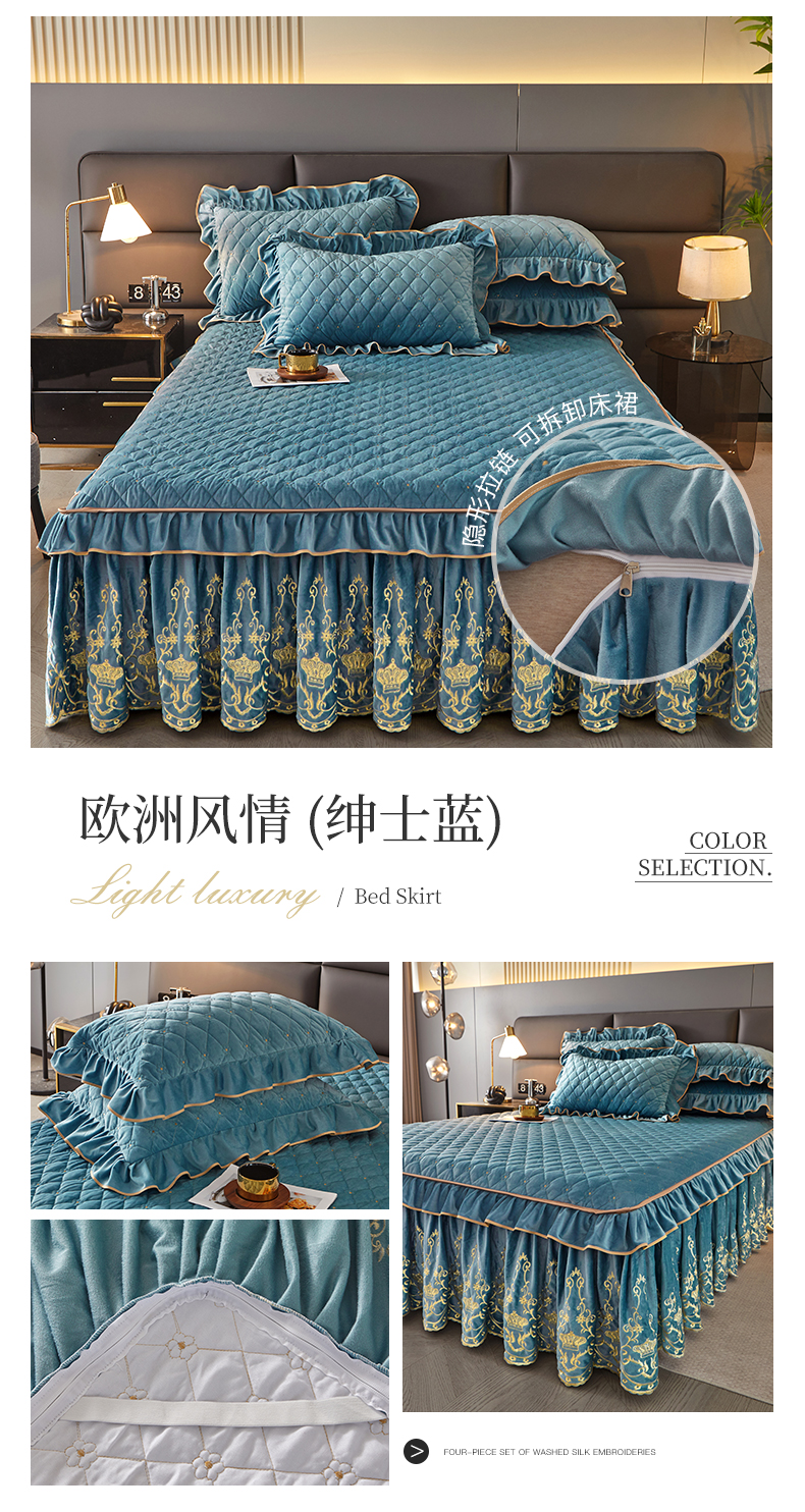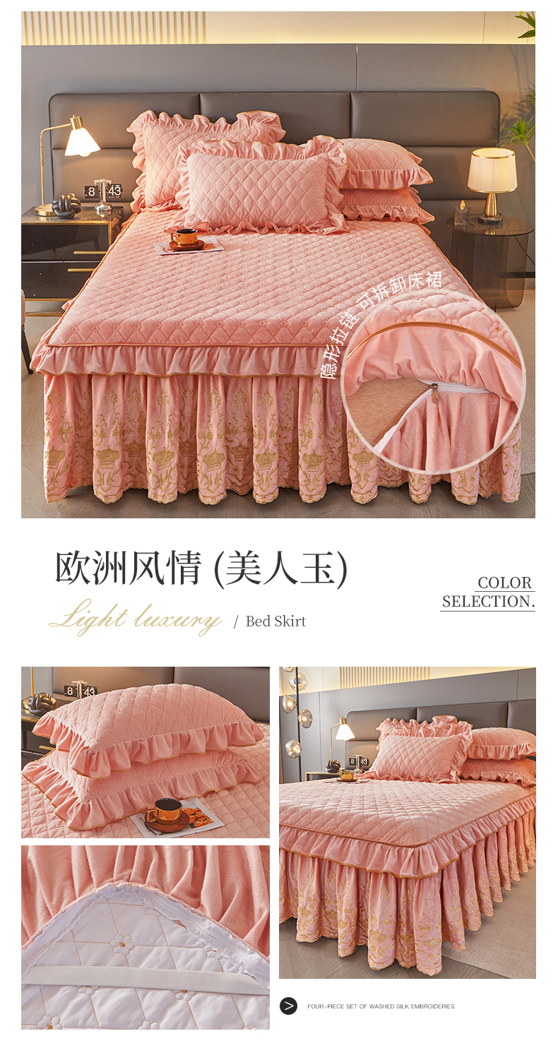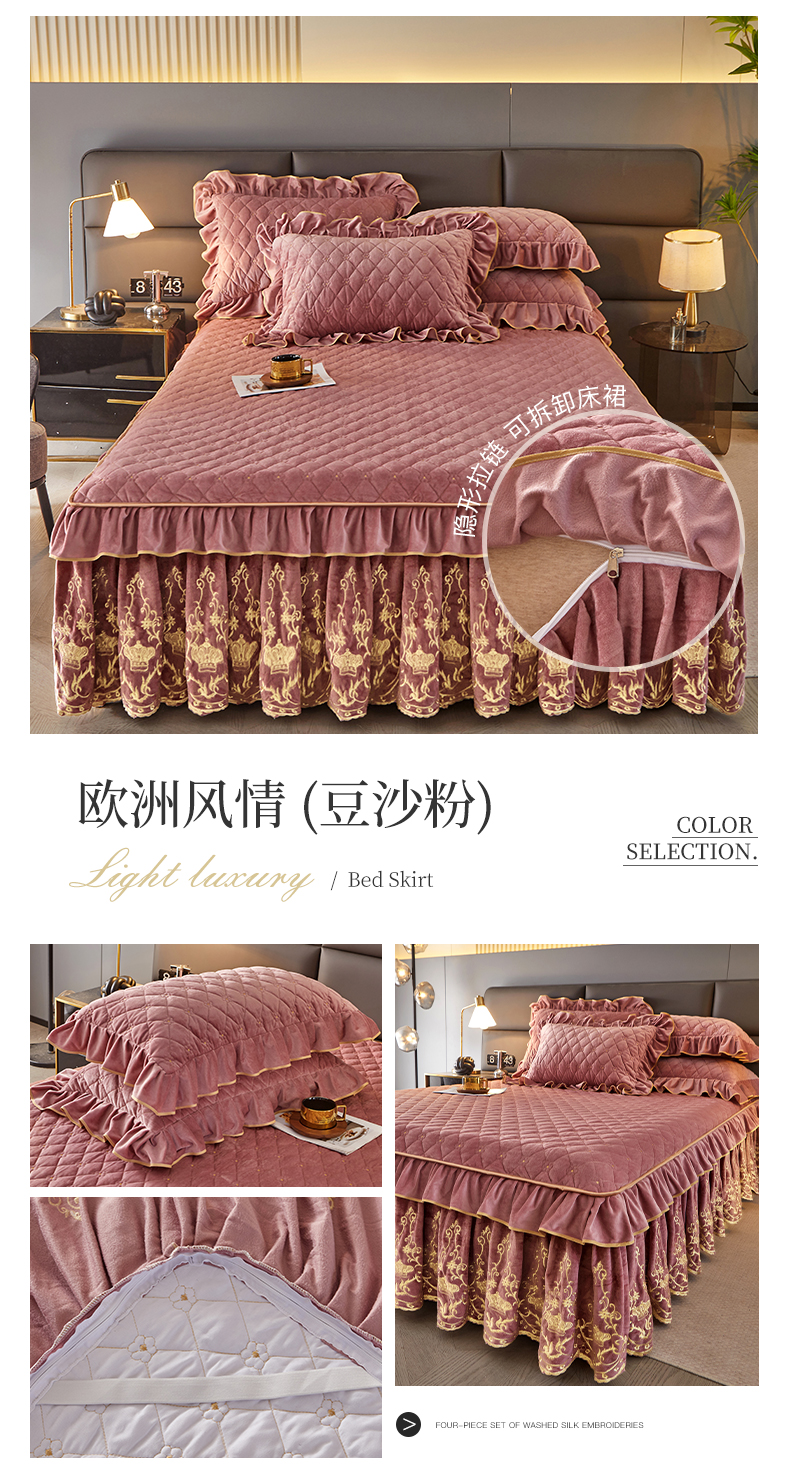 (总)罗艺轩 2024新款欧洲风情宝宝绒可拆卸夹棉床裙三件套