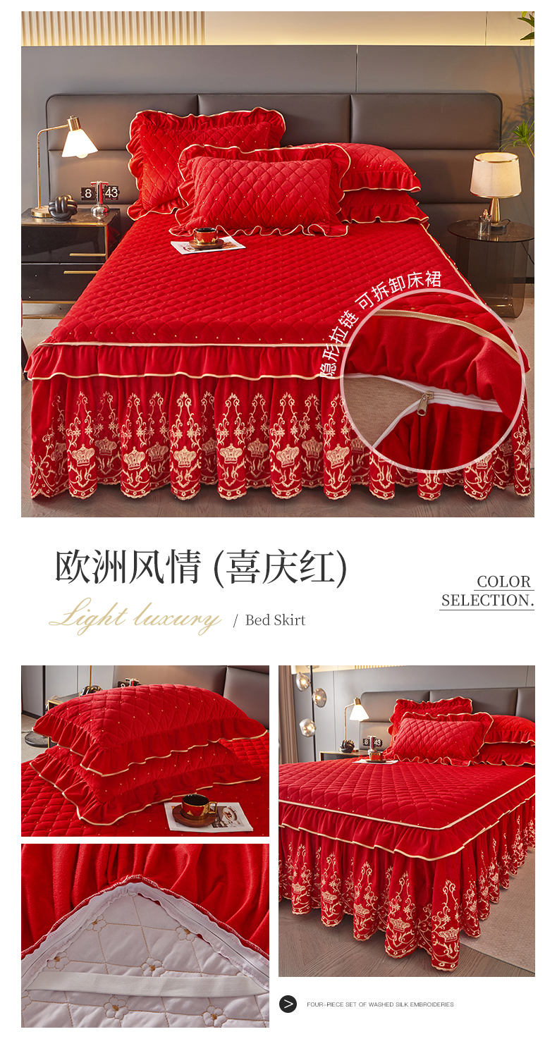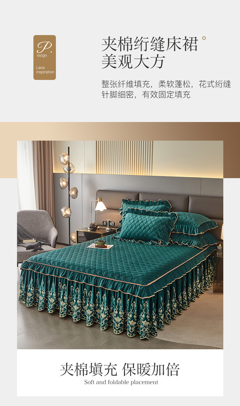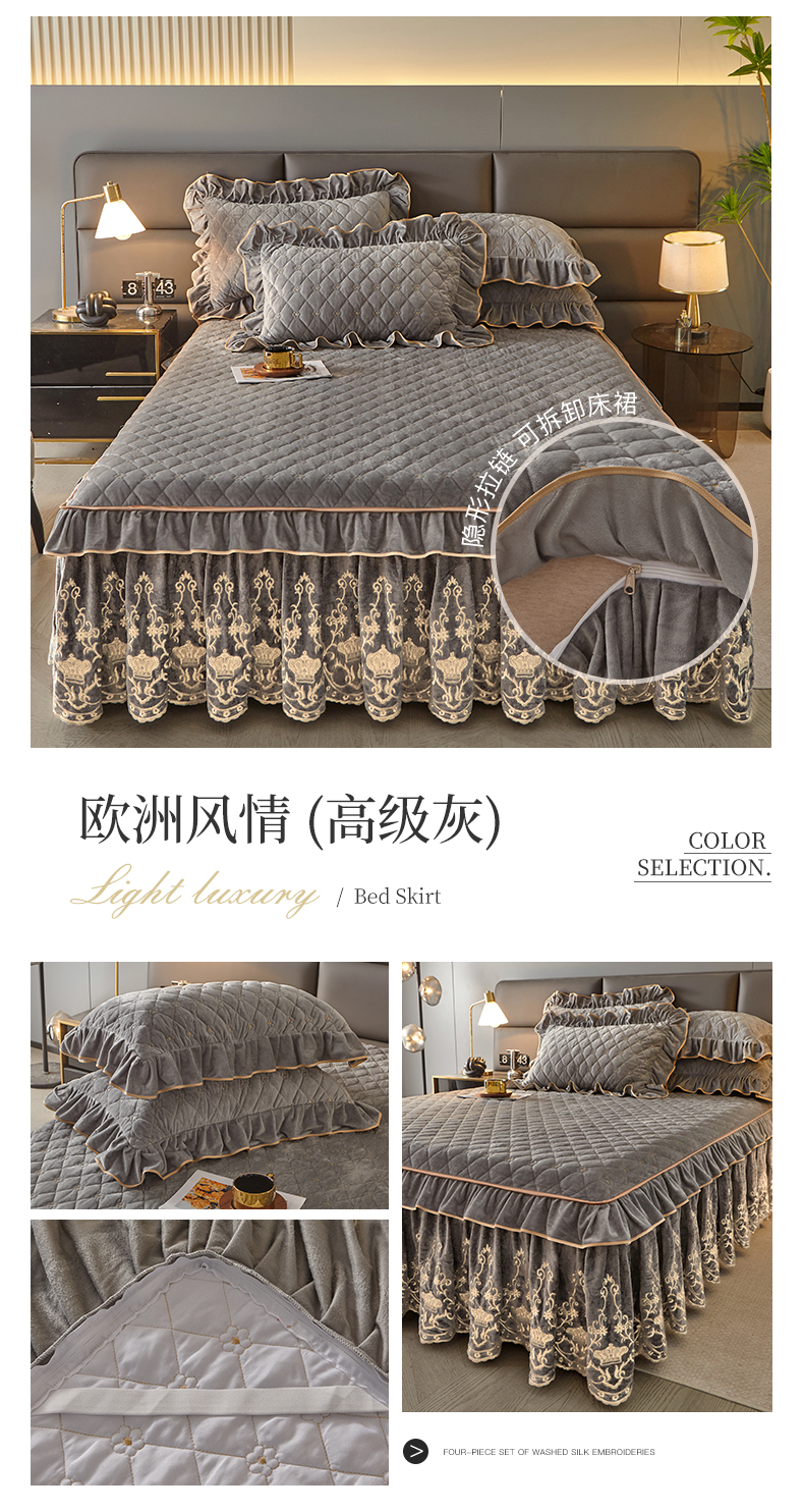 (总)罗艺轩 2024新款欧洲风情宝宝绒可拆卸夹棉床裙三件套