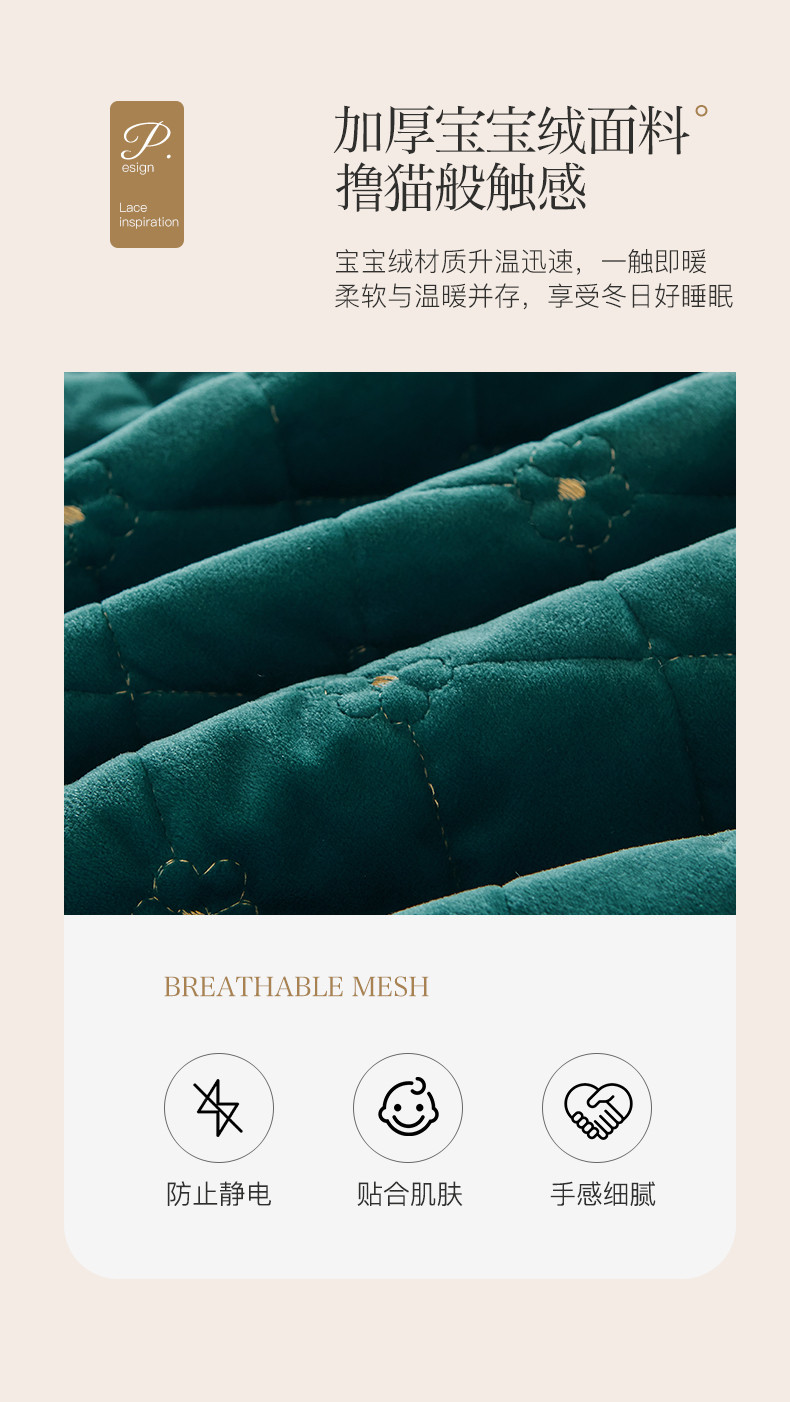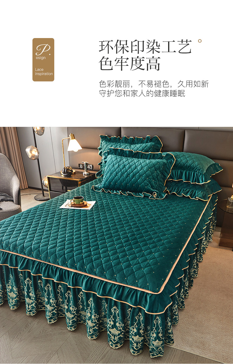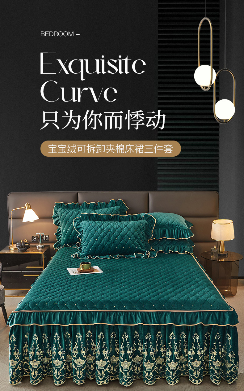 商品名称:(总)罗艺轩 2024新款欧洲风情宝宝绒可拆卸夹棉床裙三件套