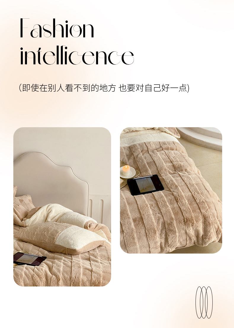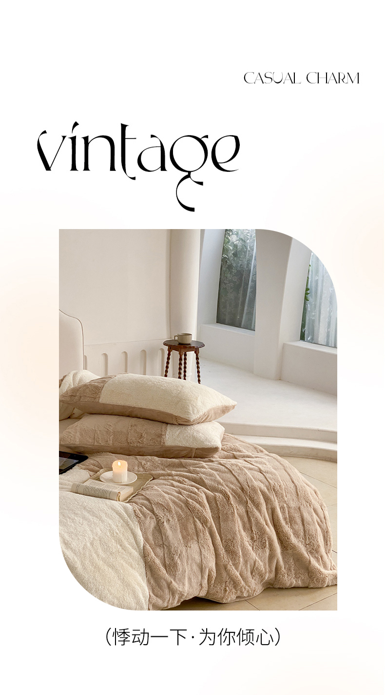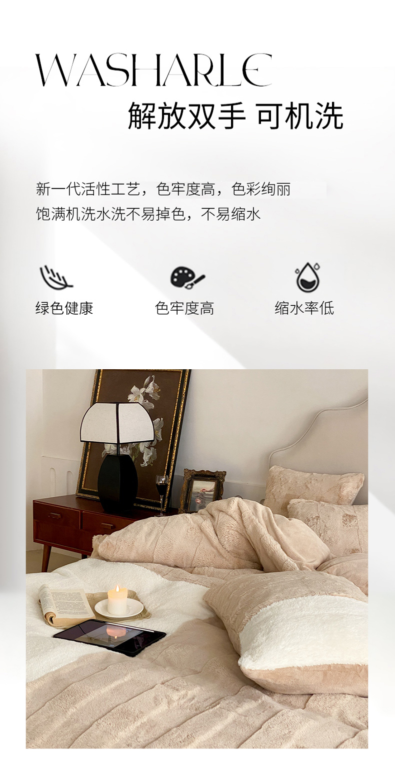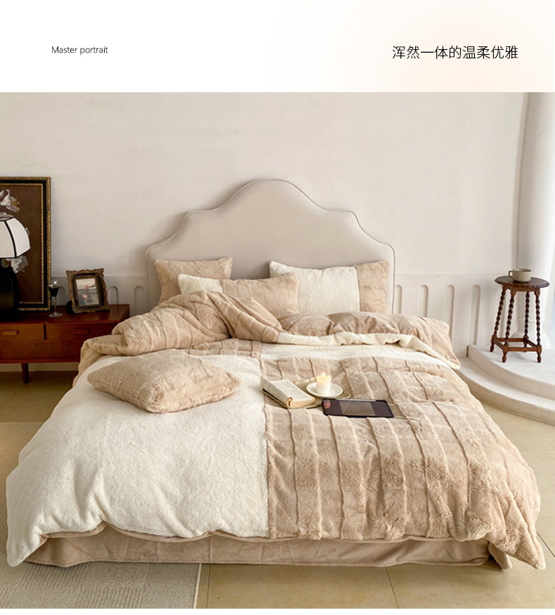 商品名称:潘朵拉 2023新款兔毛四宫格极有家小红书风格拼色牛奶绒四件套 梵希(奶咖)