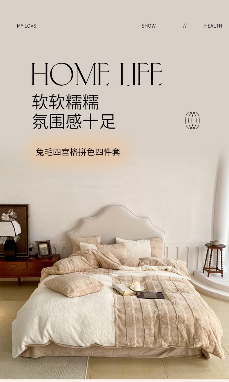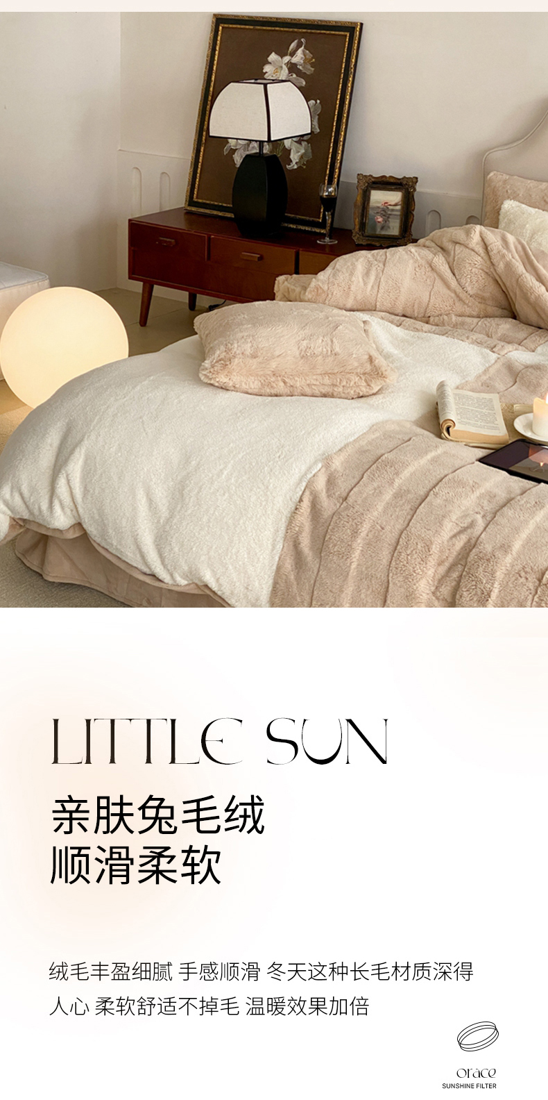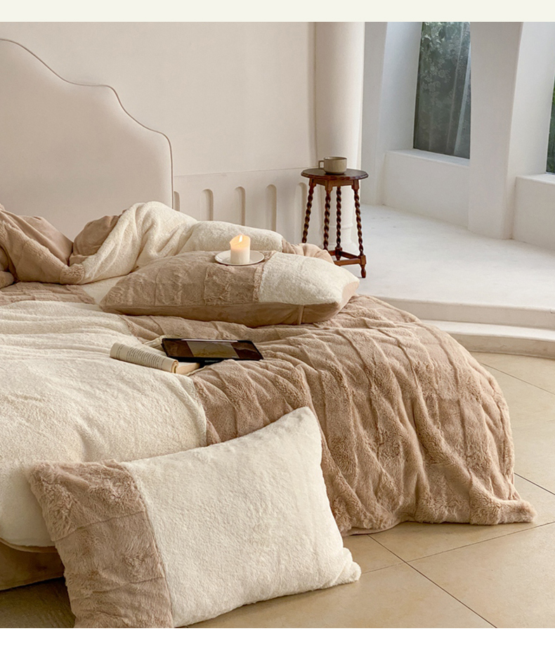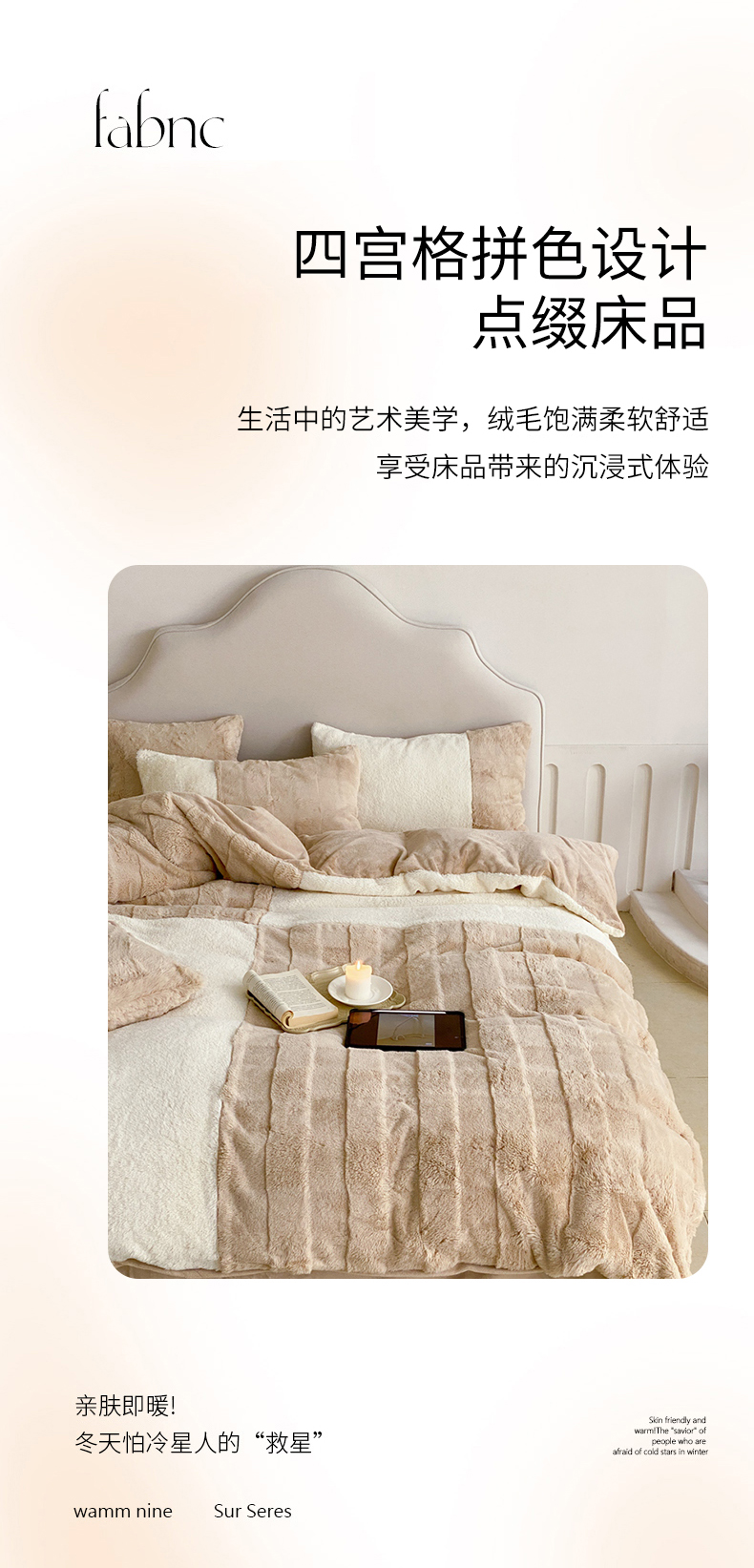 潘朵拉 2023新款兔毛四宫格极有家小红书风格拼色牛奶绒四件套 梵希(奶咖)