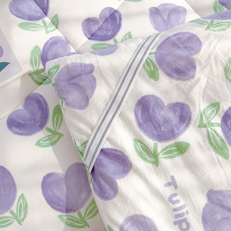 商品名称:蓝冰家纺 2024新款蓝冰双层纱印花床垫 郁金香紫