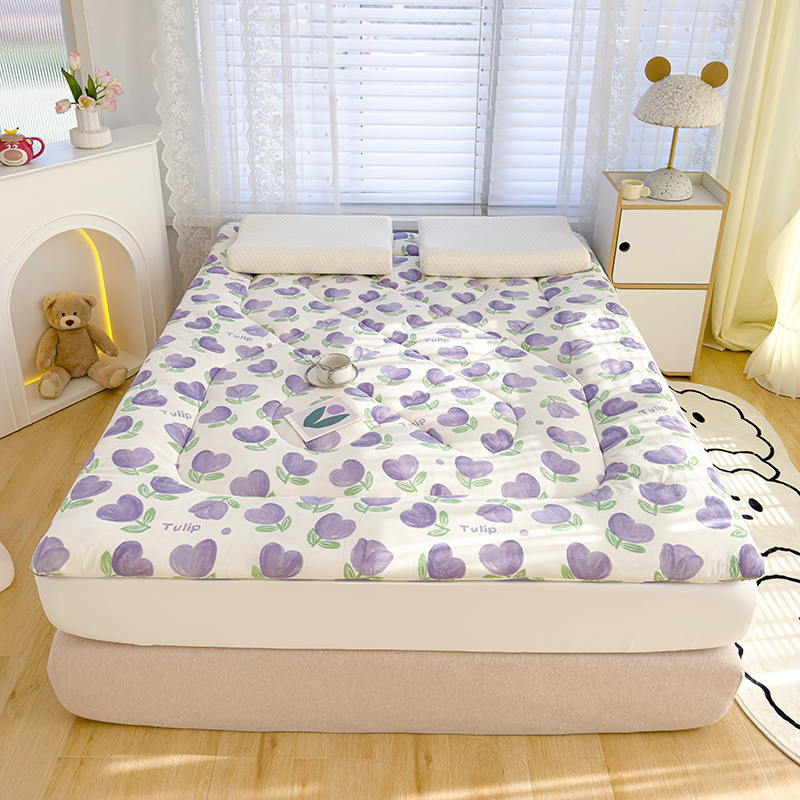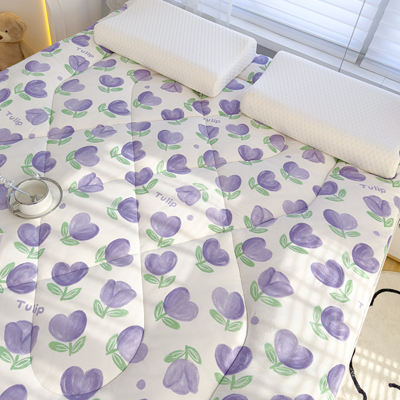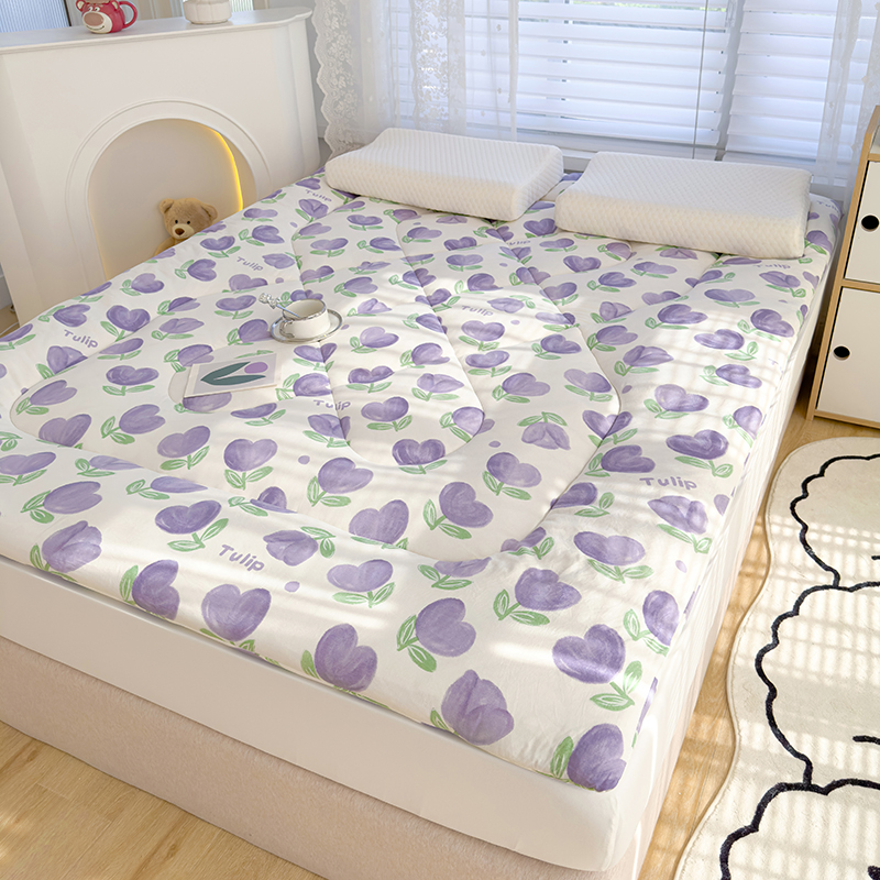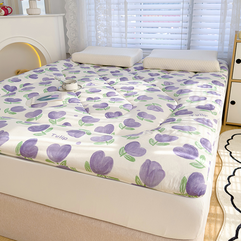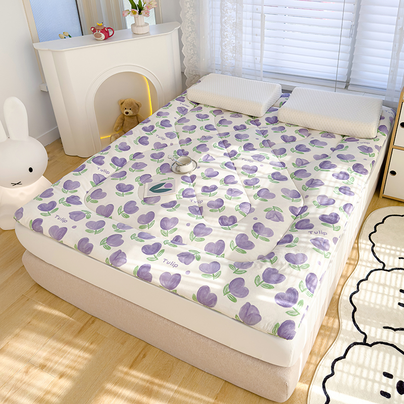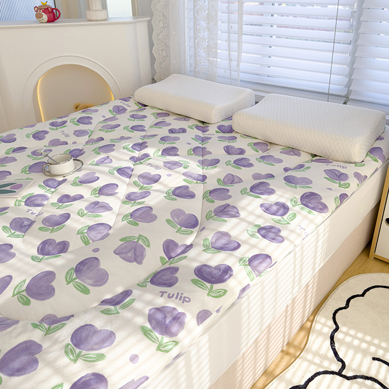 蓝冰家纺 2024新款蓝冰双层纱印花床垫 郁金香紫