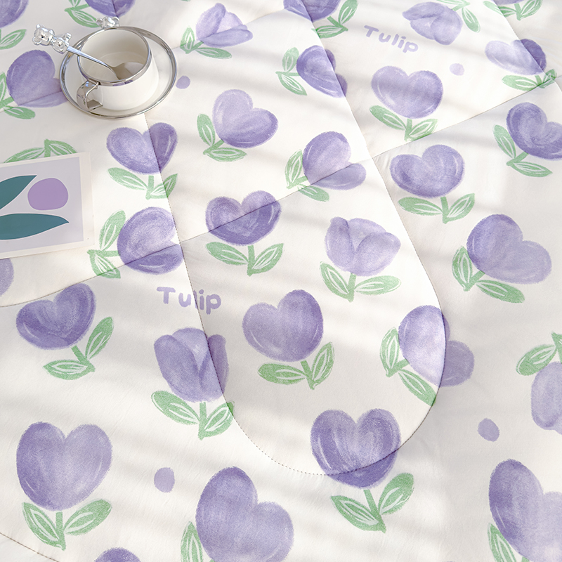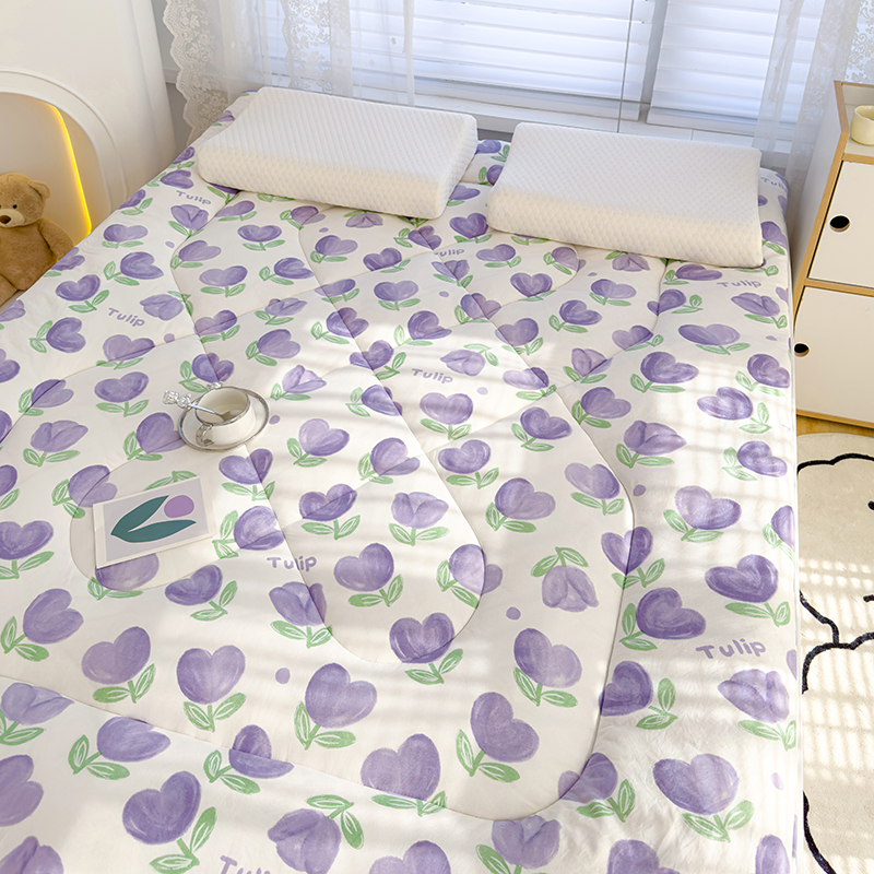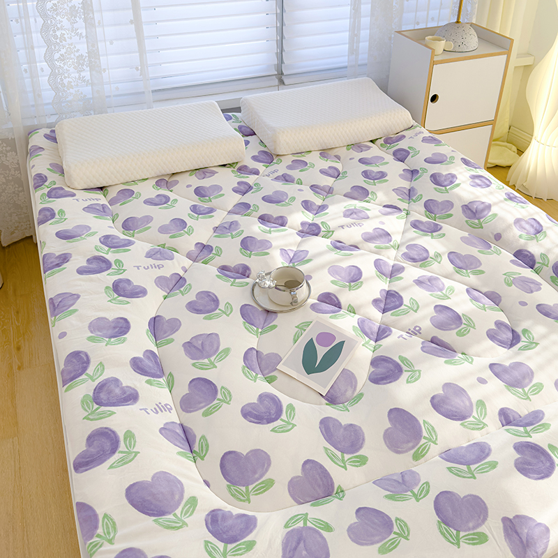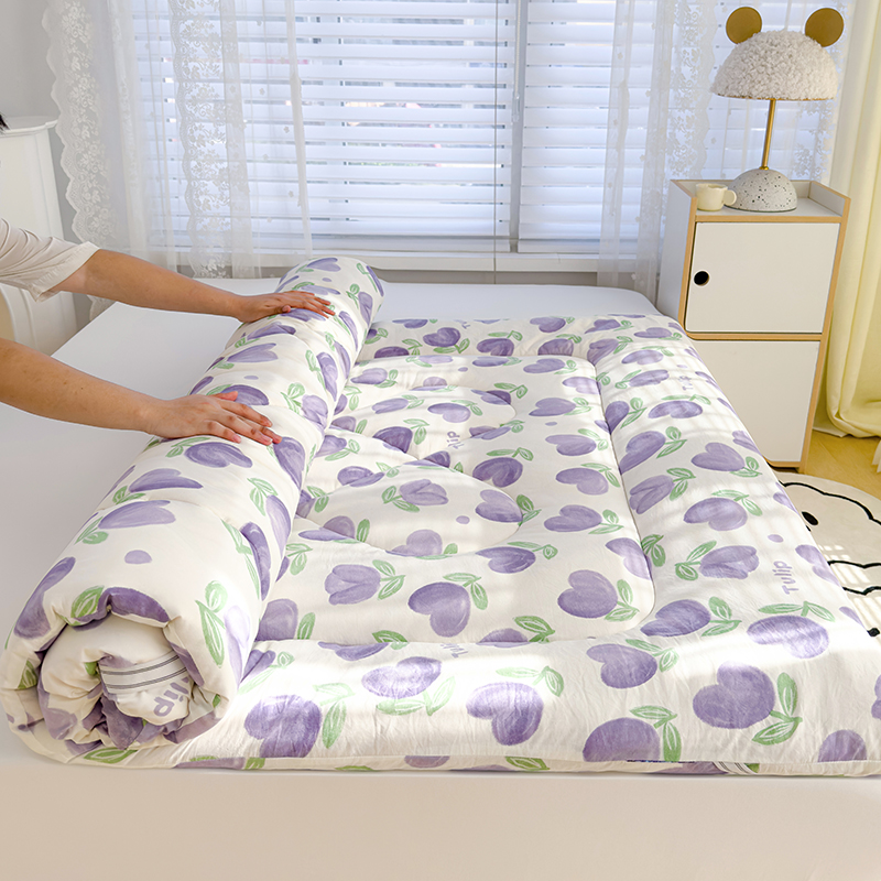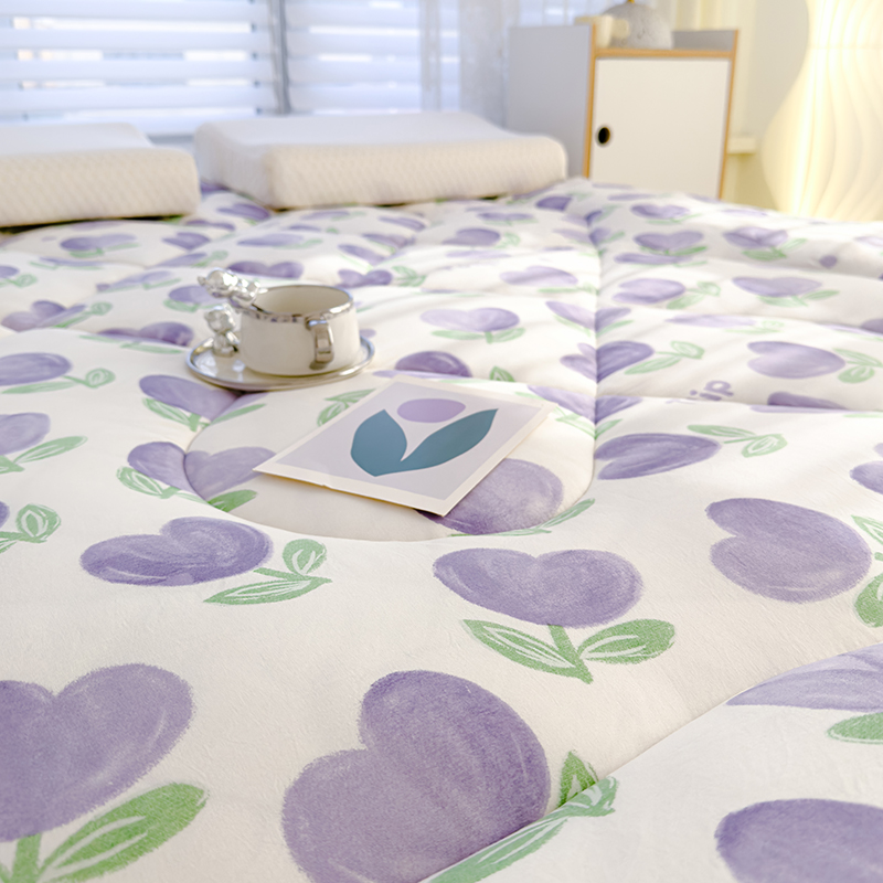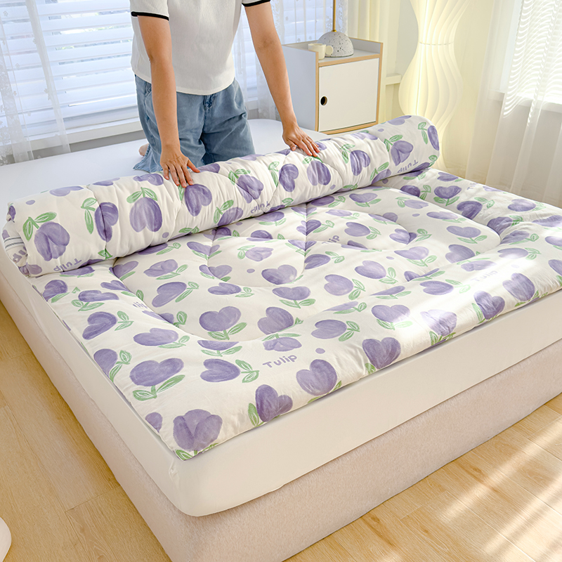 蓝冰家纺 2024新款蓝冰双层纱印花床垫 郁金香紫