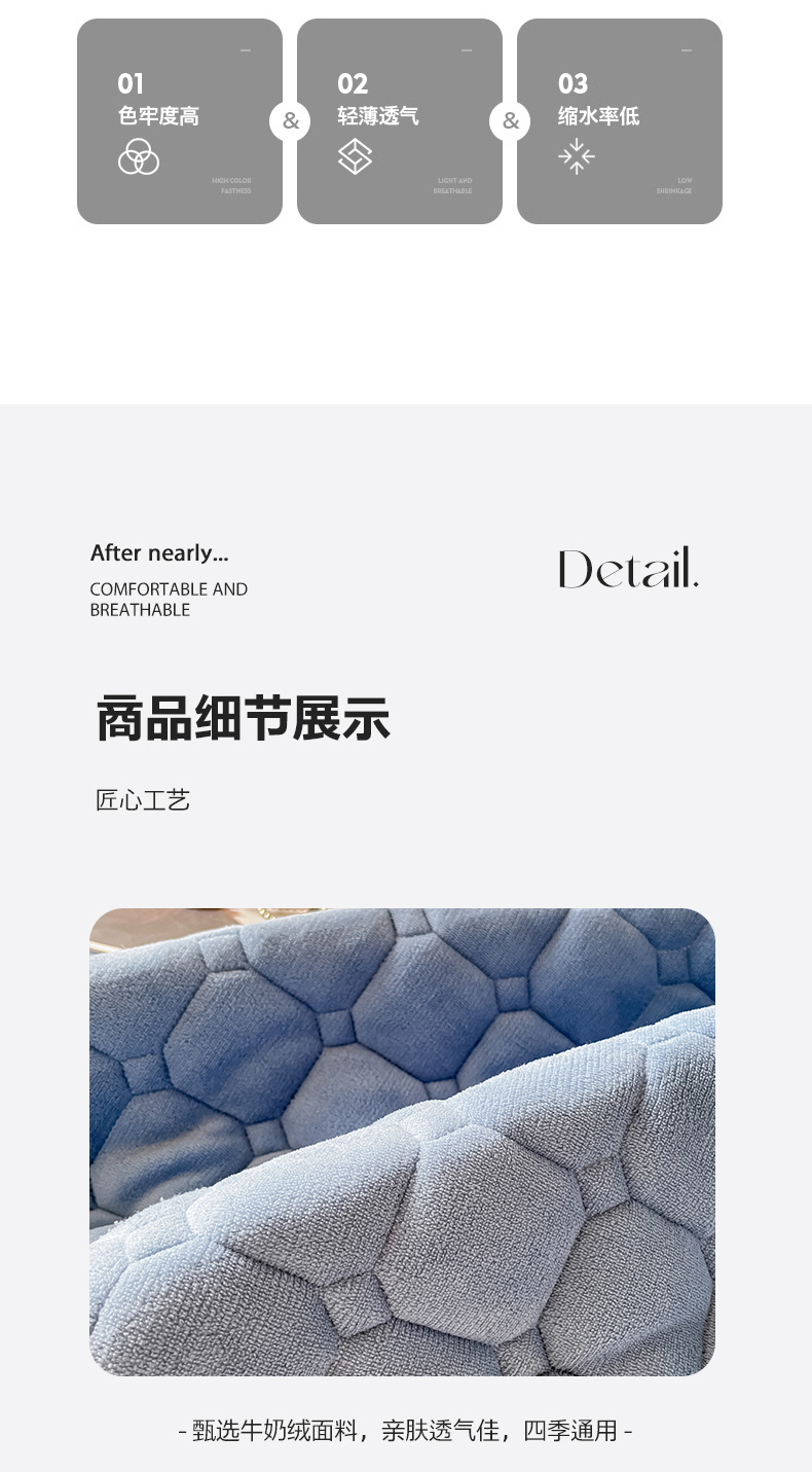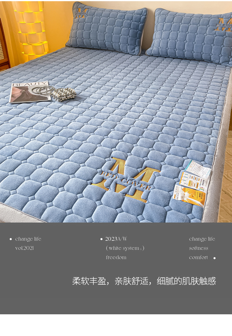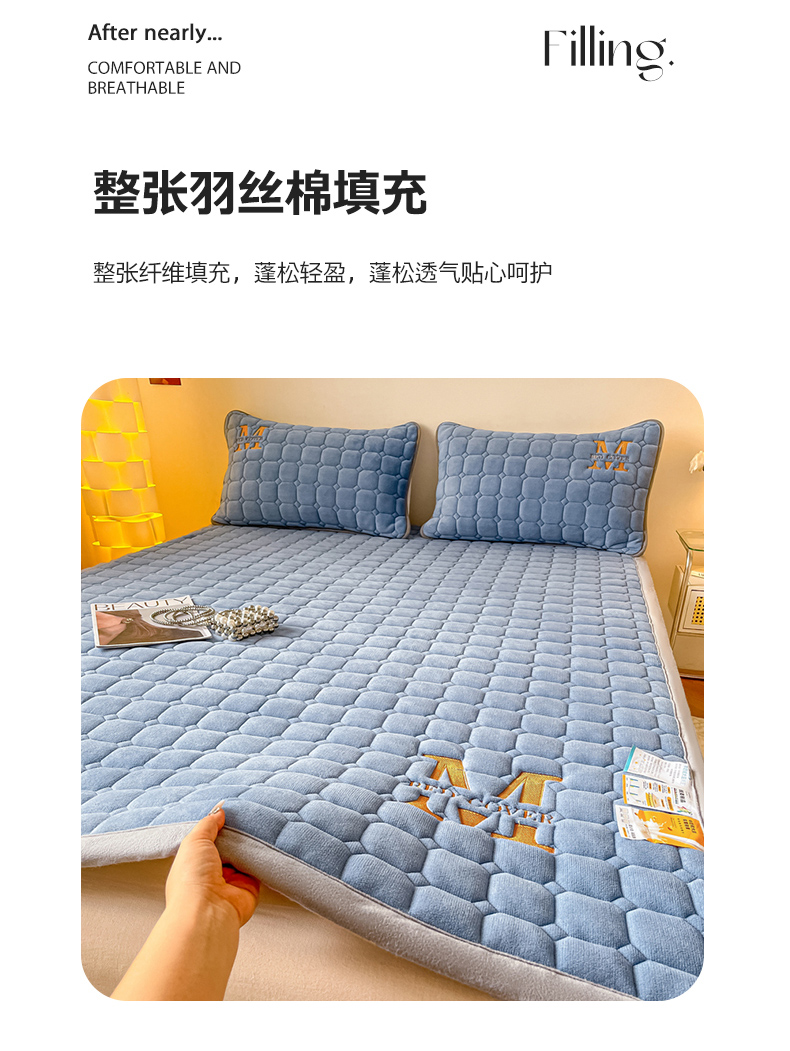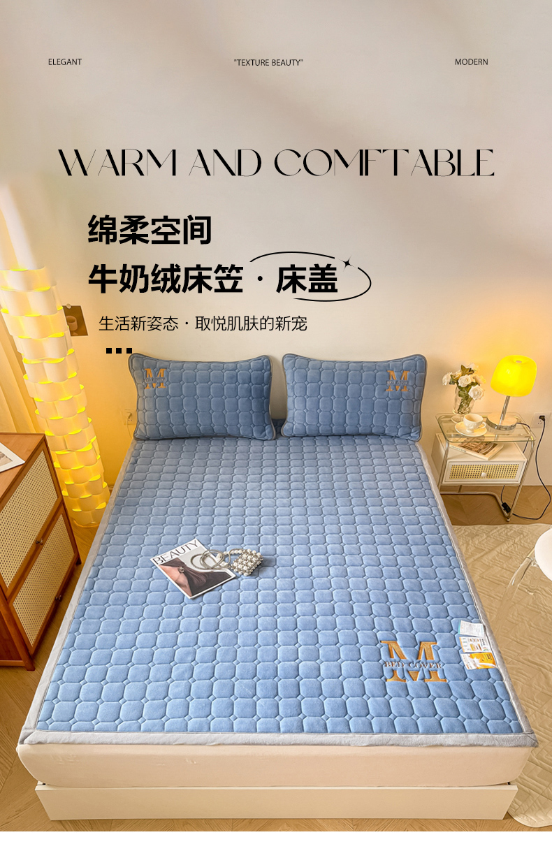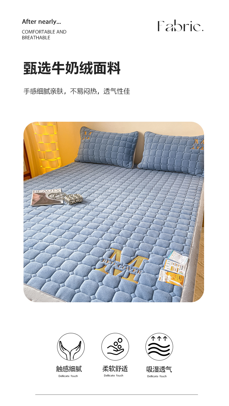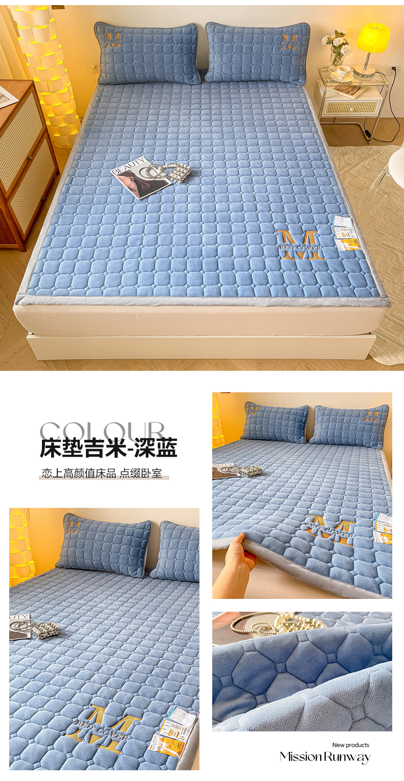 当前位置: 91家纺网 > 商品网购 > 床垫/床褥 > 普通床垫 > 慕尚家纺 2025新款牛奶绒夹棉宽边工艺系列床垫三件套-吉米 床垫吉米-深蓝