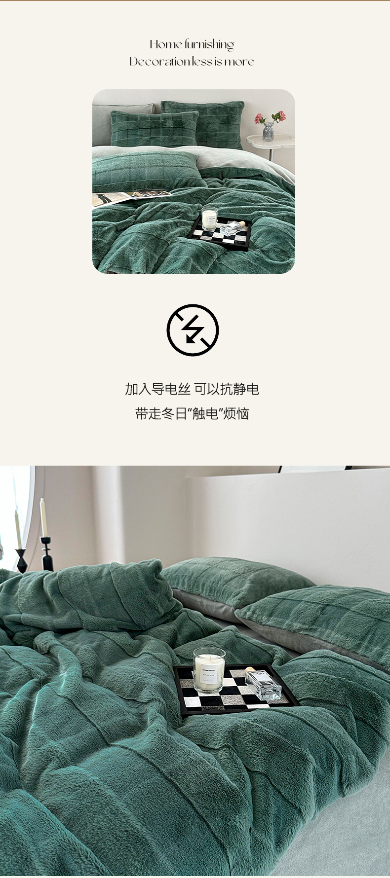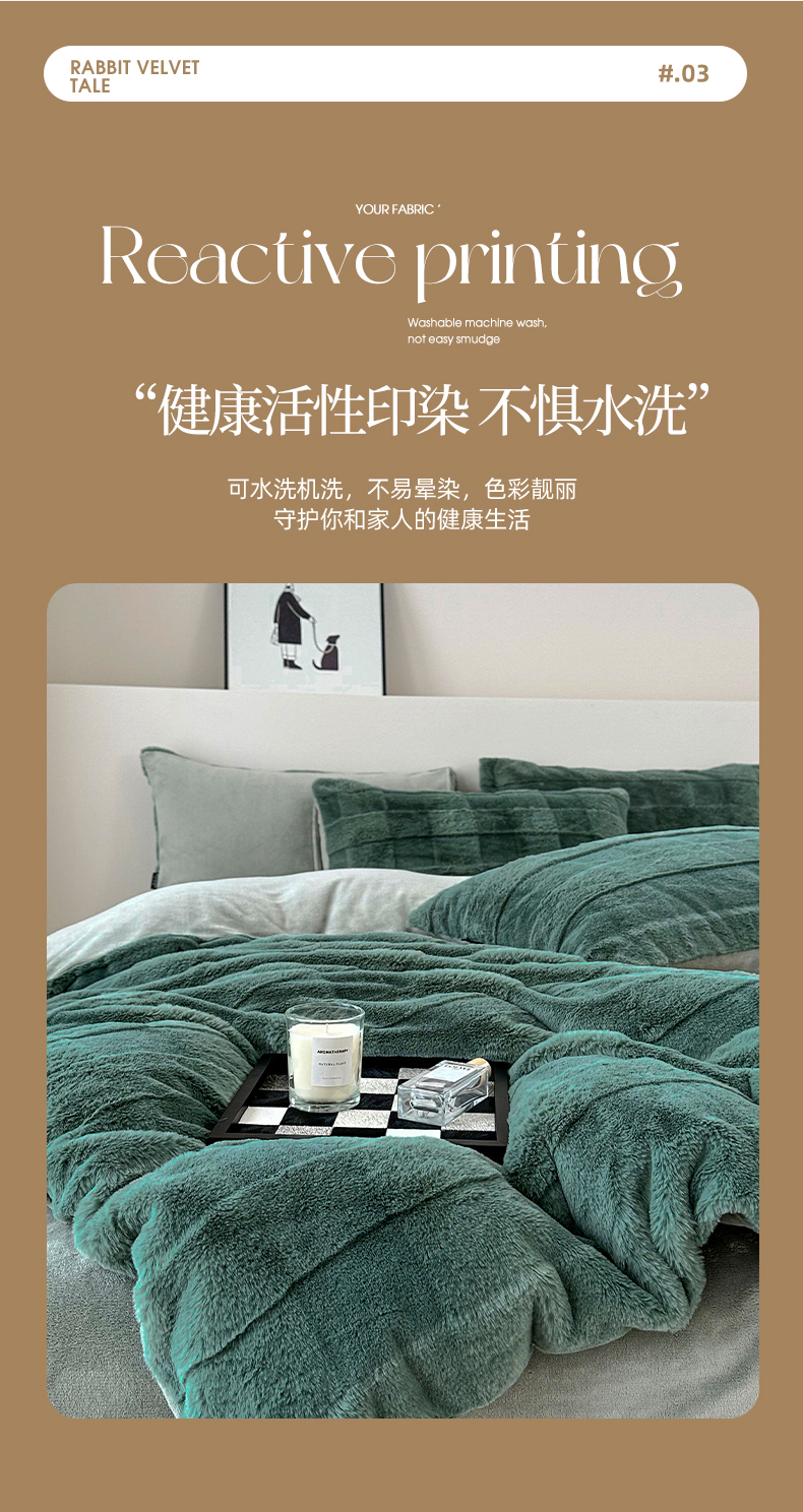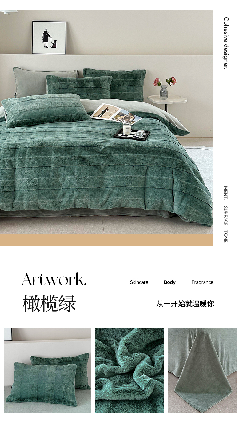 商品名称:乐视 2024新款兔兔绒立体剪花绒四件套 黎梦-橄榄绿