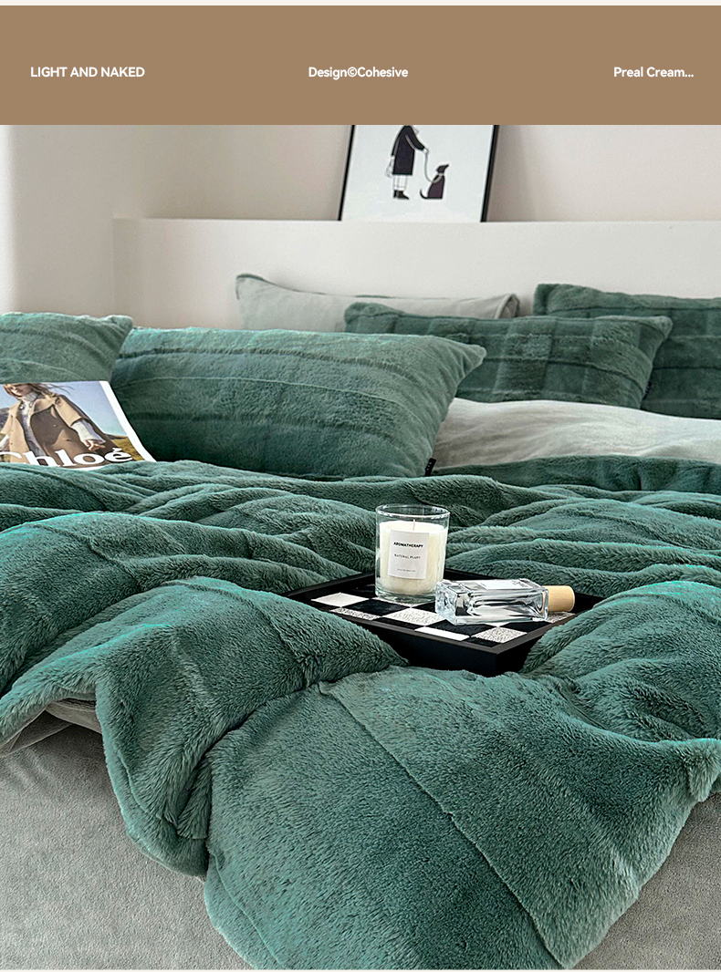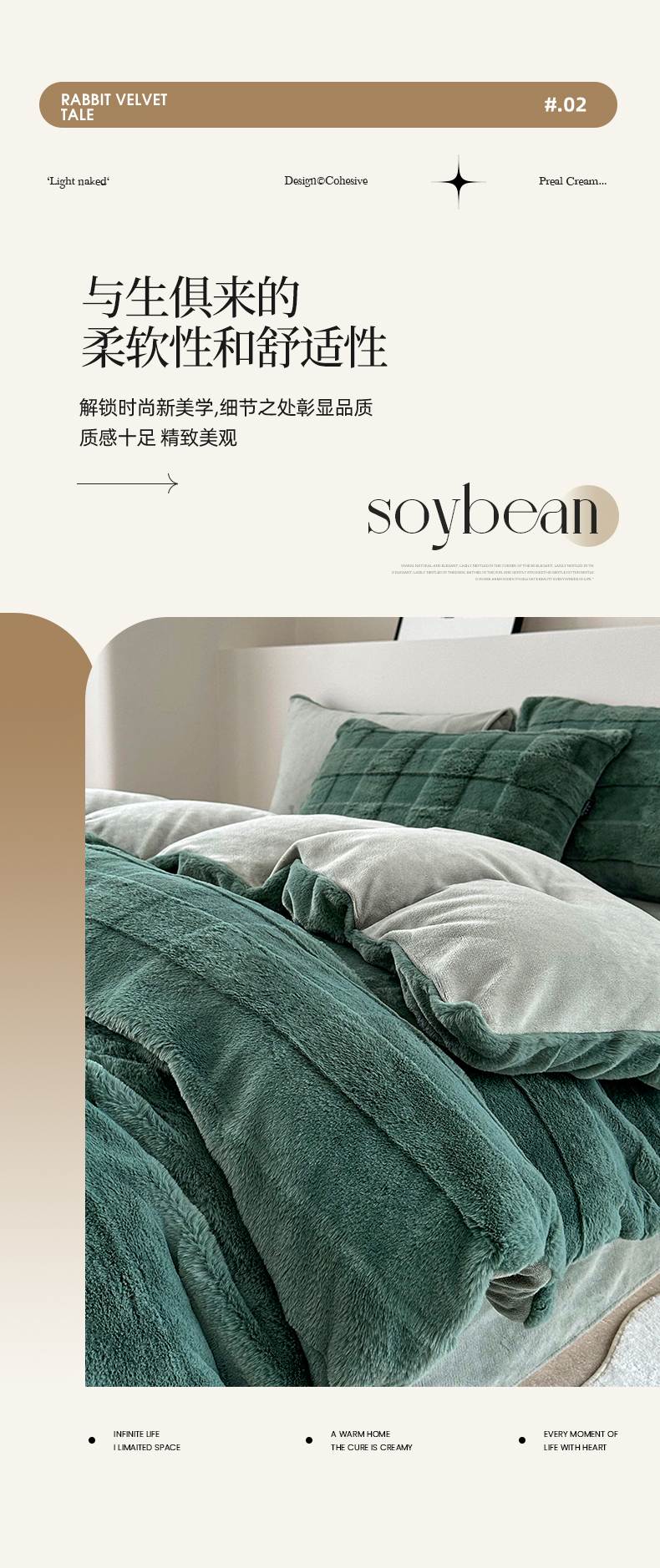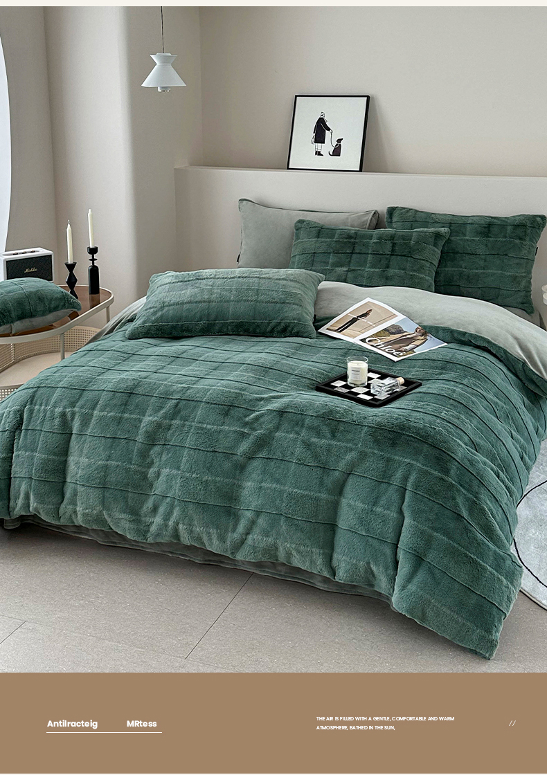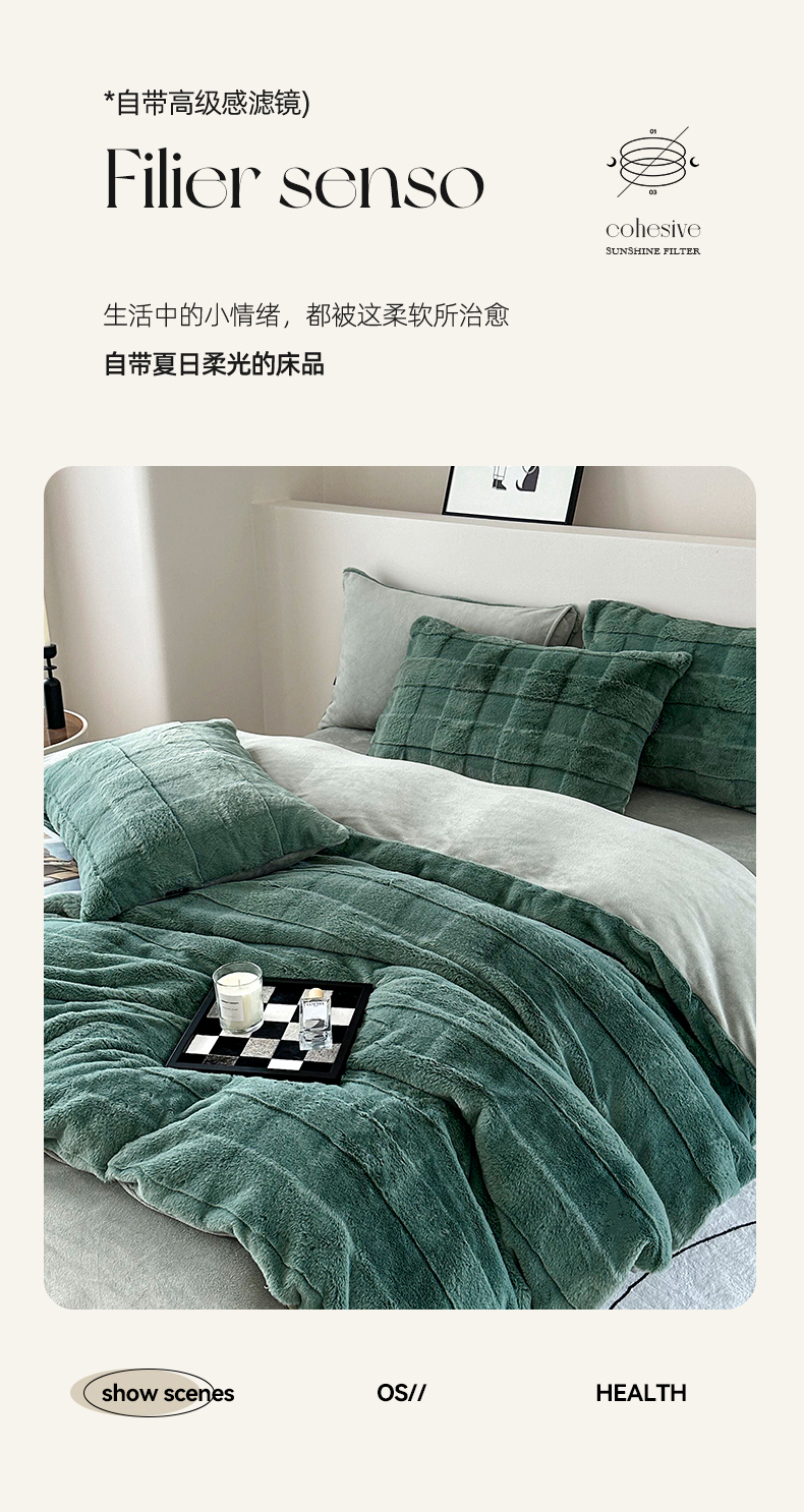 商品名称:乐视 2024新款兔兔绒立体剪花绒四件套 黎梦-橄榄绿