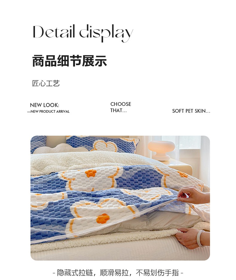 (总)网客家纺 2025新款羊毛绒牛奶绒夹棉床盖四件套,豹点-深灰,简格-黑色,简格-咖色,空间-红色,泥点-灰色,泥点-咖色,维奥-灰色,斜格-灰色,斜格-墨绿