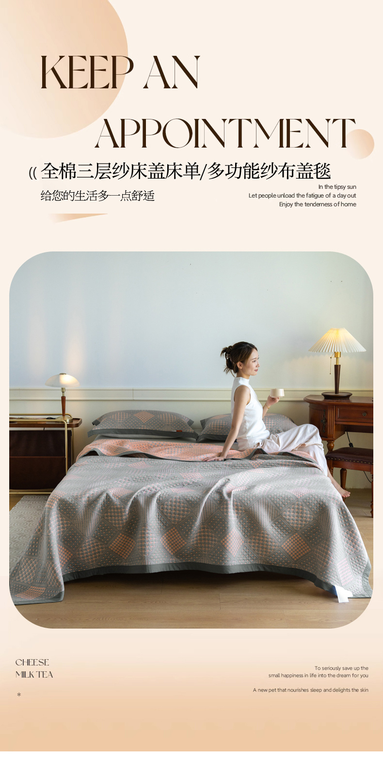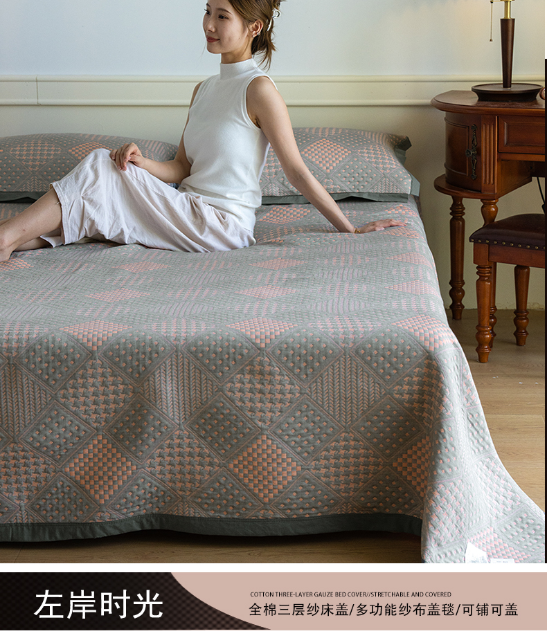 棠薇 2023新款秋冬全棉三层纱床盖多功能纱布毯 左岸时光