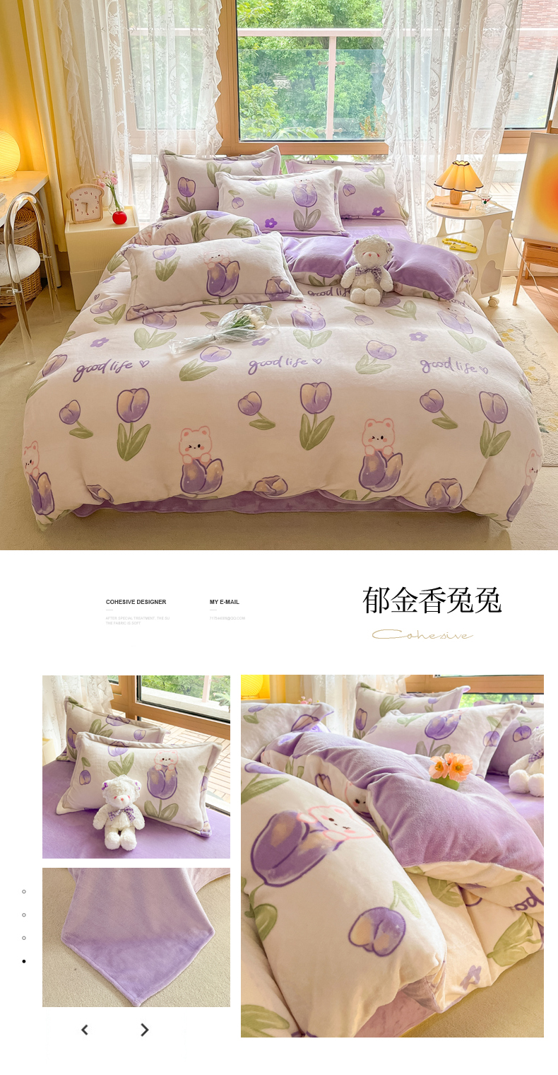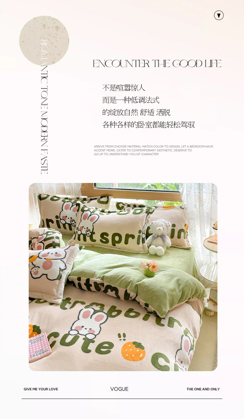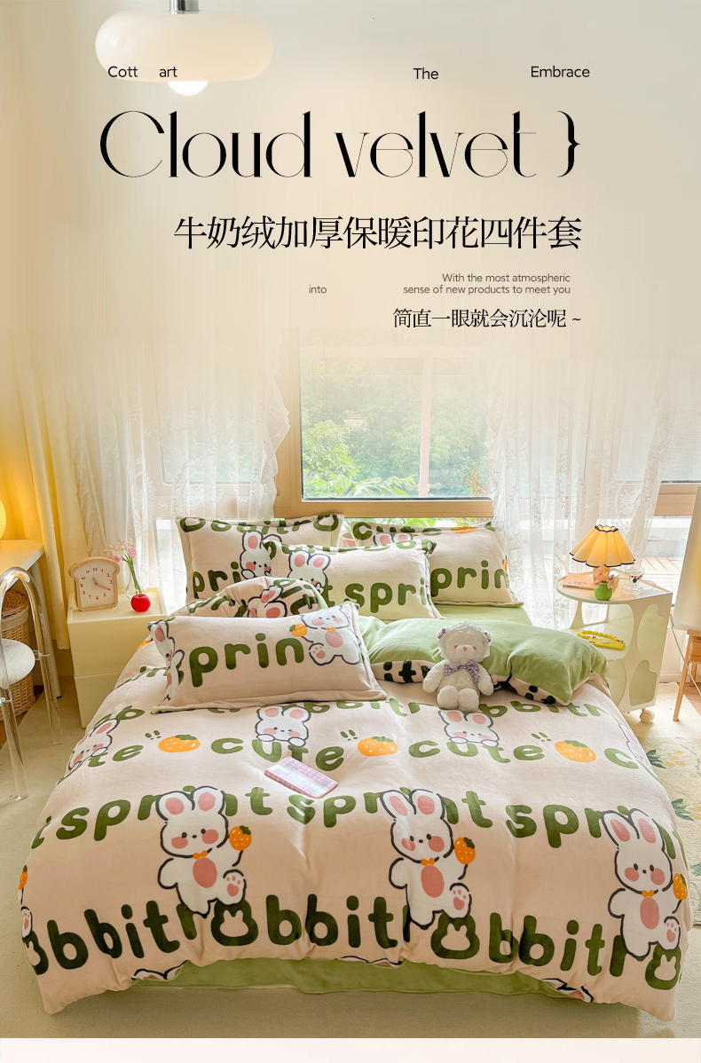 商品名称:(总)慕澄家纺 2023新款小清新牛奶绒印花四件套