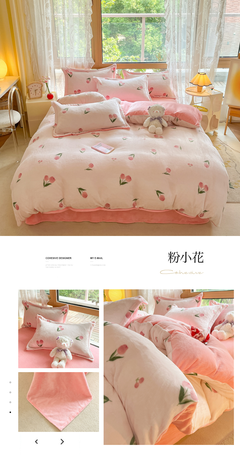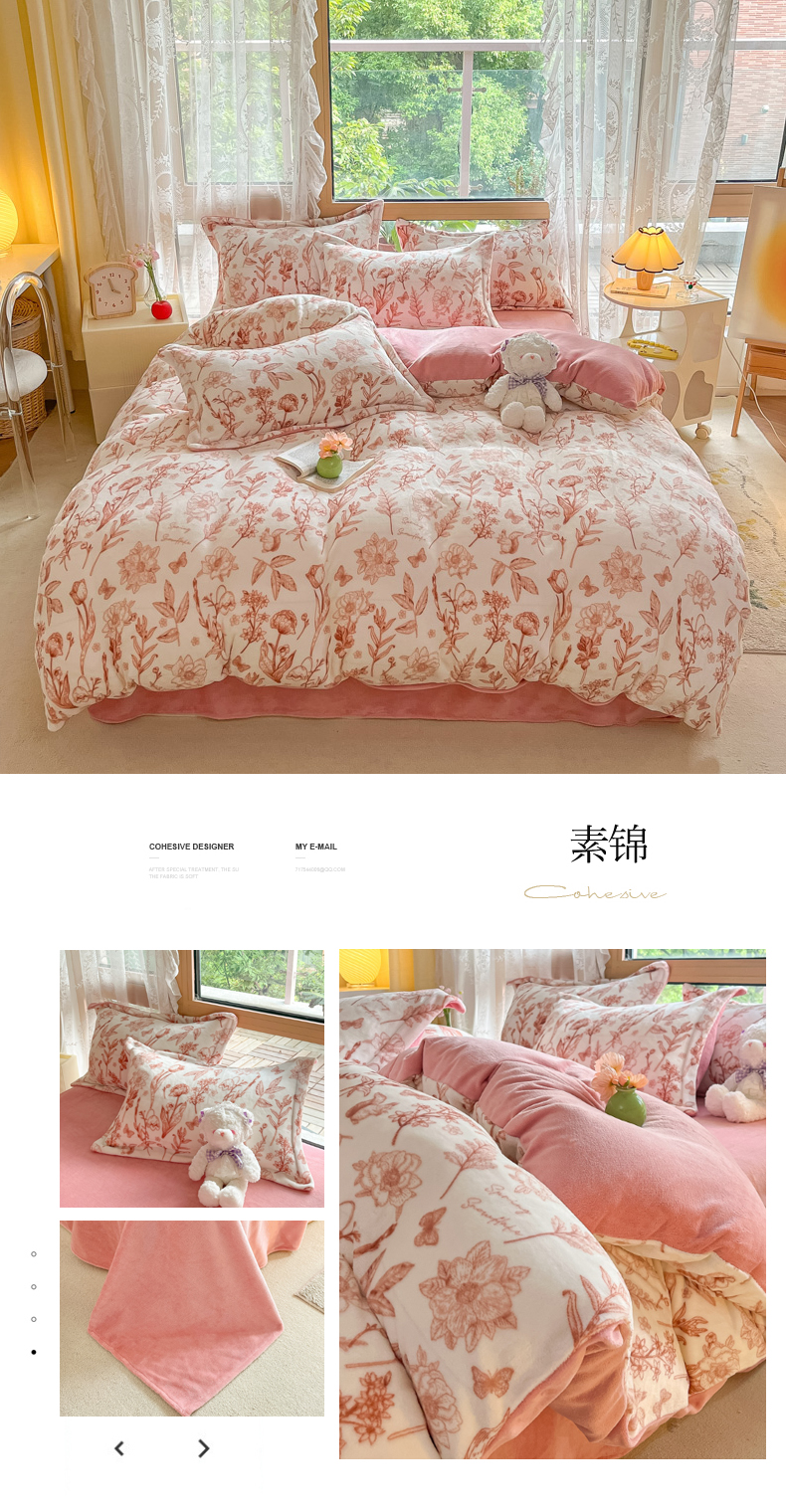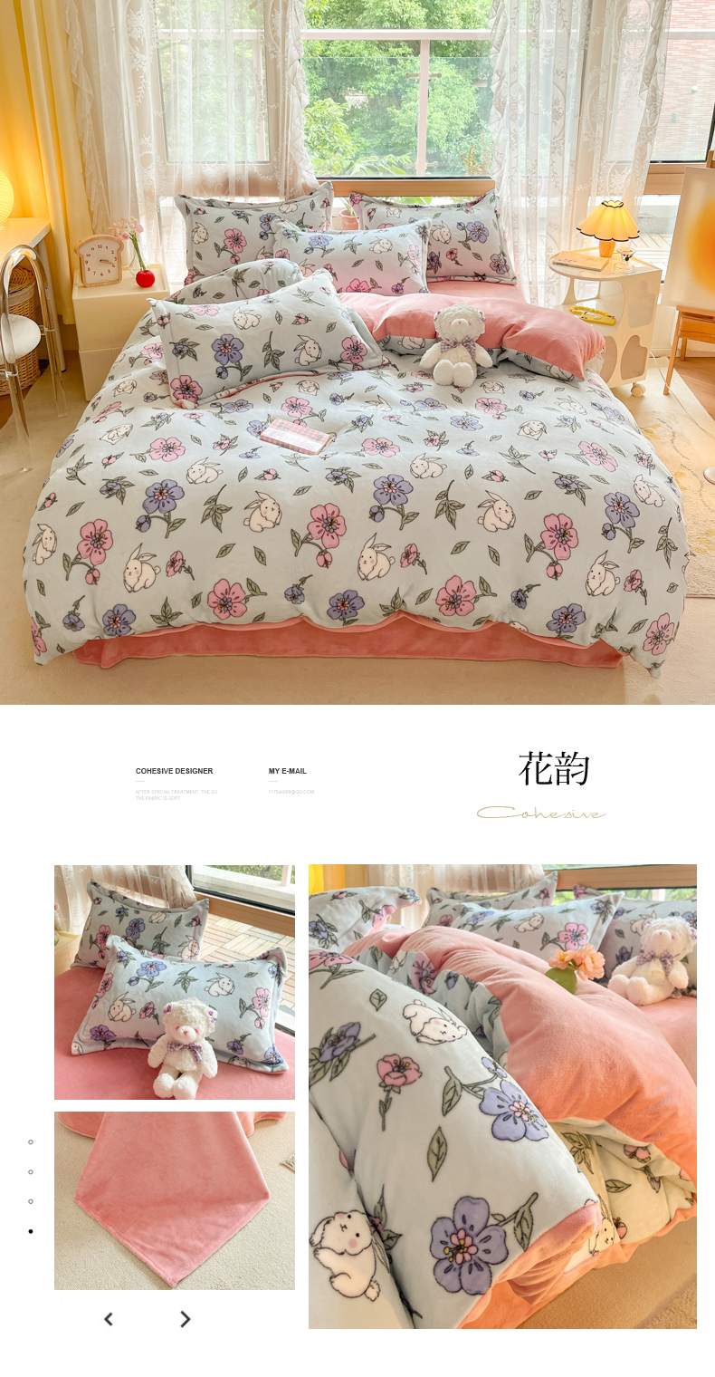 (总)慕澄家纺 2023新款小清新牛奶绒印花四件套