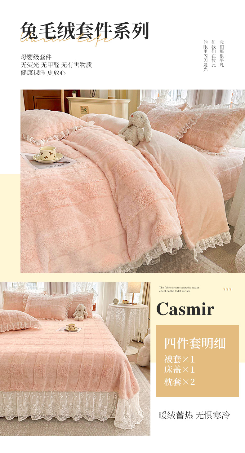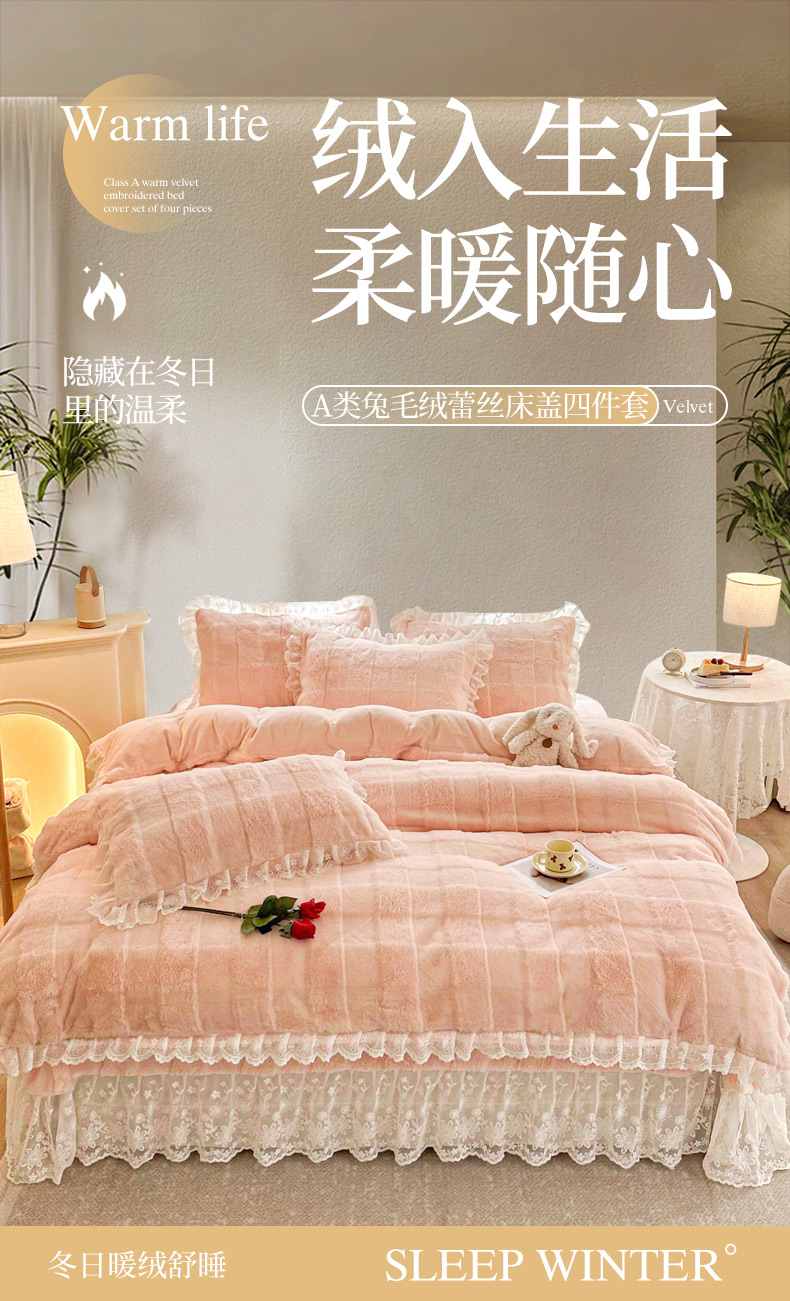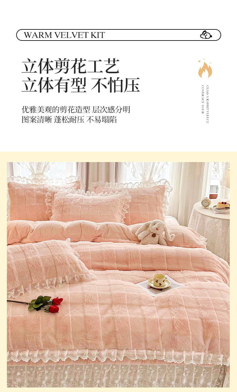 当前位置: 91家纺网 > 商品网购 > 床品套件 > 四件套 > 全棉普通四件套 > 宜凡家纺 2023新款宜凡-高克重兔绒牛奶绒床盖四件套 0方格纹-胭脂色