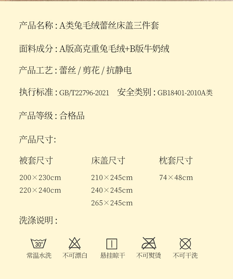 适用1.5床:被套200*230 床盖240*245 枕套48*74*2 | ¥235.00 |
