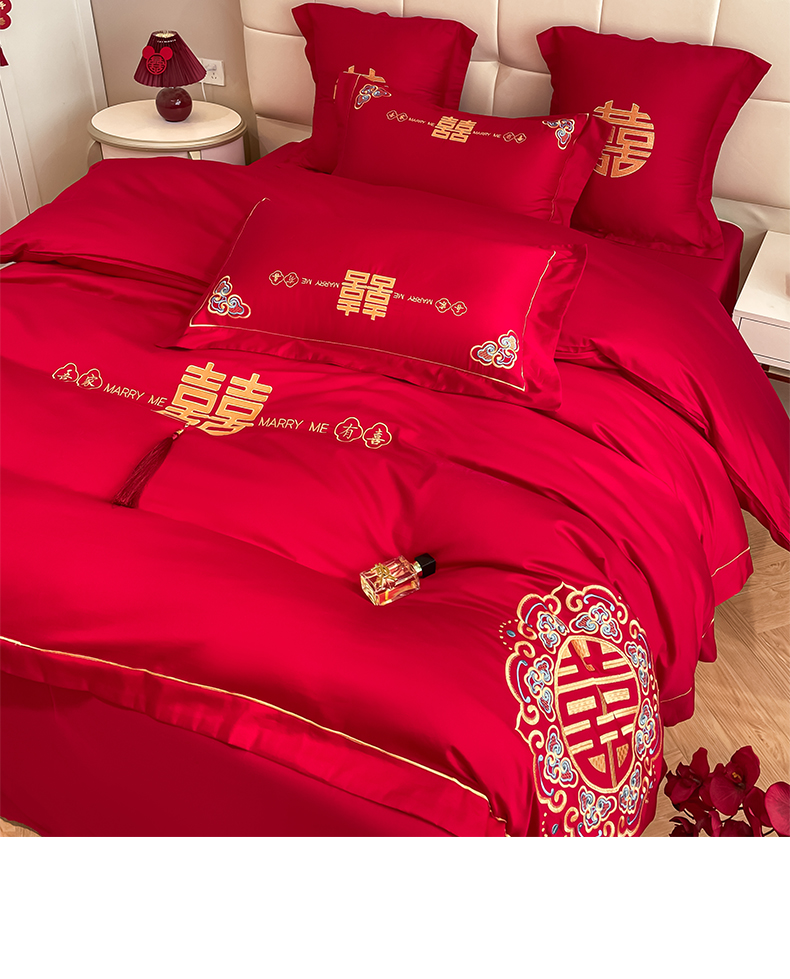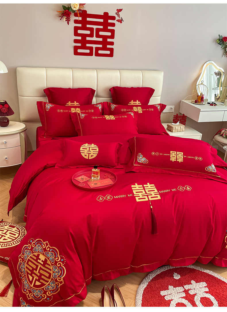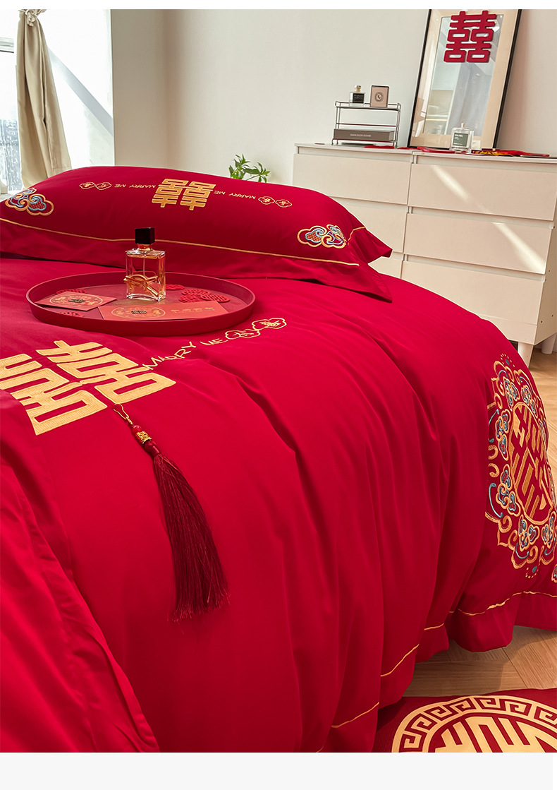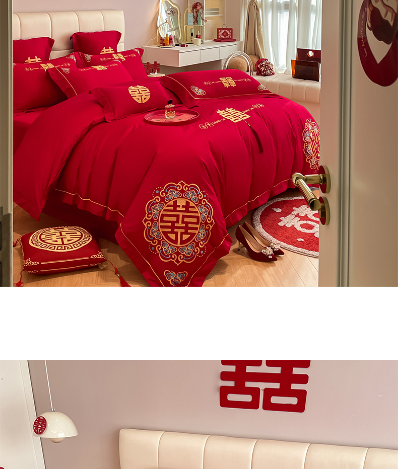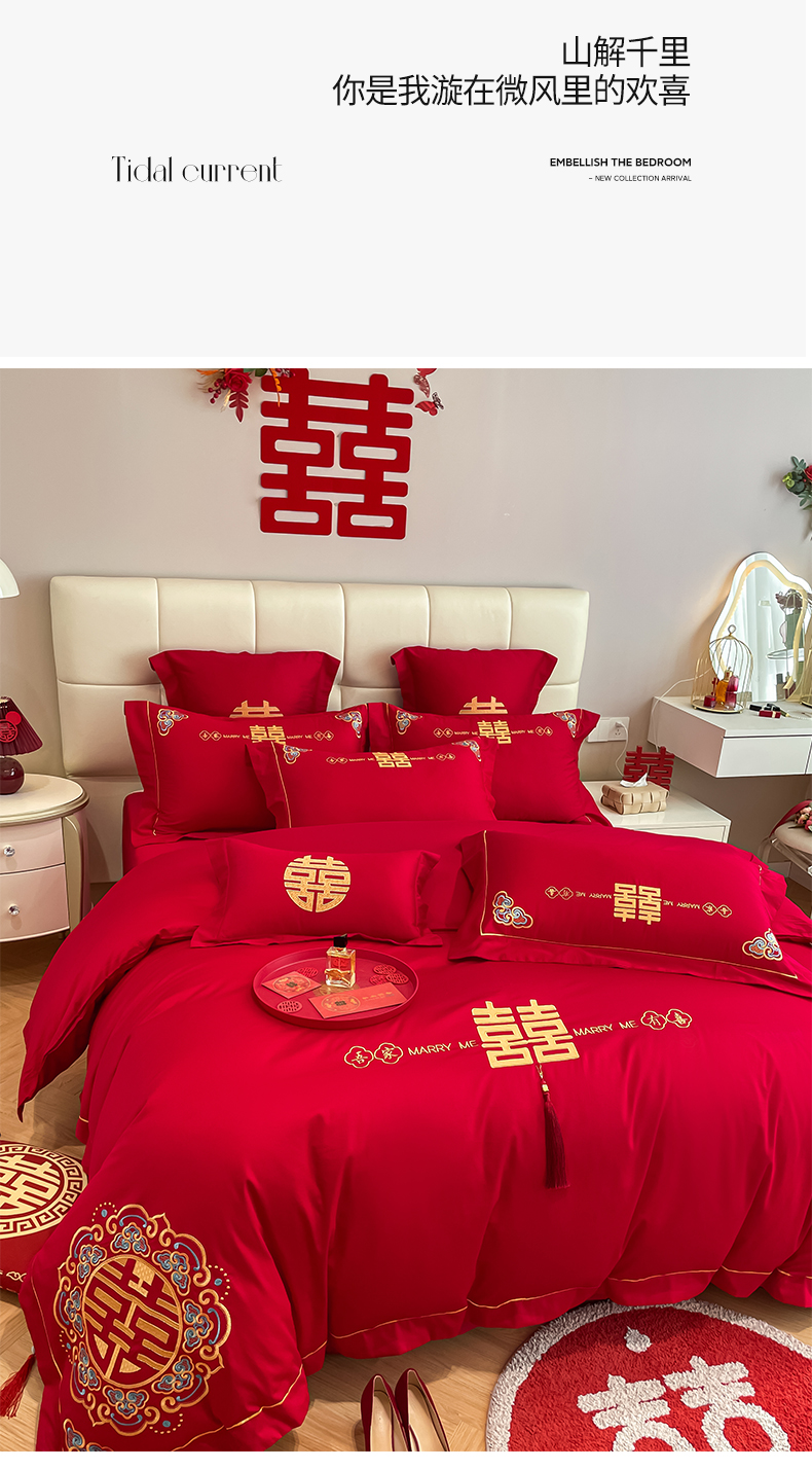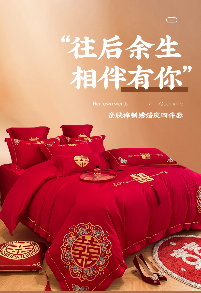当前位置: 91家纺网 > 商品网购 > 床品套件 > 四件套 > 长绒棉四件套 > 欧乐蒂 2025新款亲肤棉刺绣婚庆四件套 吾家有喜
