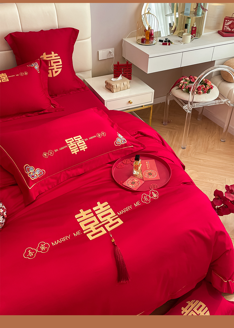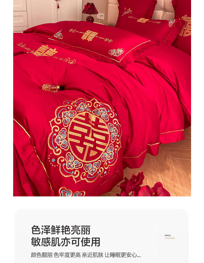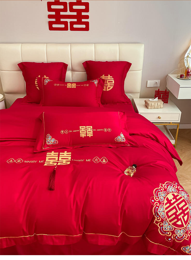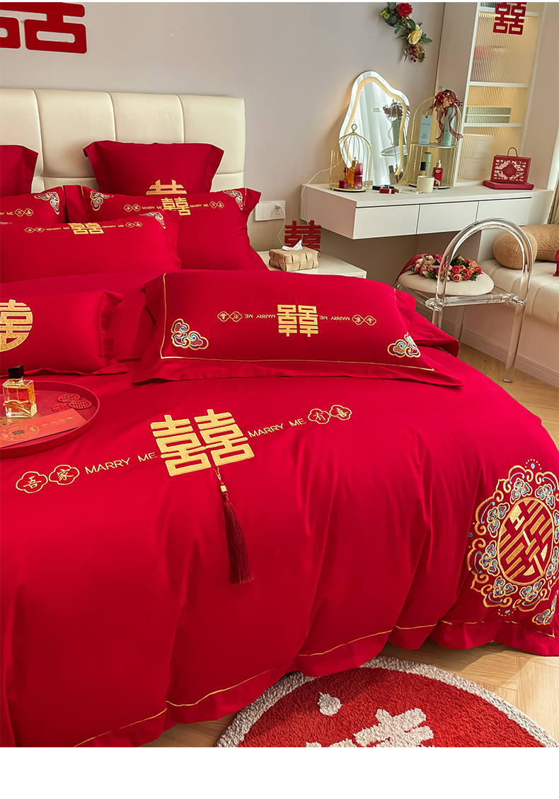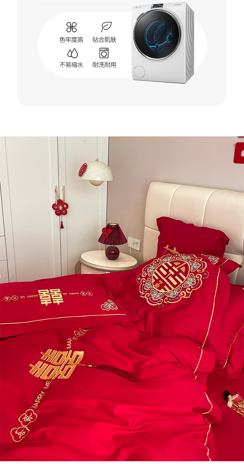 当前位置: 91家纺网 > 商品网购 > 床品套件 > 四件套 > 长绒棉四件套 > 欧乐蒂 2025新款亲肤棉刺绣婚庆四件套 吾家有喜