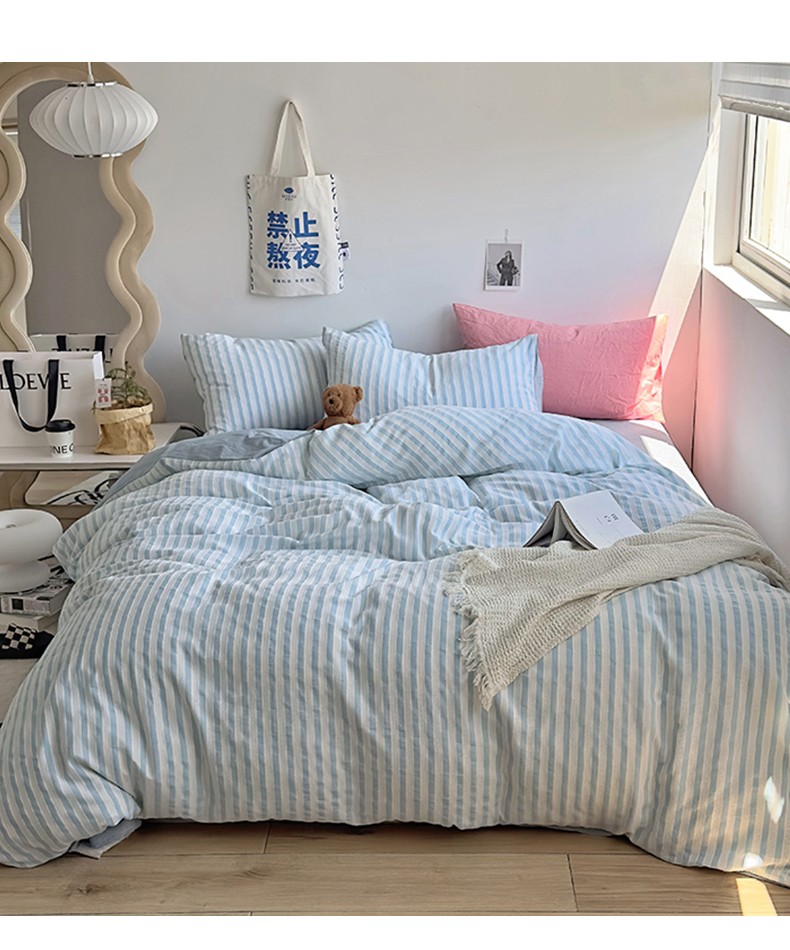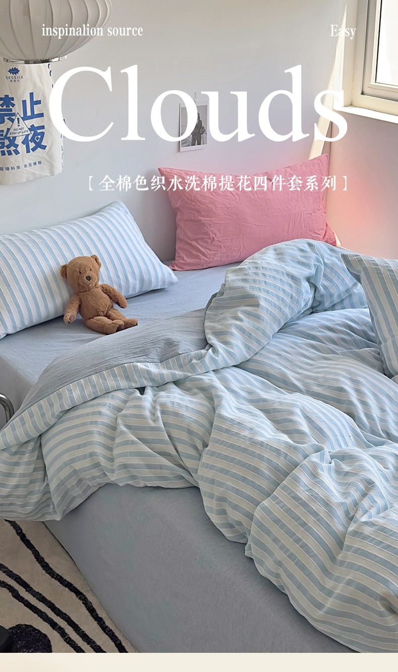 (总)2024秋冬新款A类简约日系全棉色织水洗棉纯棉四件套,粉密条,灰密条,绿密条,米密条,米雅,沐妍-粉,沐妍-黄,沐妍-灰,沐妍-绿,日落-粉,日落-灰,日落绿,中古绿条