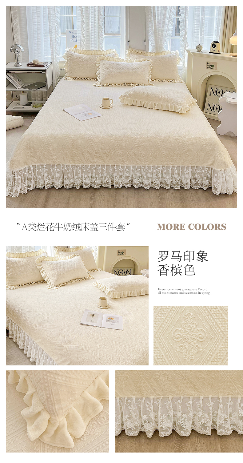 商品名称:宜凡 2023新款烂花牛奶绒床盖三件套 罗马印象-香槟色