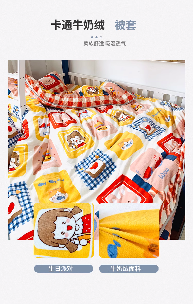 当前位置: 91家纺网 > 商品网购 > 床上用品 > 被套 > 小虾米 2023新款上下床加厚牛奶绒被套 生日派对