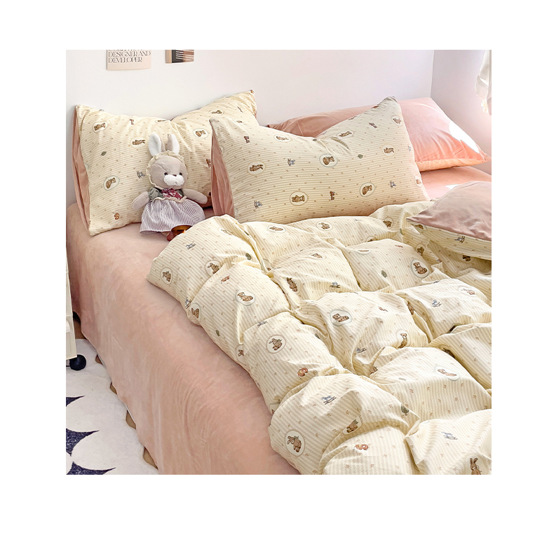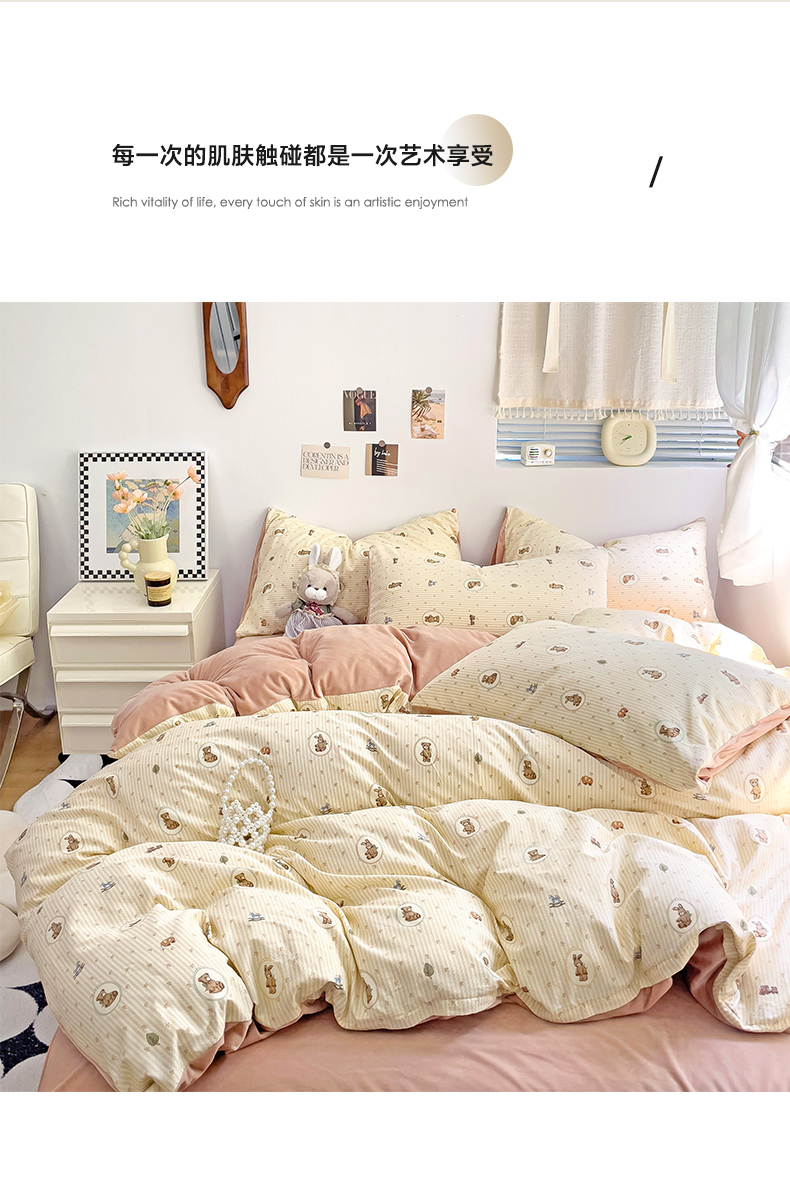 商品名称:盛馨家纺 2023新款棉加绒A版高支高密13372全棉加B版加厚宝宝绒牛奶绒床单床笠四件套 幸运熊