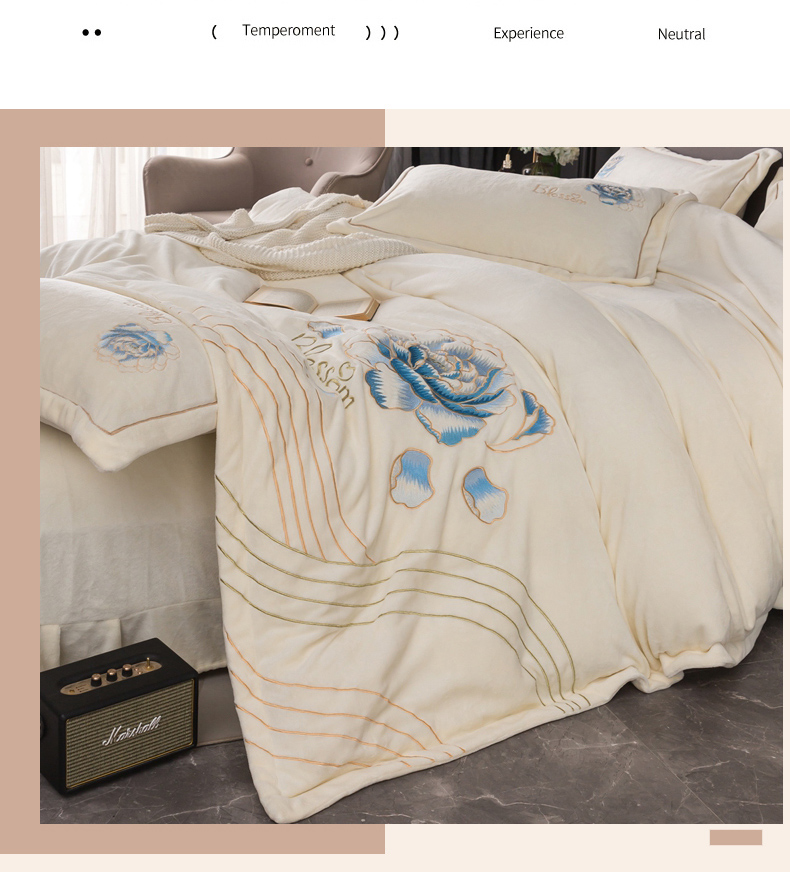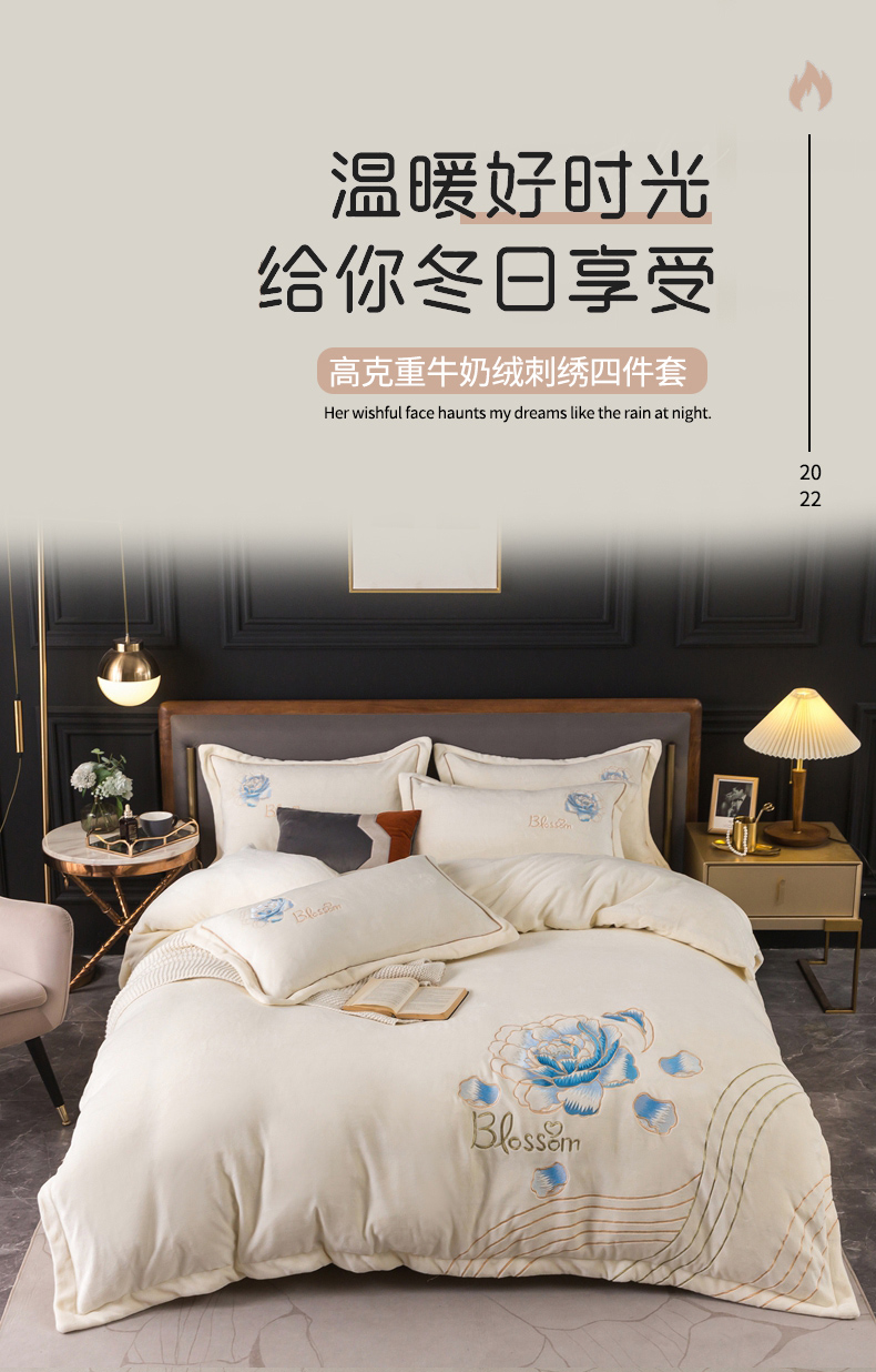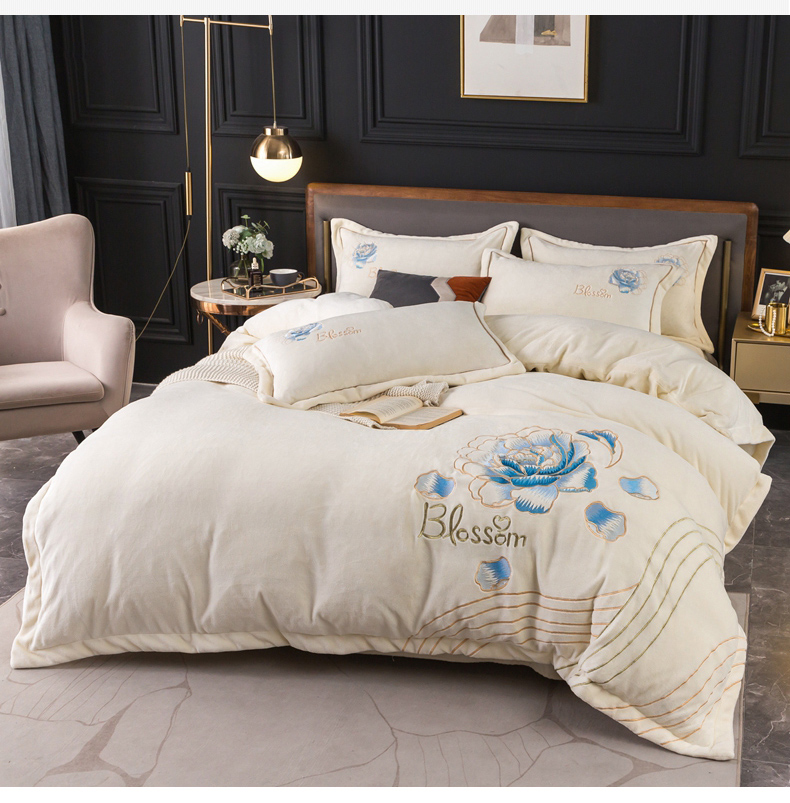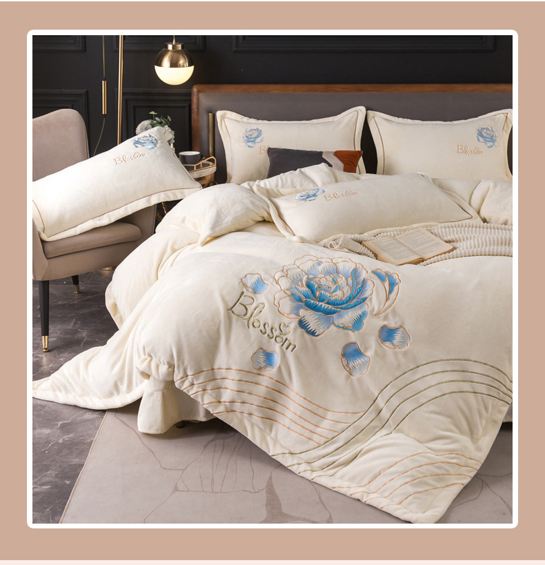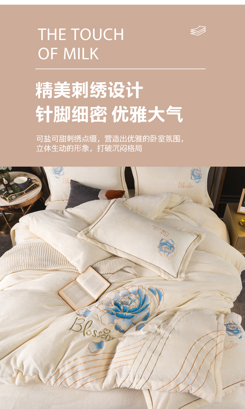 (总)找底底家纺 2024新款加厚高克重14斤牛奶绒床盖四件套满版刺绣纯色牛奶绒床盖四件套(有量有价,提供买家秀),1加厚雾紫色,2加厚宝蓝色,3加厚珐琅绿,4加厚咖色,5加厚橘橙色,6加厚豆沙色,7加厚浅紫色,8奶白色