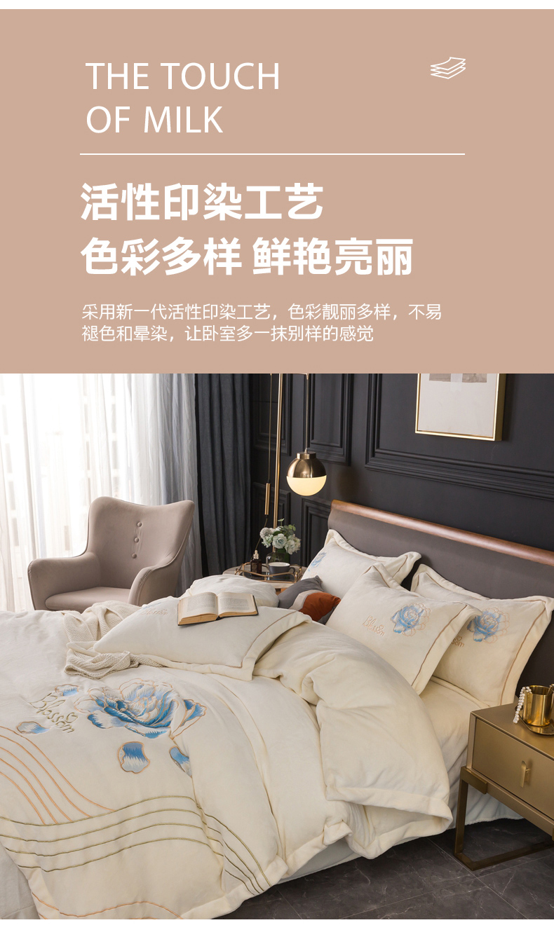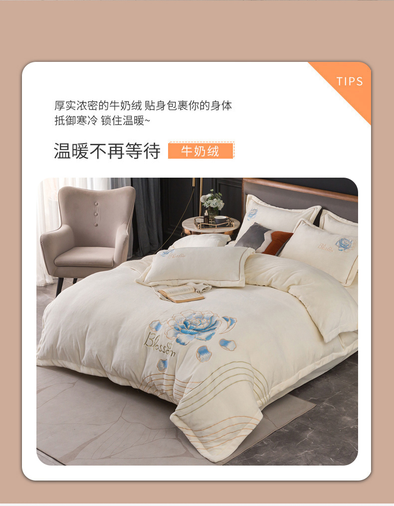 (总)找底底家纺 2025新款牛奶绒纯色刺绣四件套八斤重日销50单客户优惠10元,艾玛橙,奶昔白,豆沙粉,樱花粉,浅灰,天蓝,香芋紫