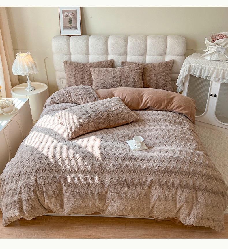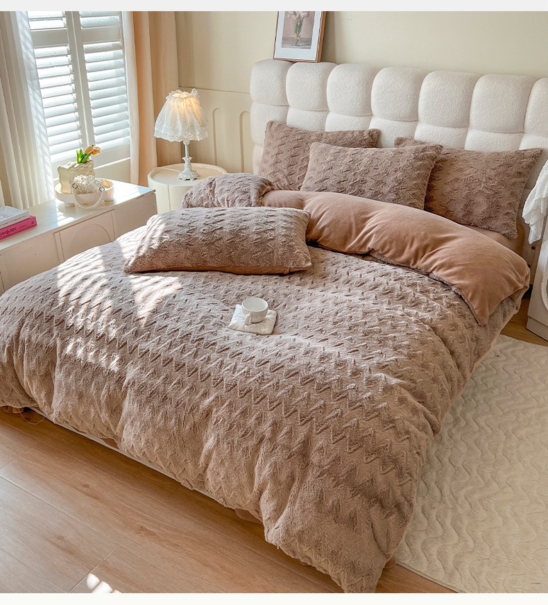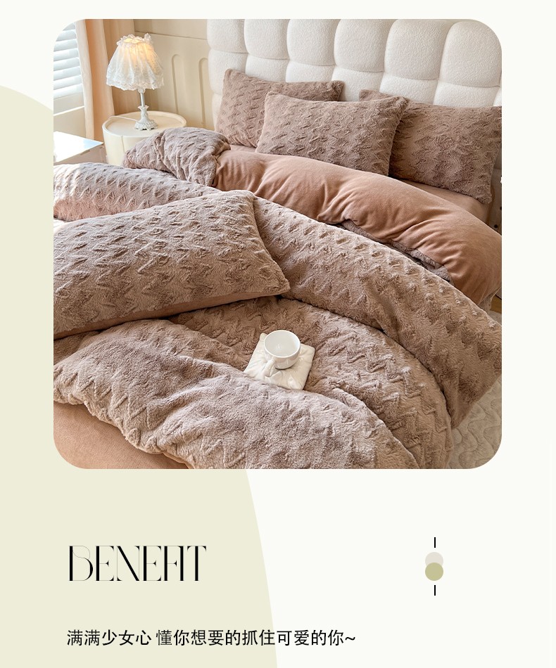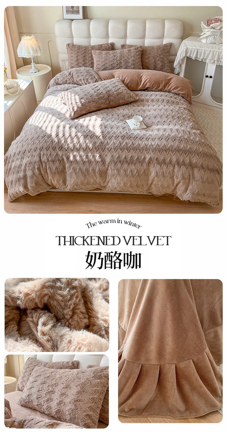 商品名称:网红馆 2025新款A版兔毛绒B版素色牛奶绒四件套-归简 归简-奶酪咖