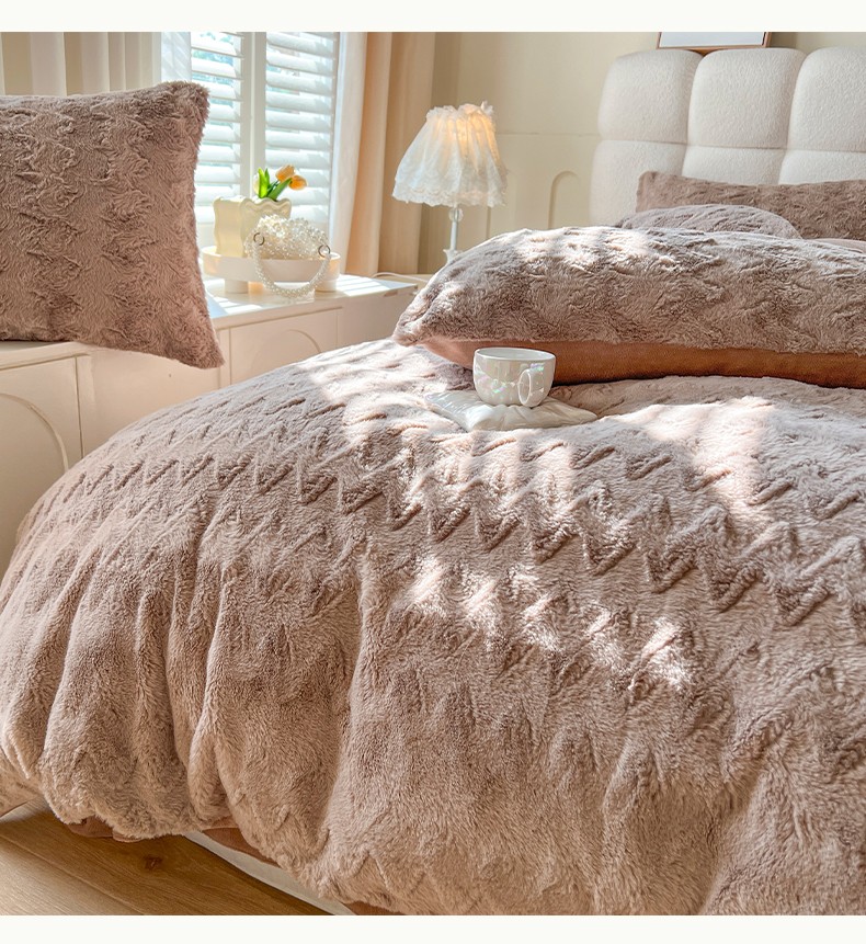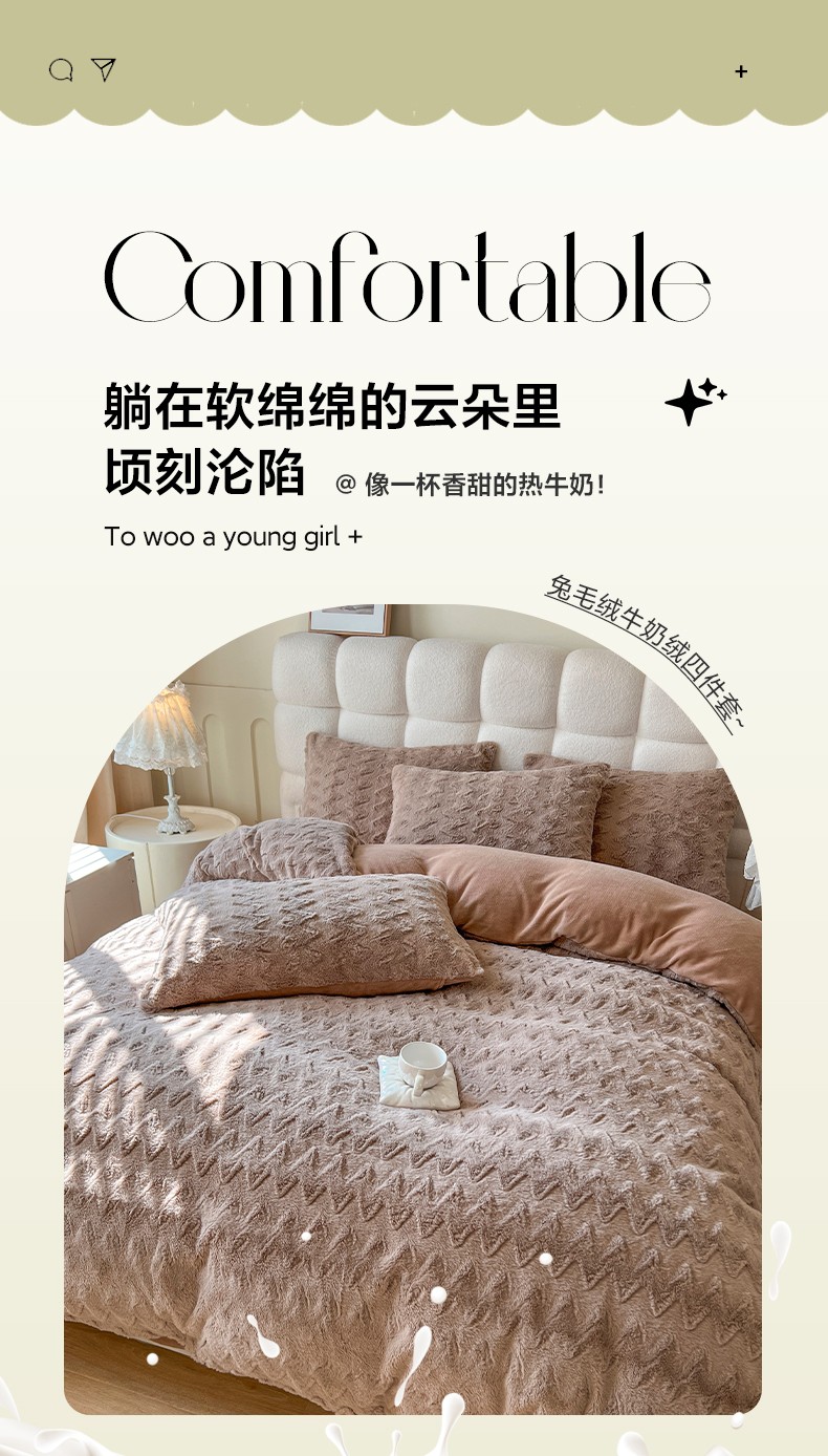 网红馆 2025新款A版兔毛绒B版素色牛奶绒四件套-归简 归简-奶酪咖