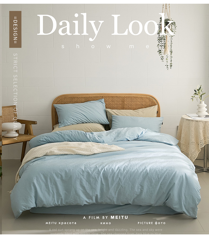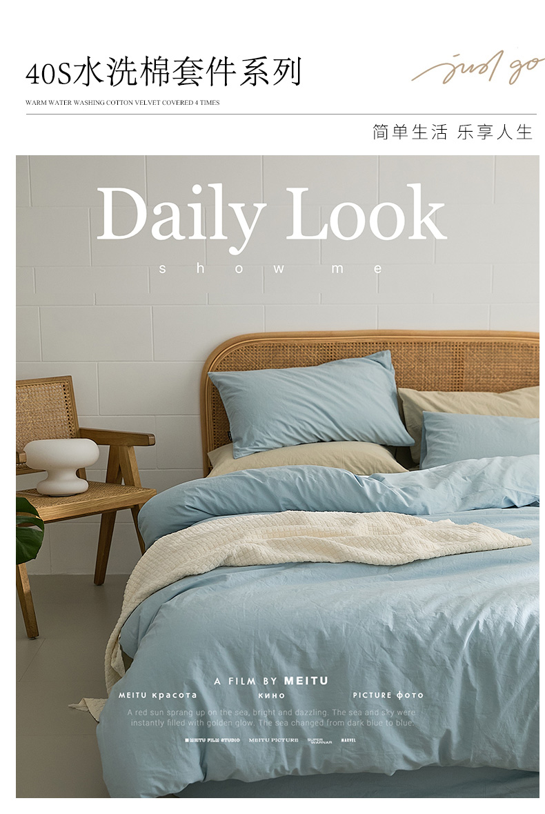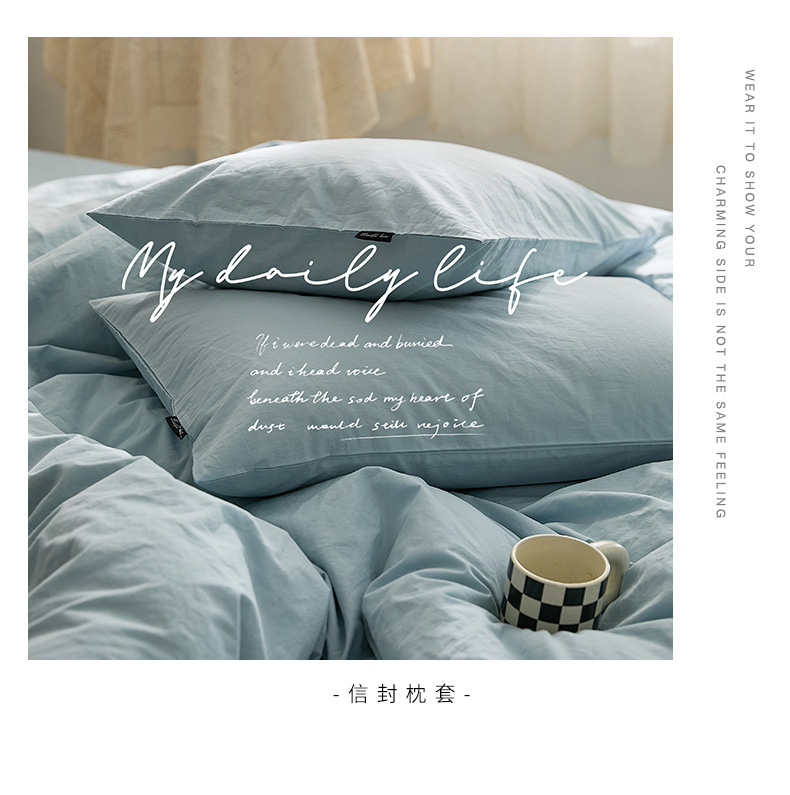 当前位置: 91家纺网 > 商品网购 > 床品套件 > 四件套 > 水洗棉四件套 > 新款秋冬40S水洗棉四件套-晚风(英文版) 晚风-西子蓝