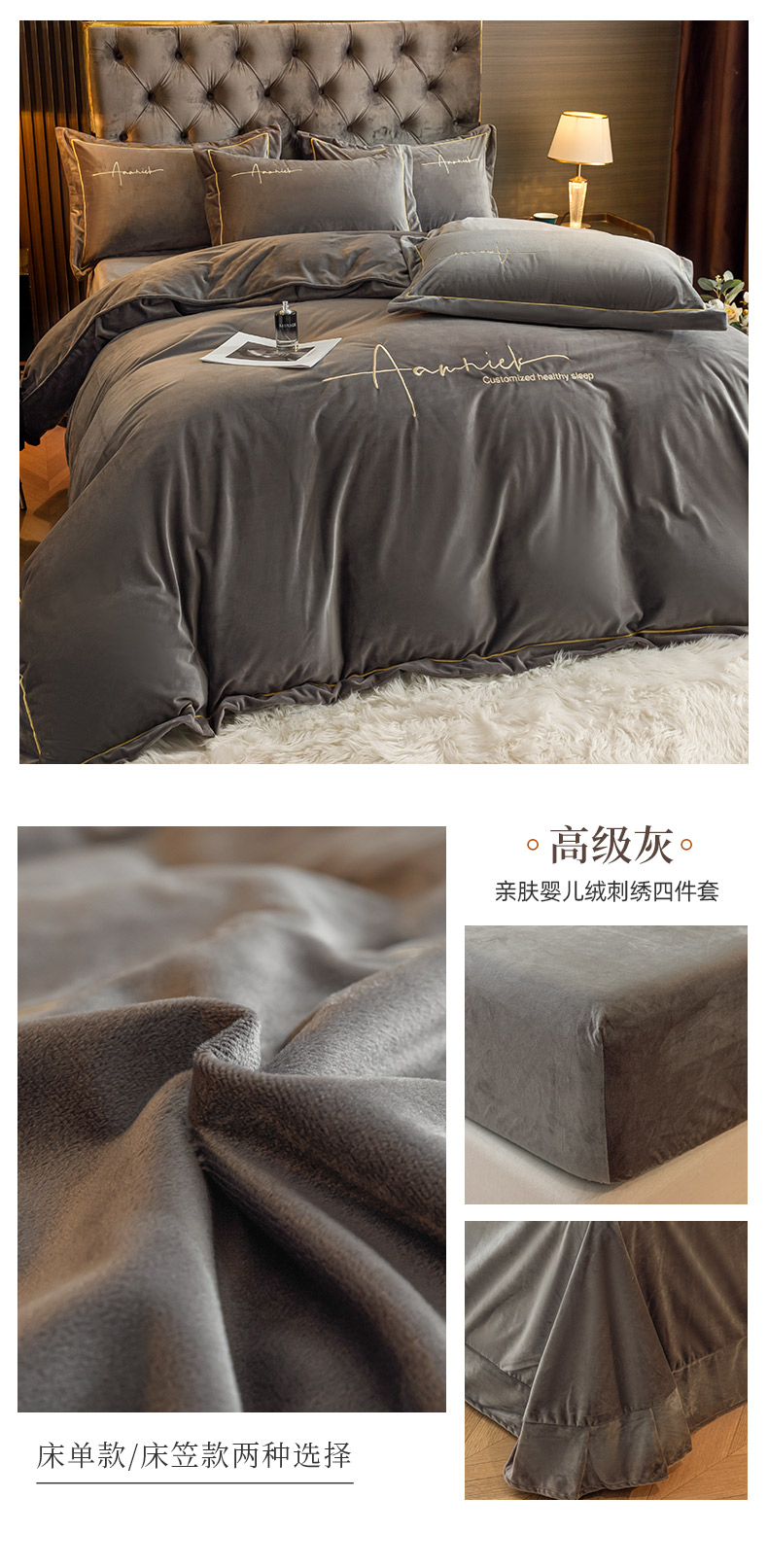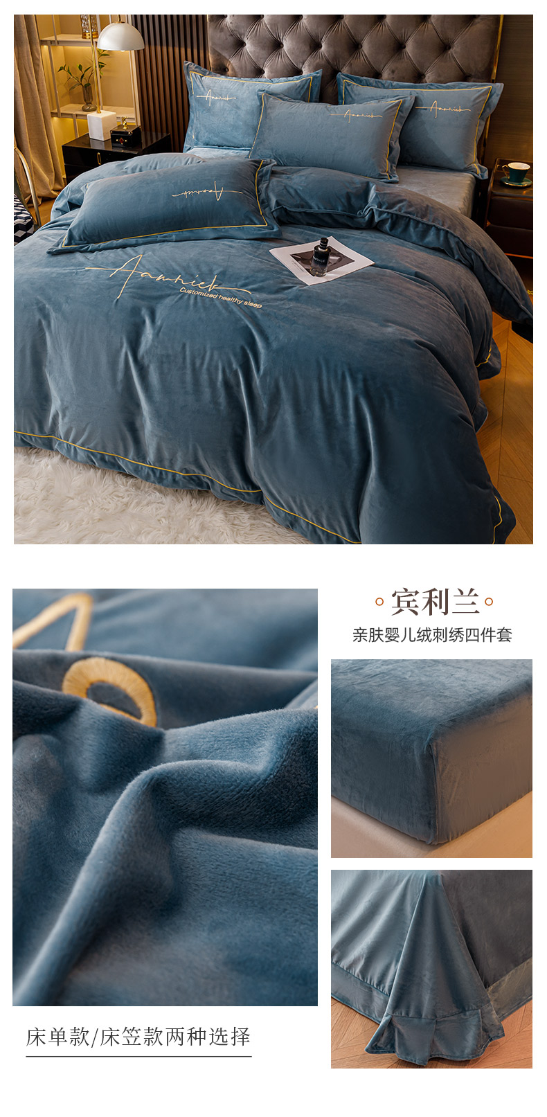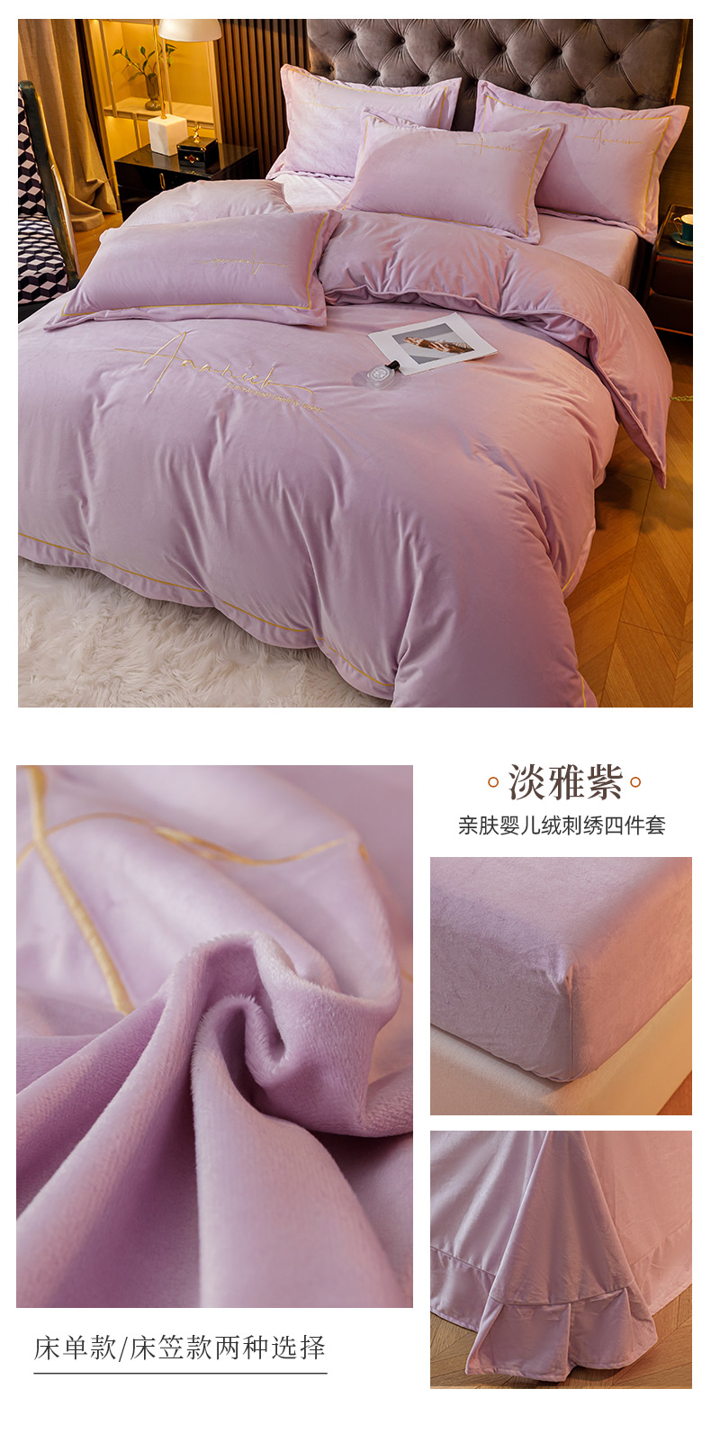 商品名称:(总)库里梦家纺 2024新款宽边一字绣婴儿绒四件套