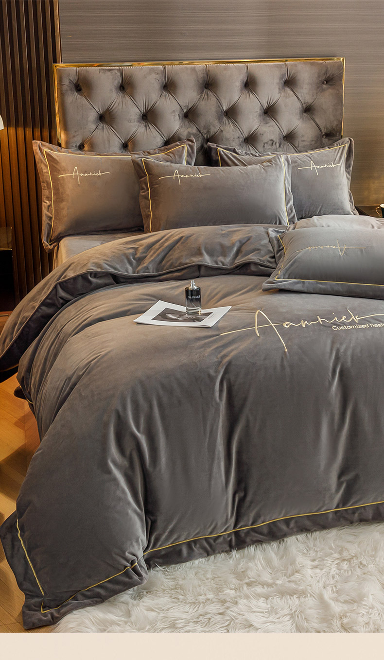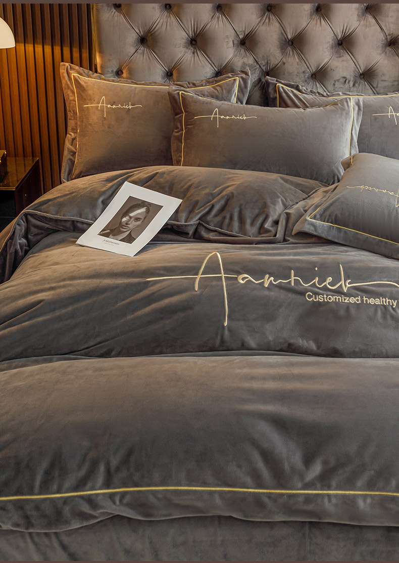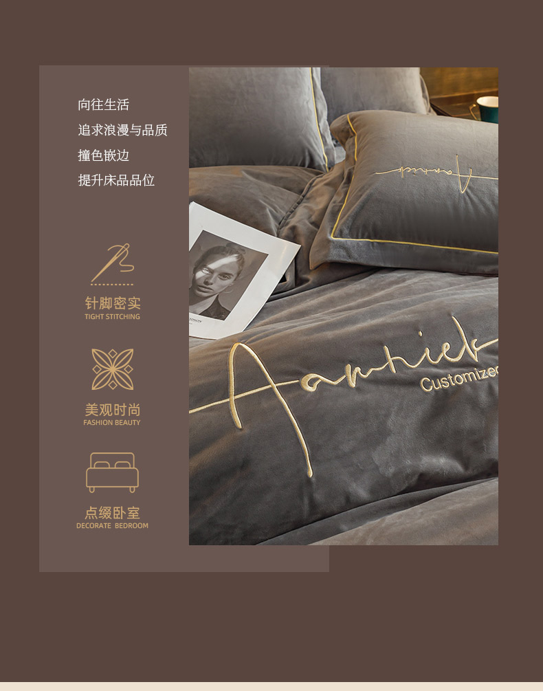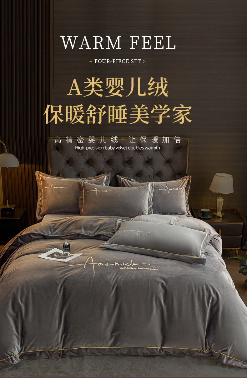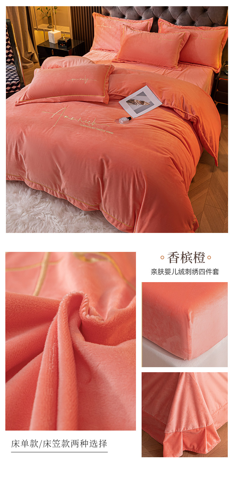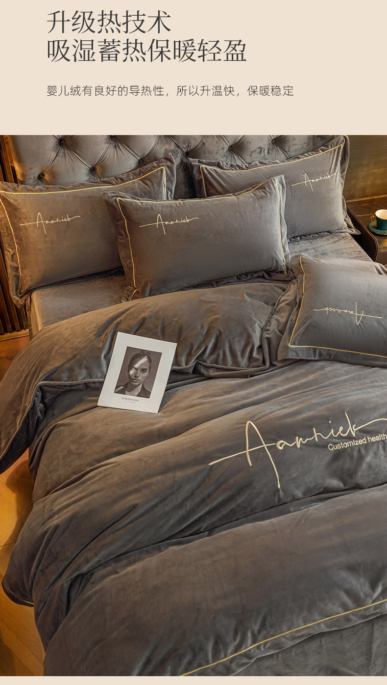 (总)库里梦家纺 2024新款宽边一字绣婴儿绒四件套