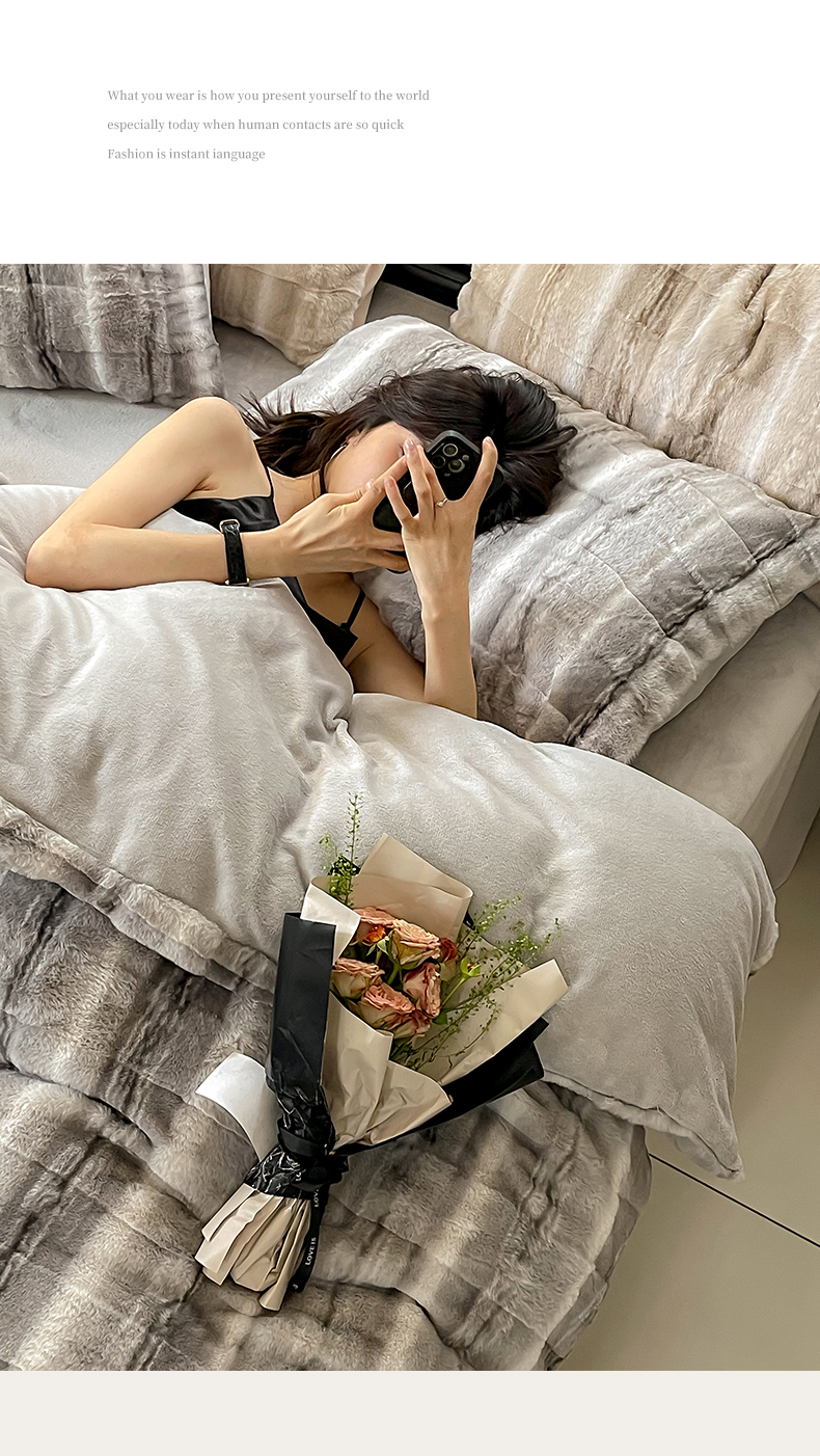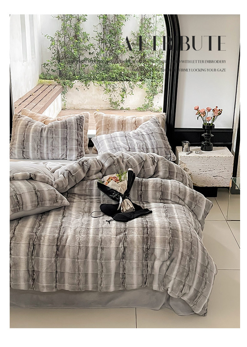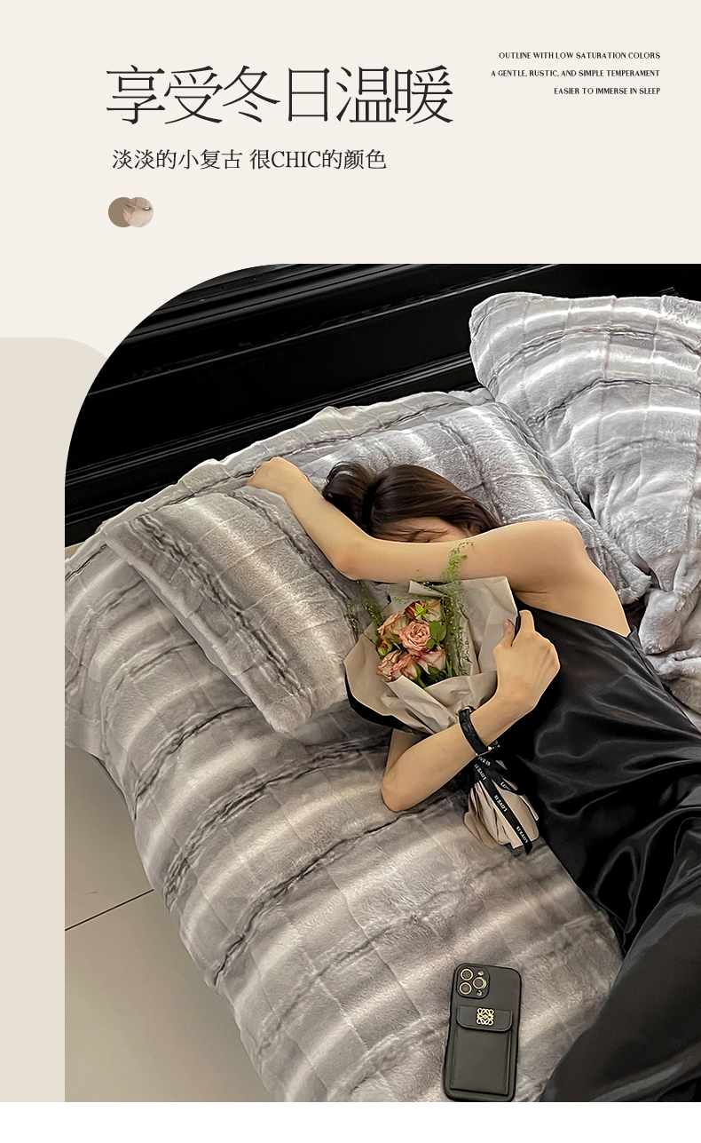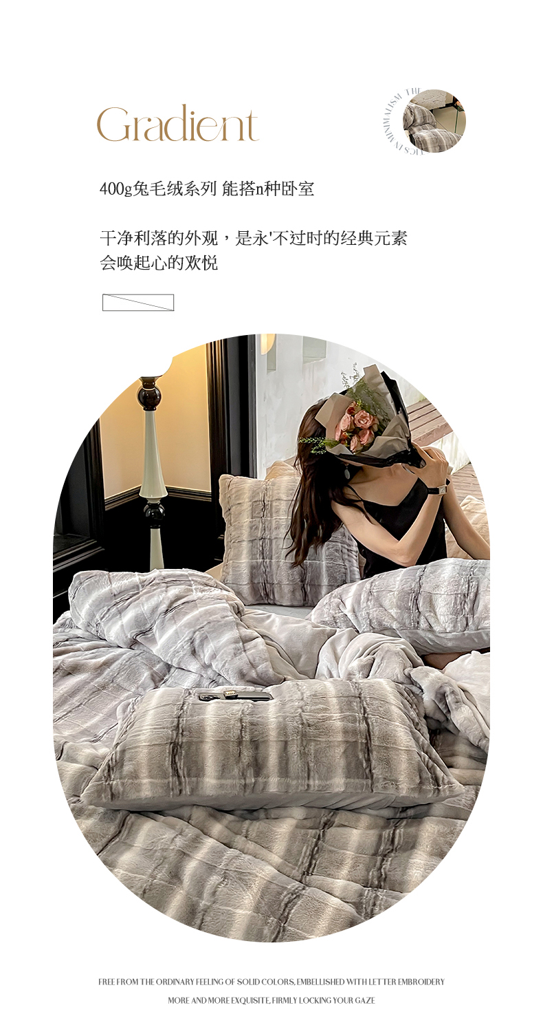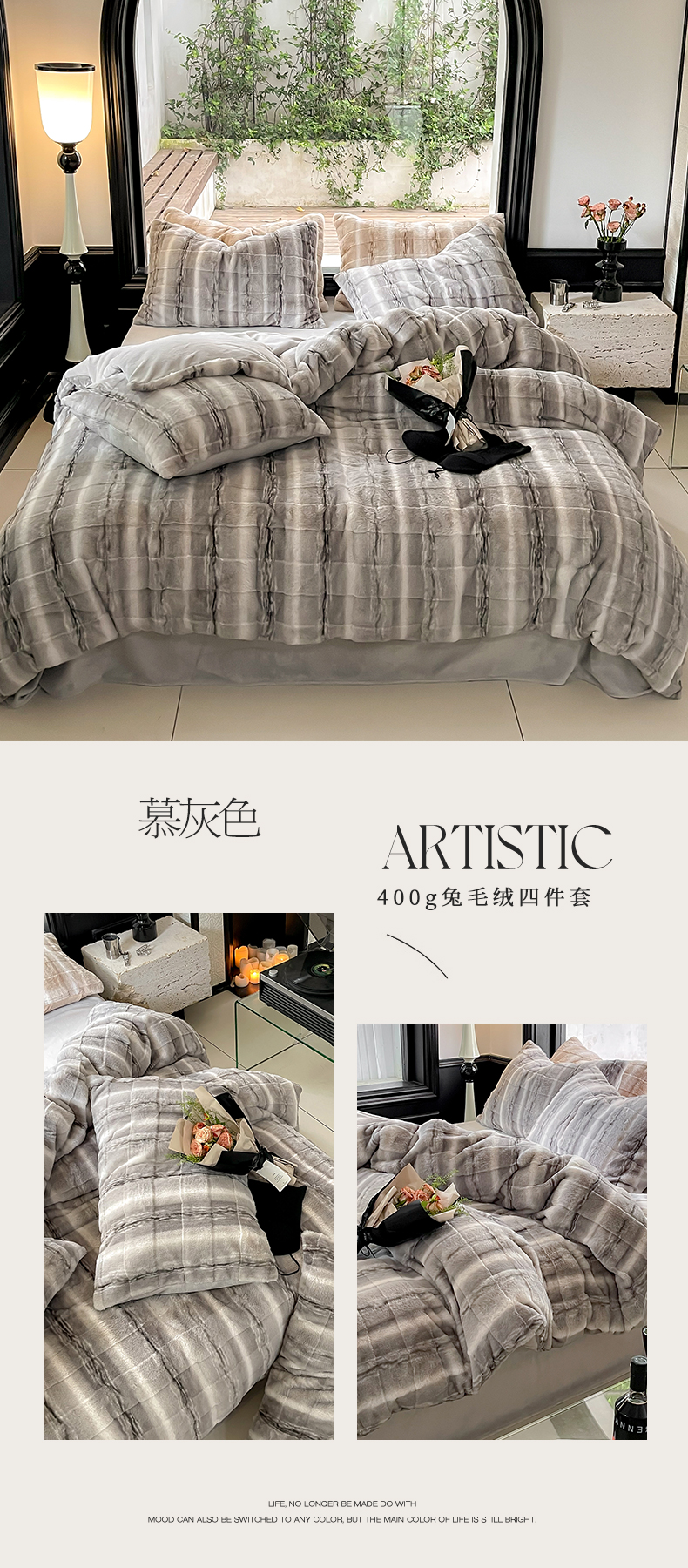 商品名称:名品优仓 2023新款400g兔毛绒四件套-维也纳 慕灰色