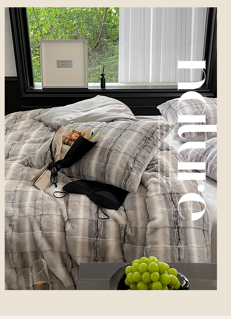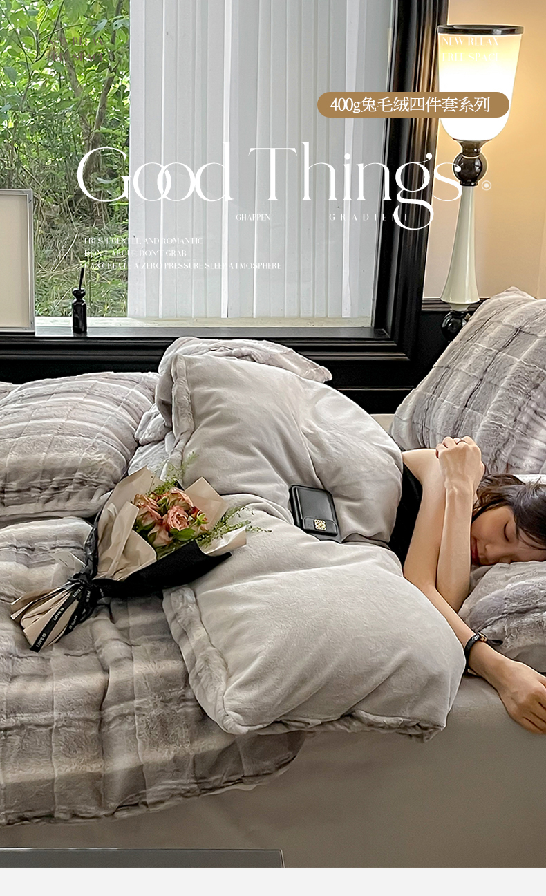名品优仓 2023新款400g兔毛绒四件套-维也纳 慕灰色
