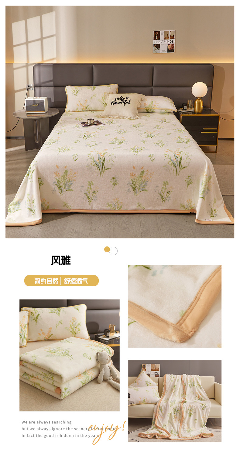 当前位置: 91家纺网 > 商品网购 > 毛毯休闲毯绒毯 > 毛毯 > 古吉梦 2023新款A类双面小清新系列牛奶绒毛毯 牛奶绒毯-风雅
