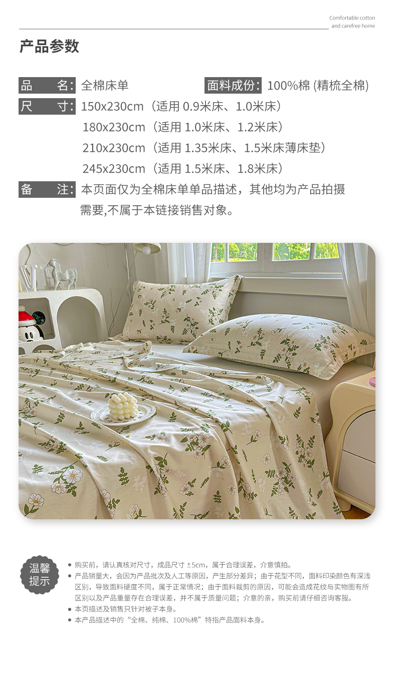 商品名称:元元被芯 2023新款全棉直角印花床单 婷语花间