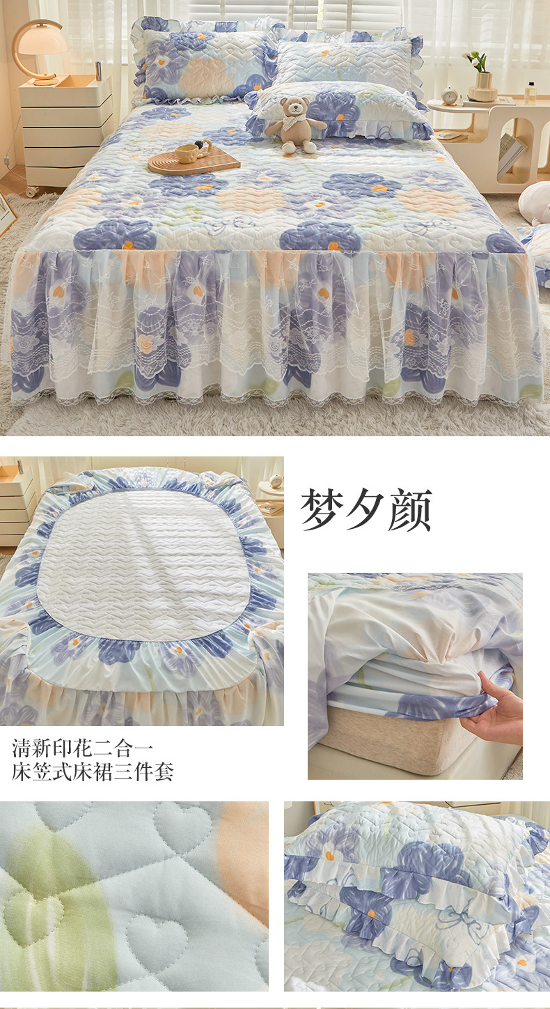 当前位置: 91家纺网 > 商品网购 > 床品套件 > 三件套 > 宜凡 2023新款云朵棉床笠式床裙三件套 梦夕颜