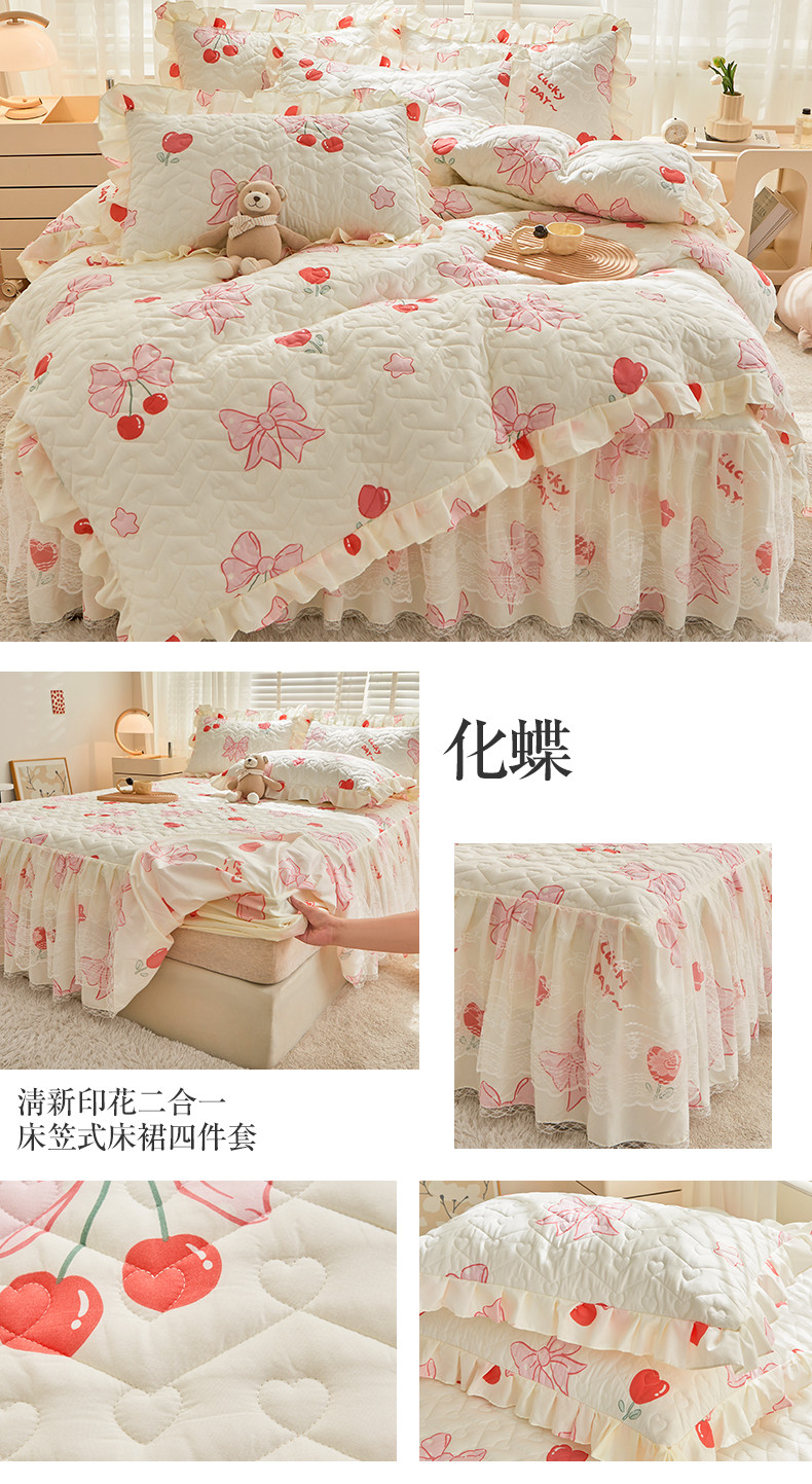 宜凡家纺 2023新款云朵棉床笠式床裙四件套 化蝶