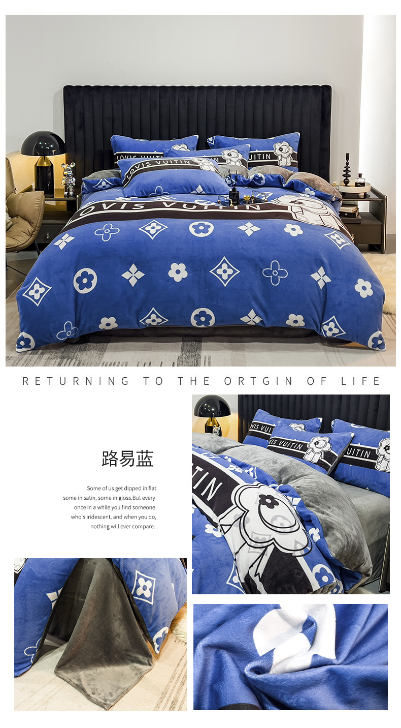商品名称:色鬼 2023新款轻奢大牌风印花牛奶绒四件套婴儿绒四件套 路易蓝
