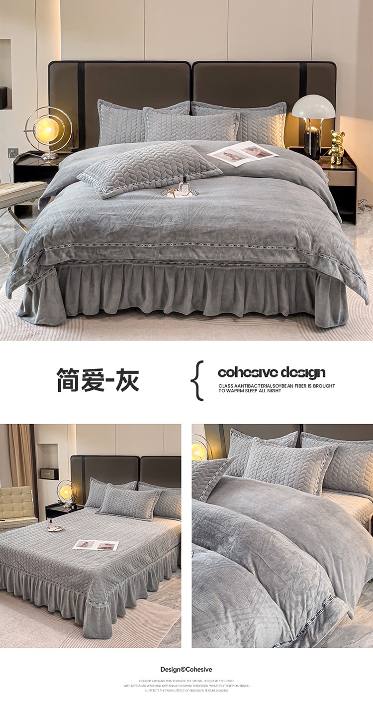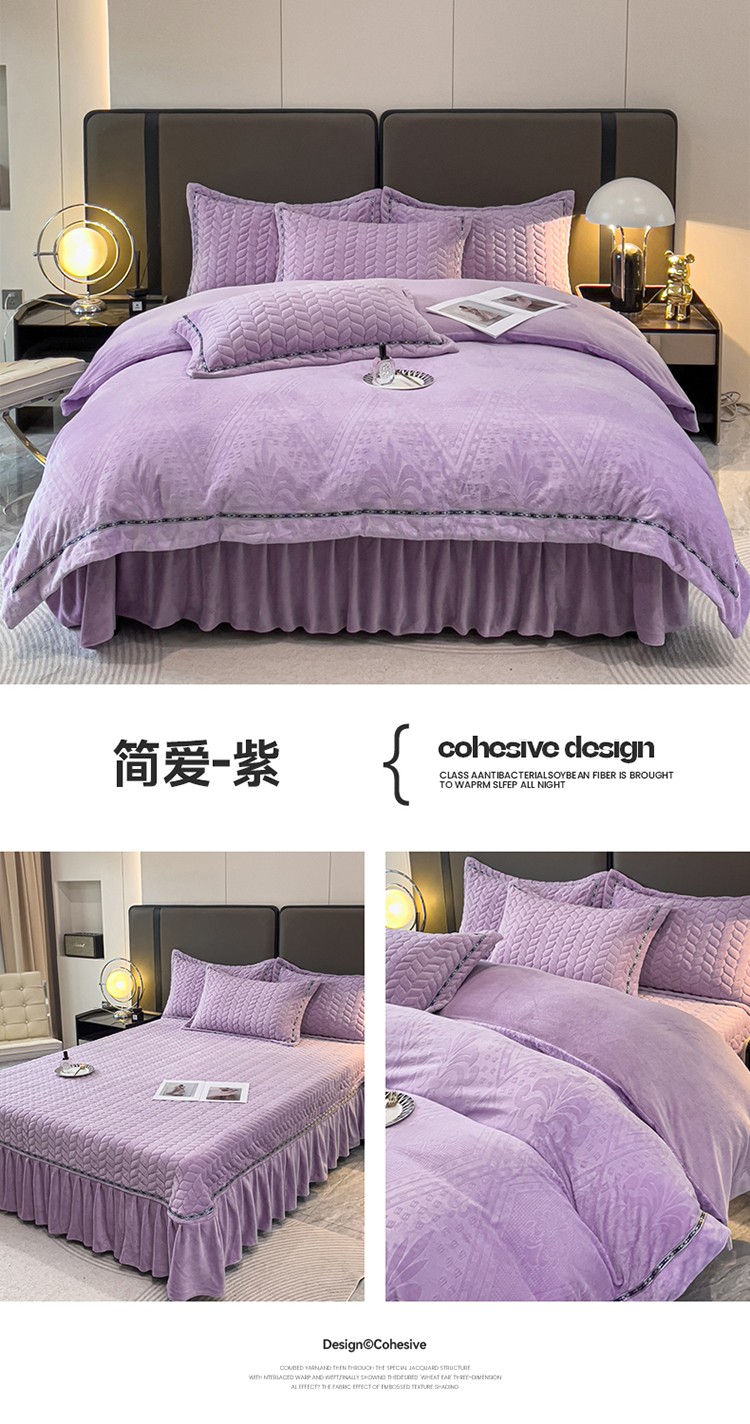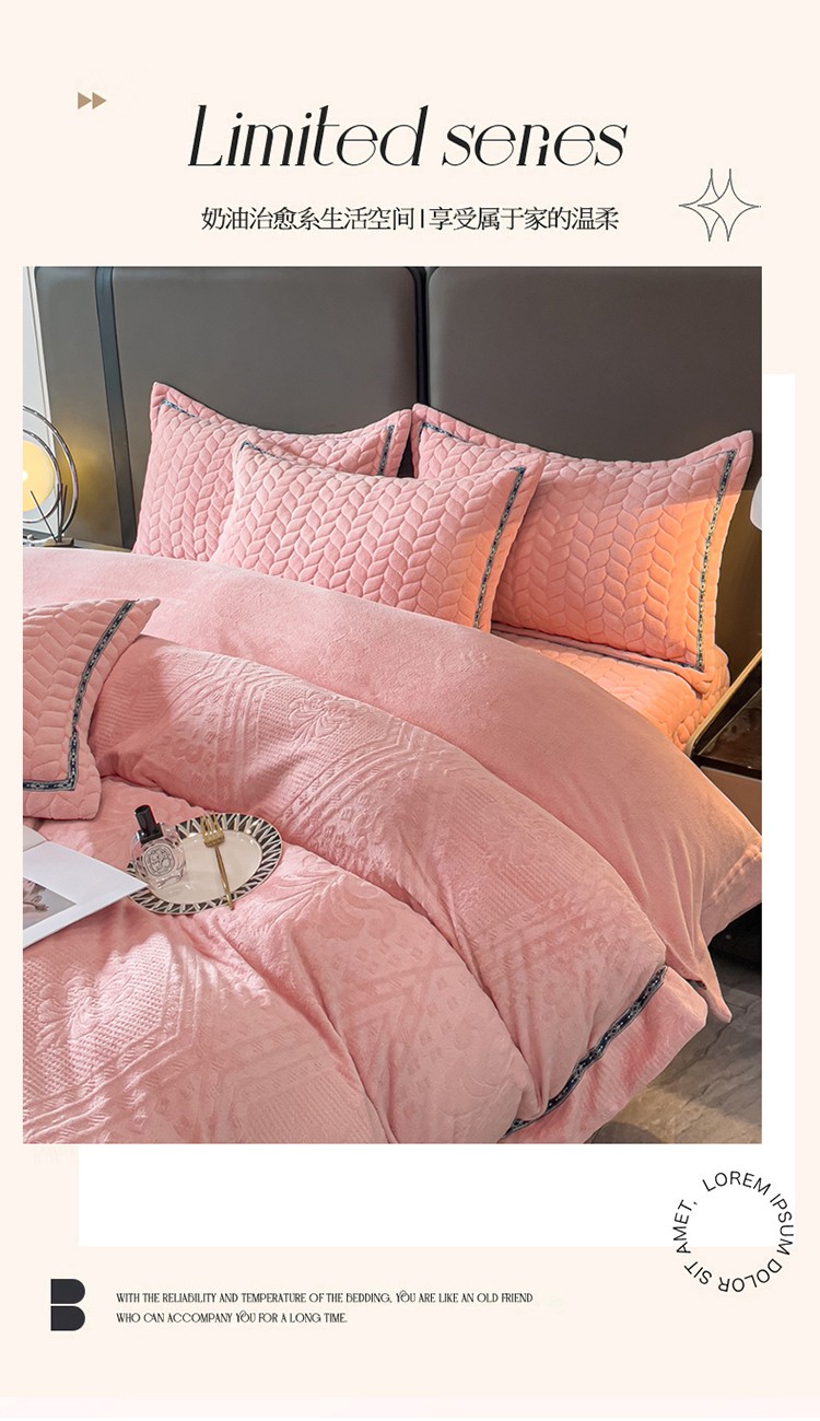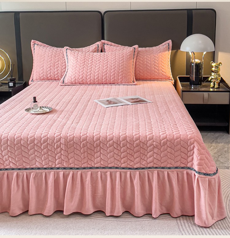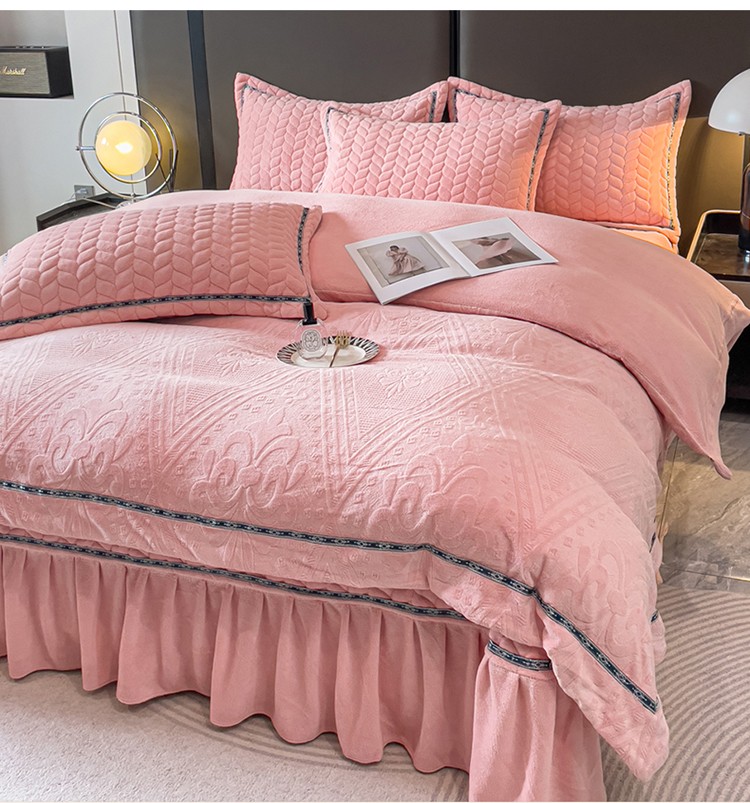佰诗特 加棉加厚立体雕花绒织带款床盖四件套 高克重牛奶绒夹棉床盖三件套