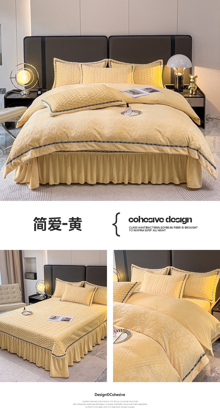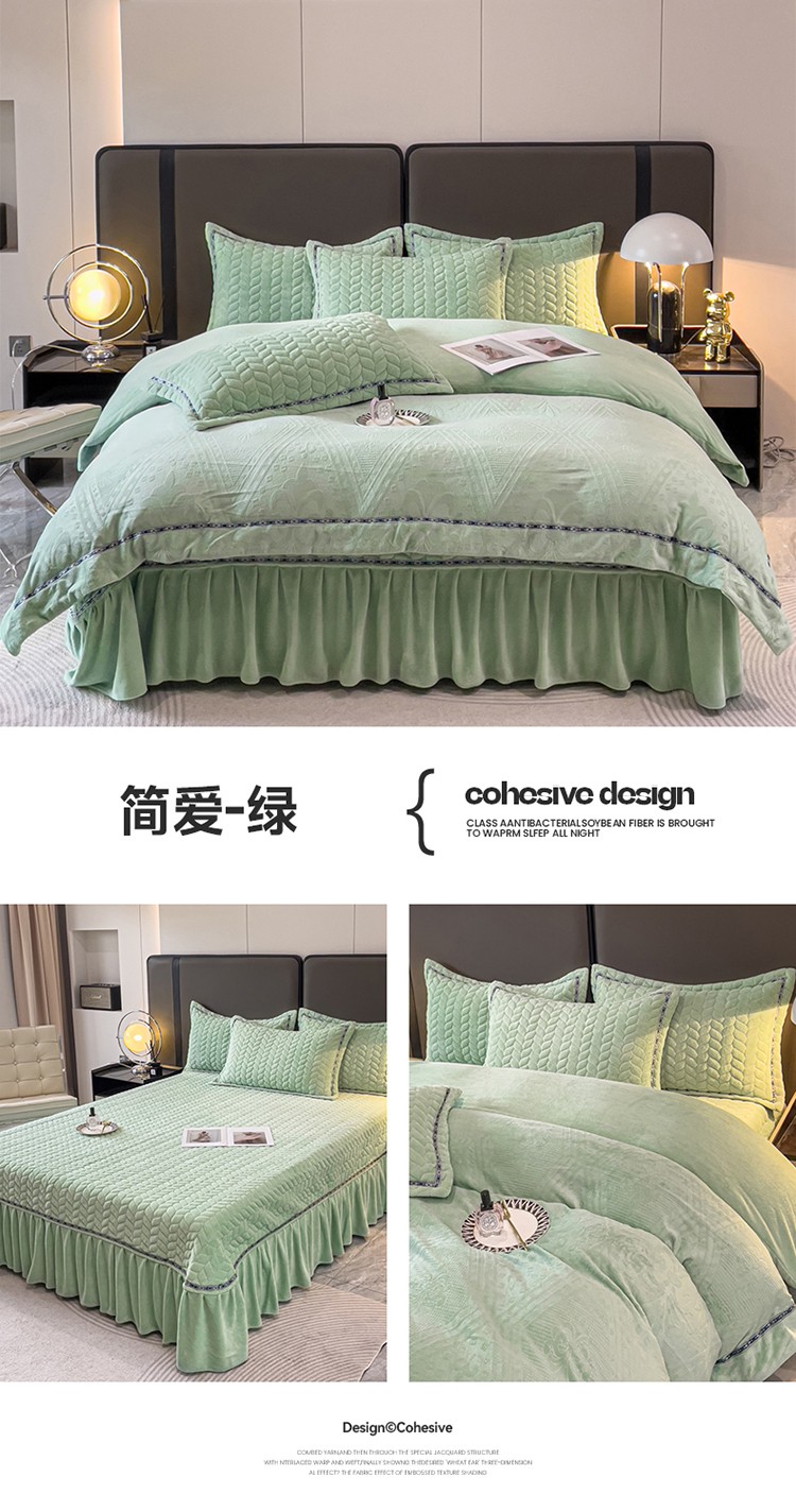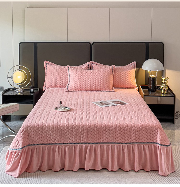 (总)佰诗特 2025高克重简约压线织带款牛奶绒夹棉床盖三件套 立体雕花绒加棉加厚纯色床盖四件套,简爱-绿,简爱-粉,简爱-蓝,简爱-紫,简爱-灰,简爱-黄