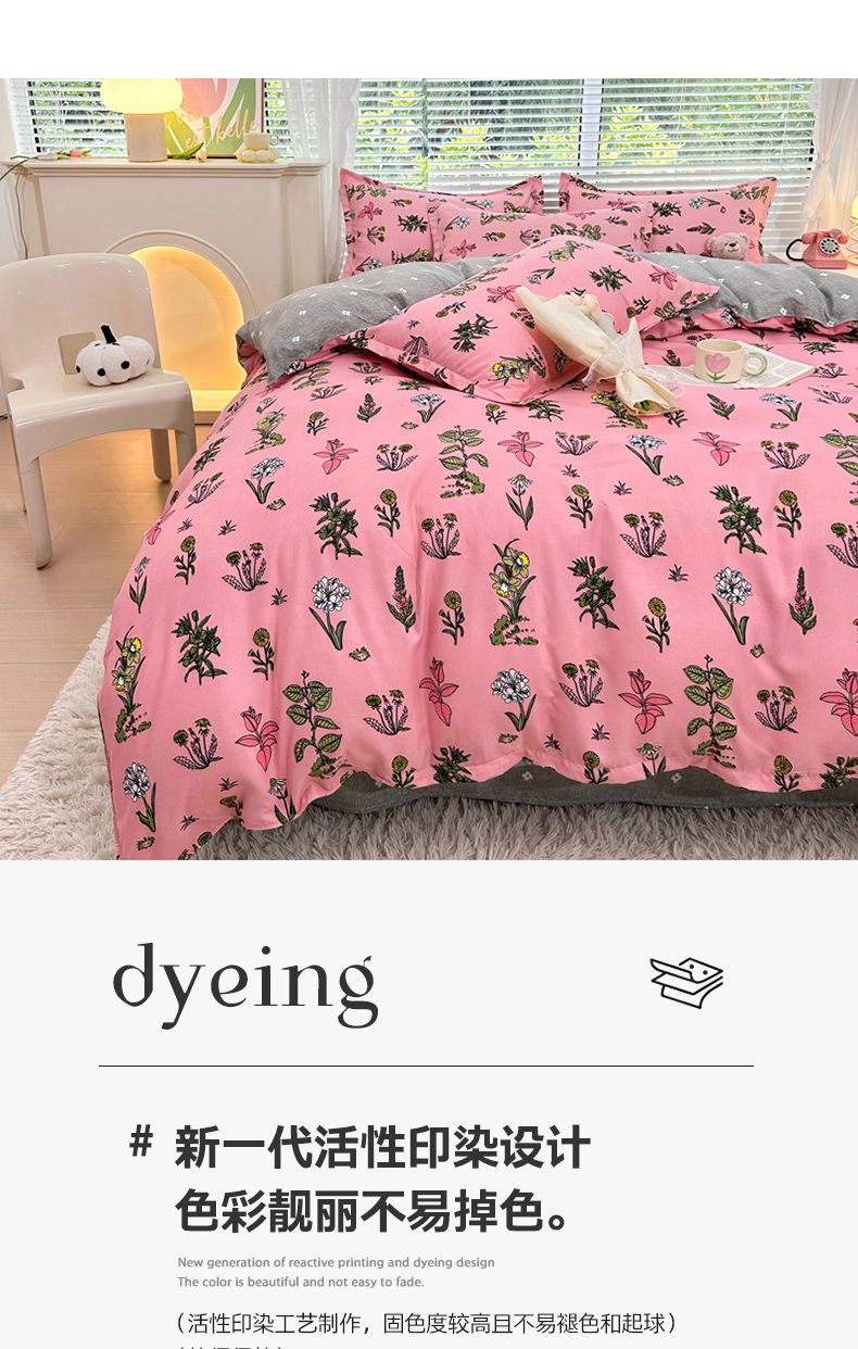 (总)曼璐家纺 2025新款小清新芦荟棉印花四件套,朝花夕拾,初夏,可可西里,喵星人,叶雨,初夏