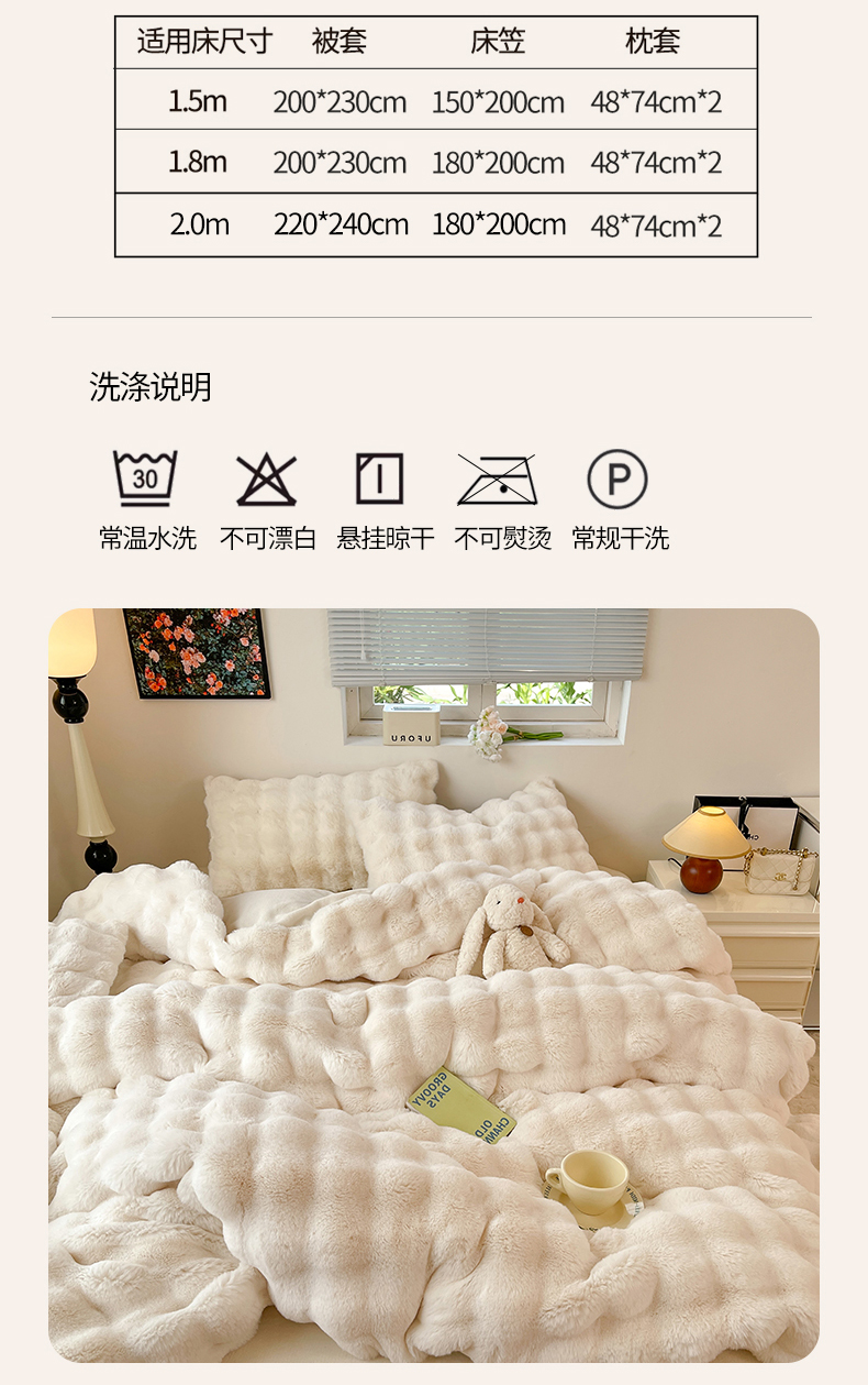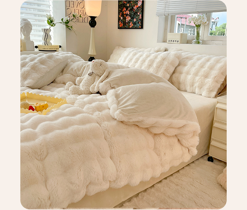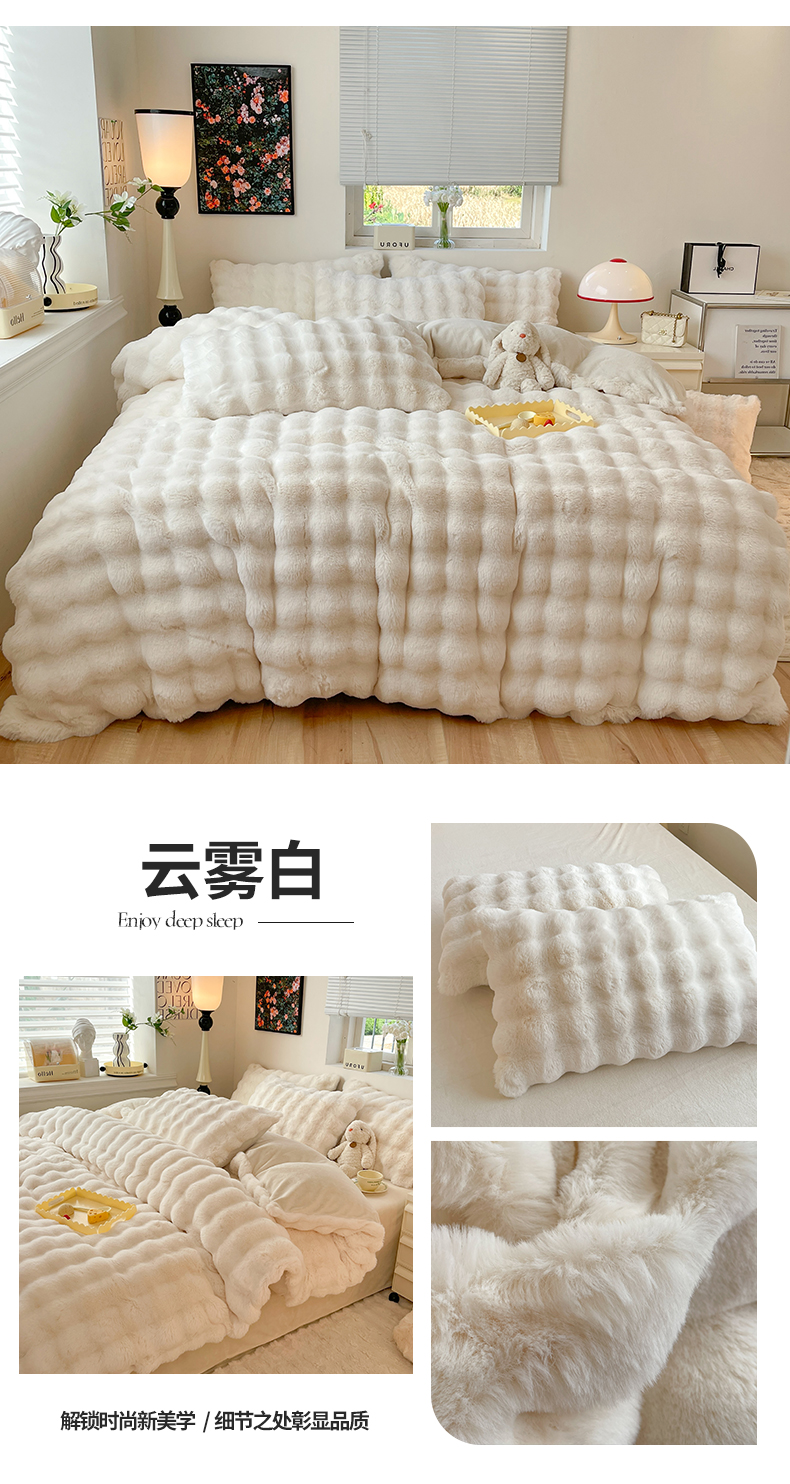 当前位置: 91家纺网 > 商品网购 > 床品套件 > 四件套 > 牛奶绒四件套 > 席之家 2024新款高克重托卡斯仿皮草大泡泡兔兔绒牛奶绒四件套 奶白