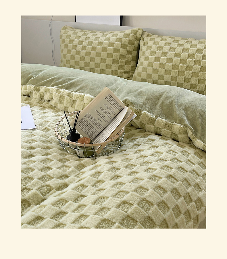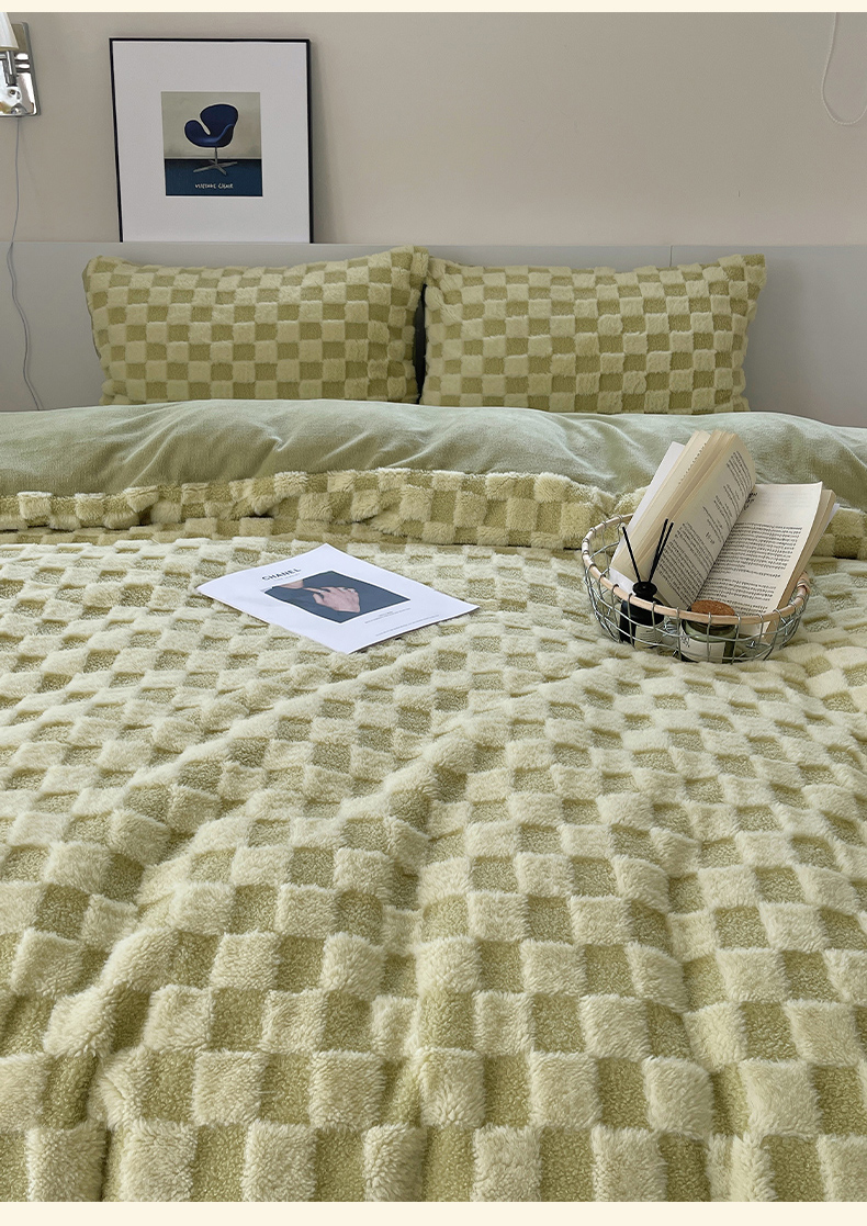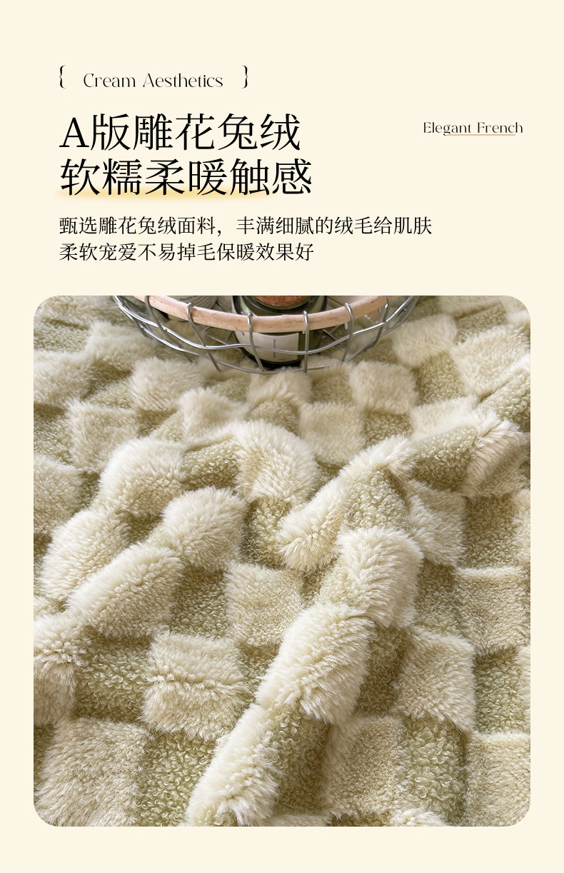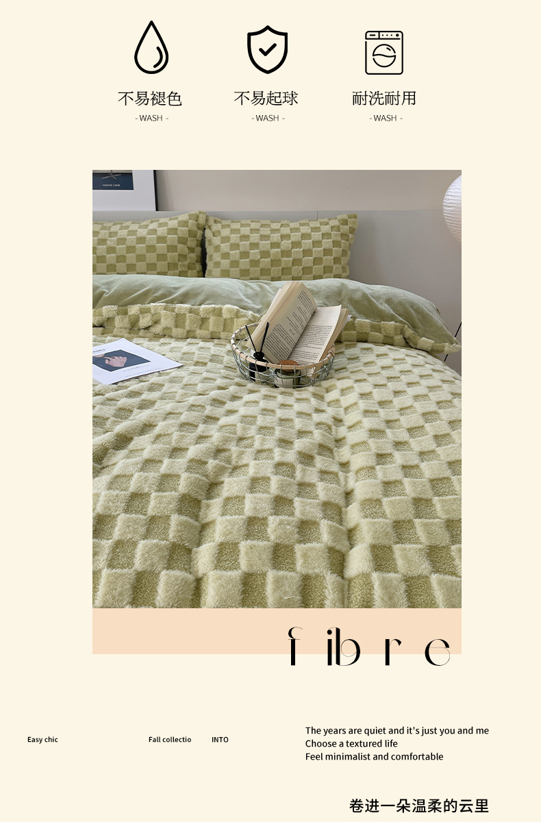 商品名称:三朵家纺 2023新款加厚保暖雕花兔毛绒四件套 棋盘格-橄榄绿