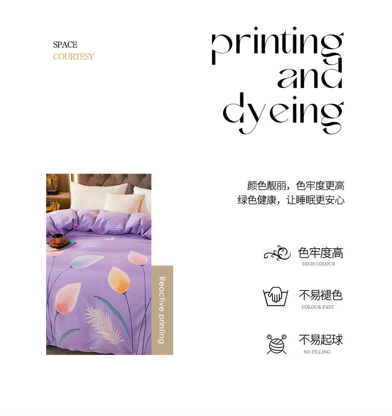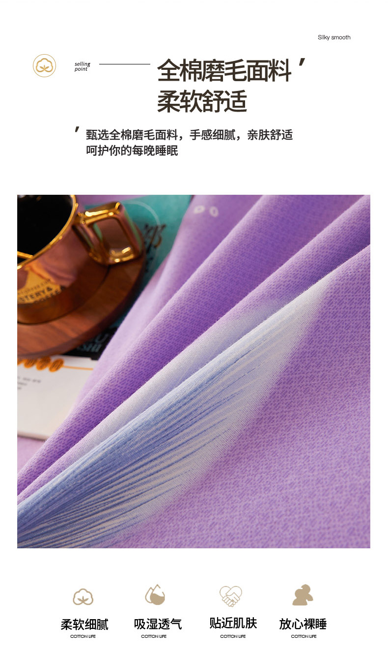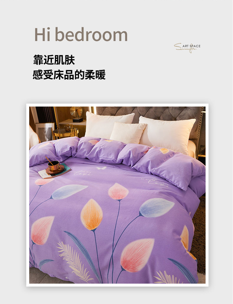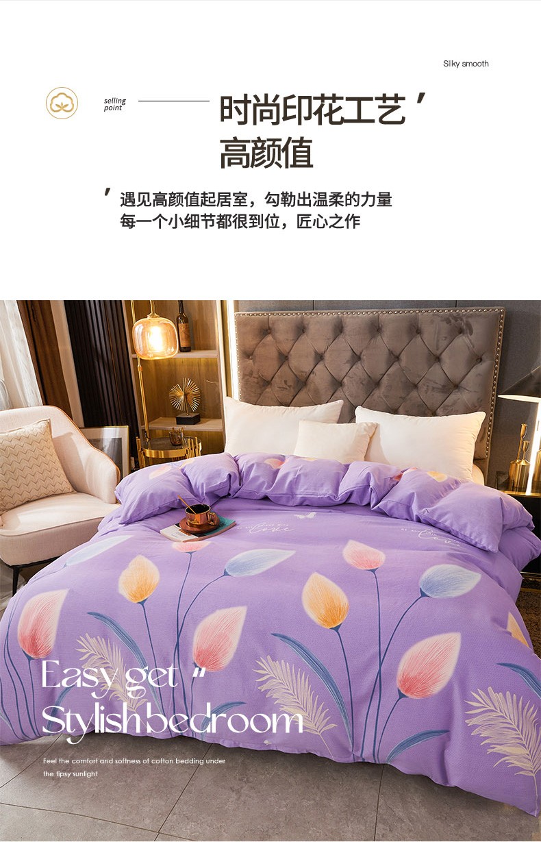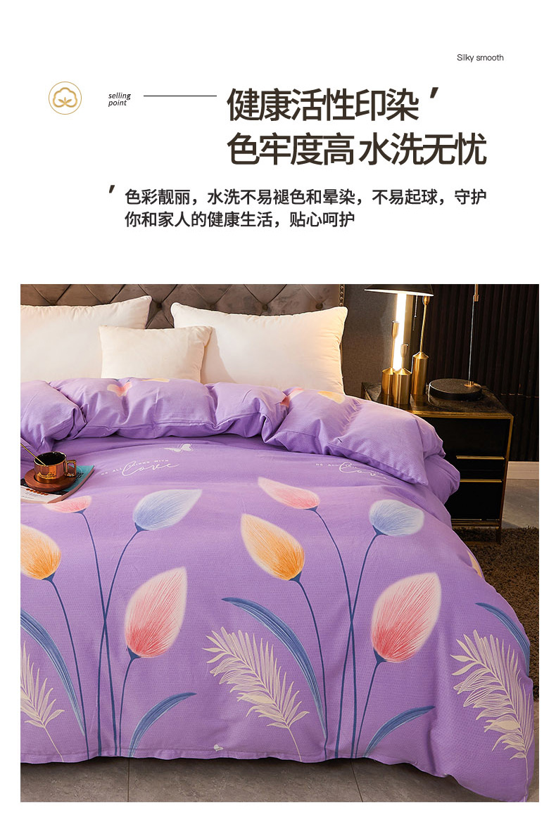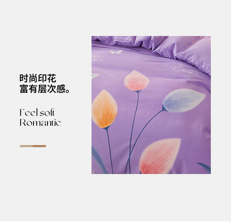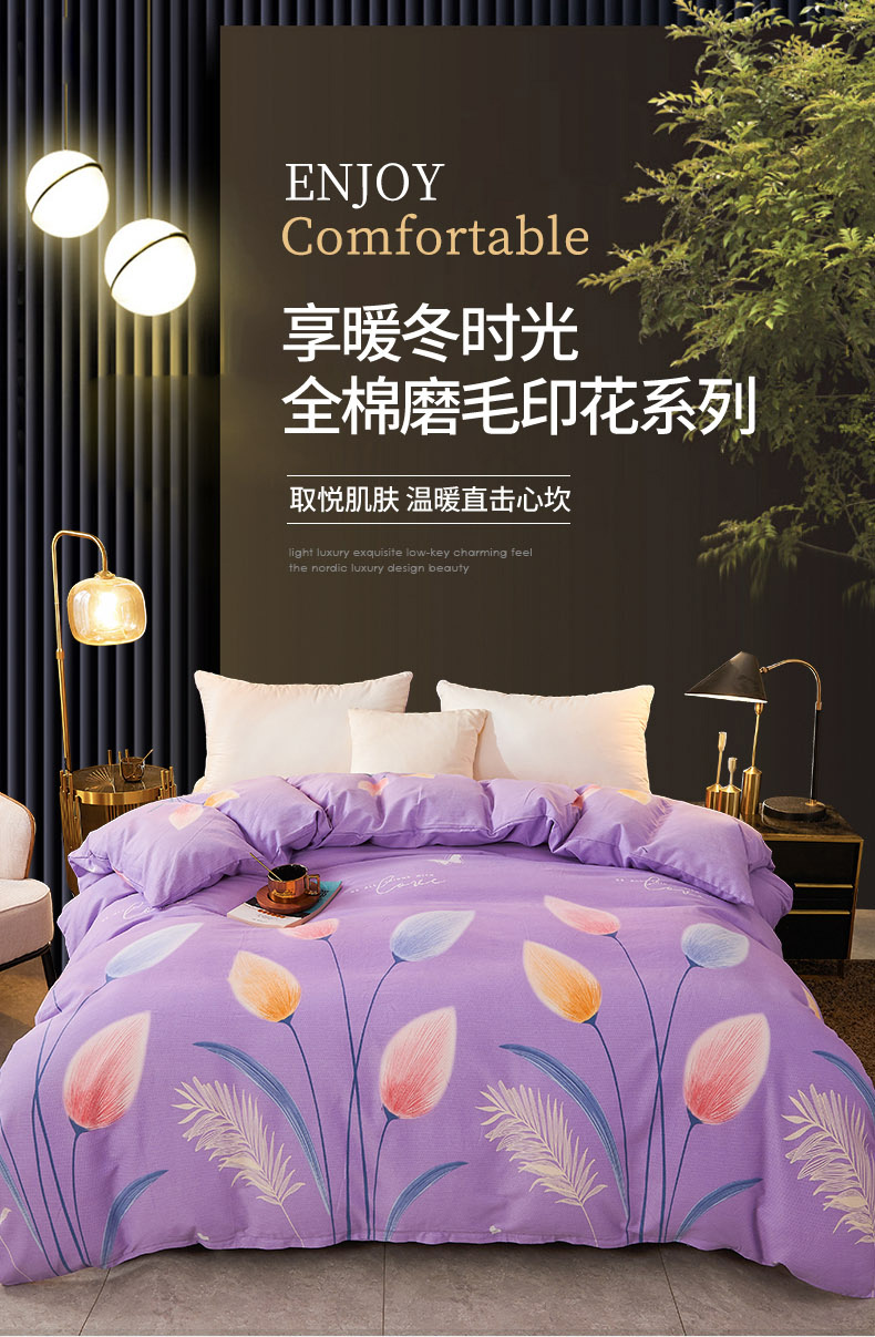 • 91家纺网 家纺一手货源 找家纺 伊而梦 2023新款全棉磨毛印花四件套系列单品被套 香兰草-紫