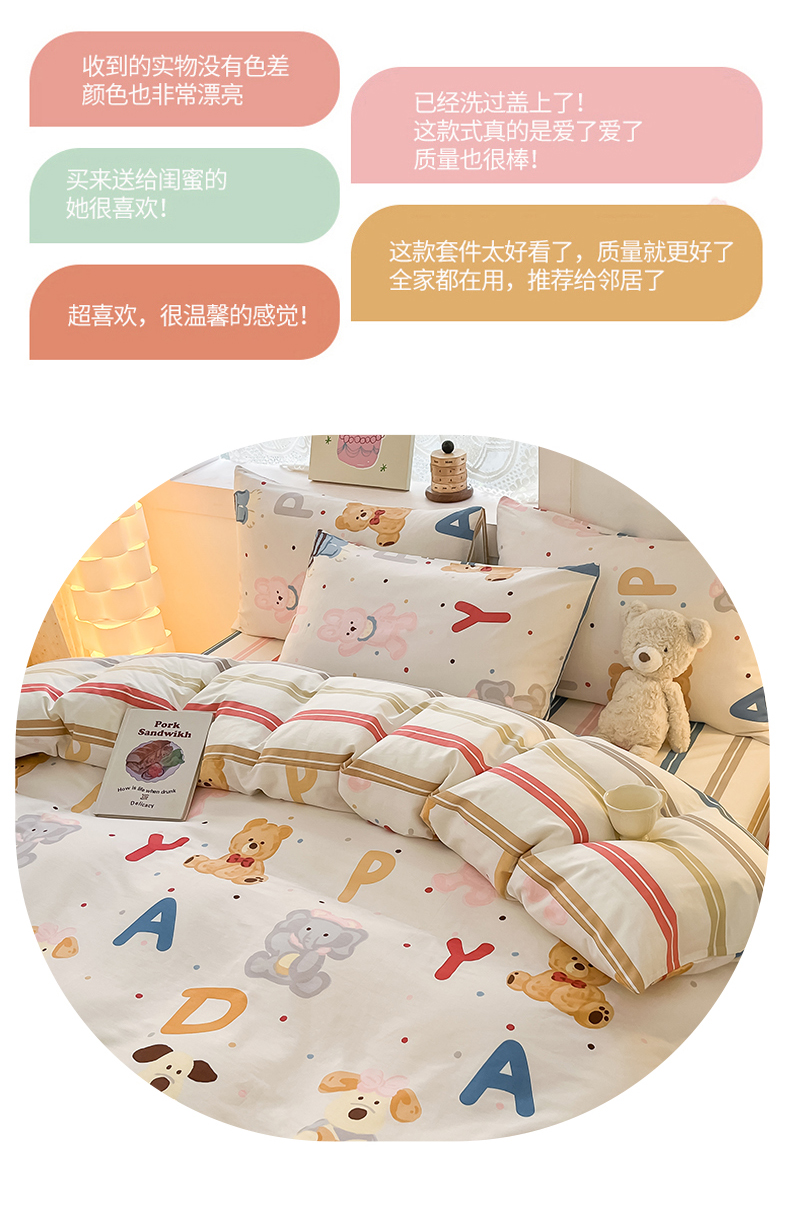 商品名称:曼之夏 2023新款全棉可爱卡通印花四件套 生日趴