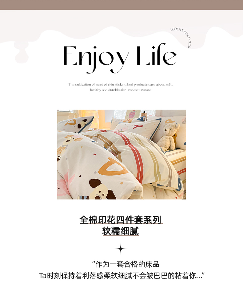 (总)曼之夏 2025新款全棉纯棉印花四件套,豹纹猫咪,笨笨象,缤纷乐园,草莓蛋糕,丛间密语,点点小腊肠,冬日可可狗,告白熊,格子小狗,快乐熊猫,萌萌哒,蜜糖,苹果熊仔,奇思妙想,圣诞星语,兔兔甜心,线团小猫,小熊序曲,心动狗狗,心心狗,星星凯蒂猫,幸运猪猪