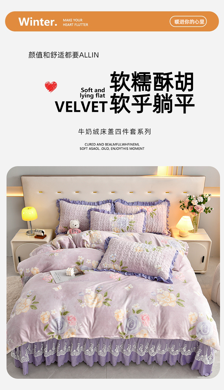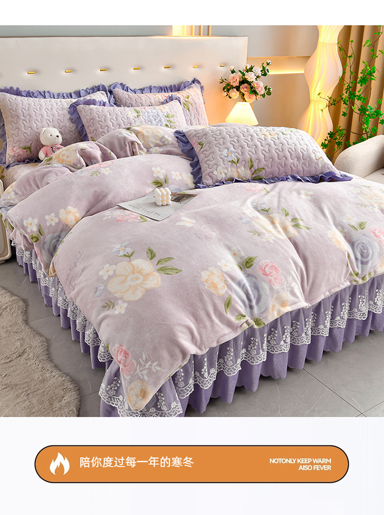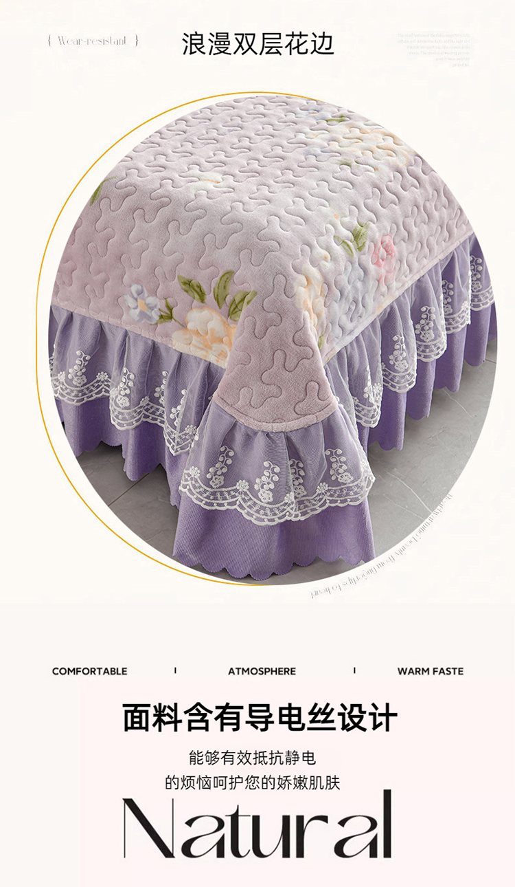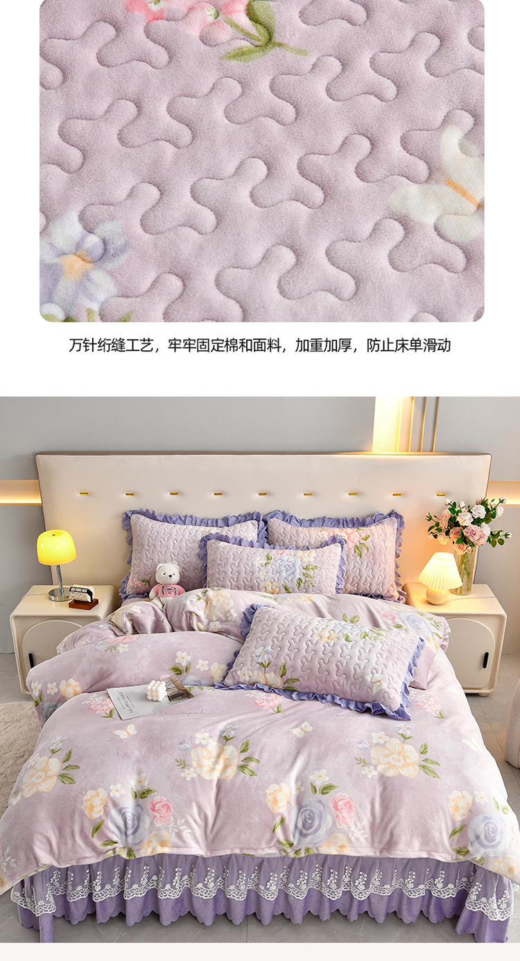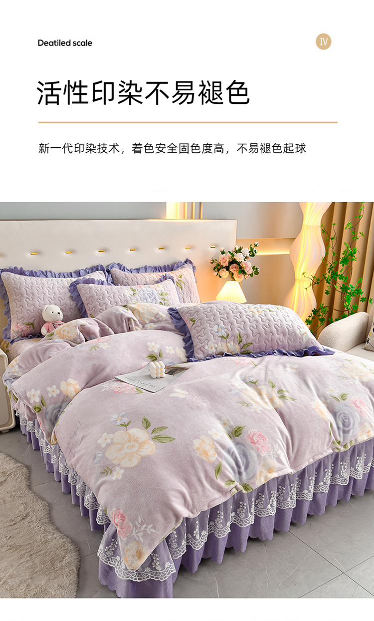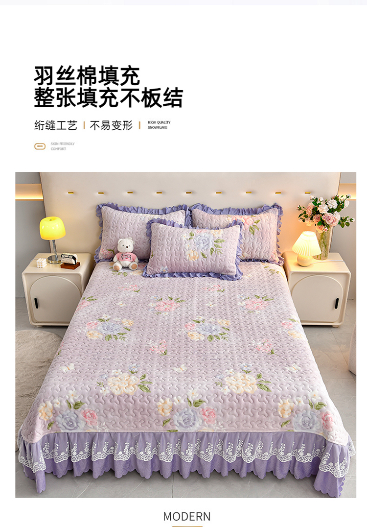 (总)三友家纺 直播爆款纯色韩版牛奶绒蕾丝花边床盖床裙单件三件套四件套,花颂-粉色,花颂-卡其,花颂-墨绿,花颂-浅紫,花颂-深灰,花颂-深蓝,花颂-天蓝
