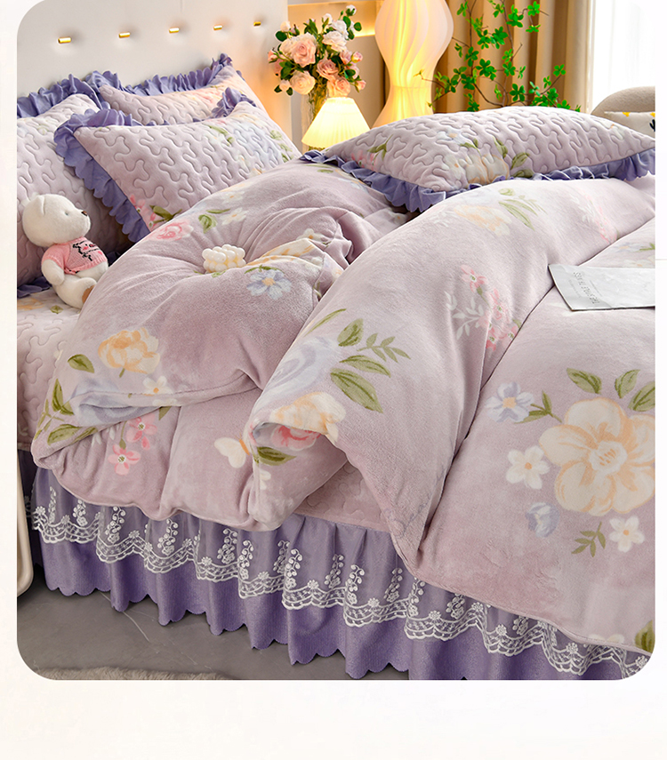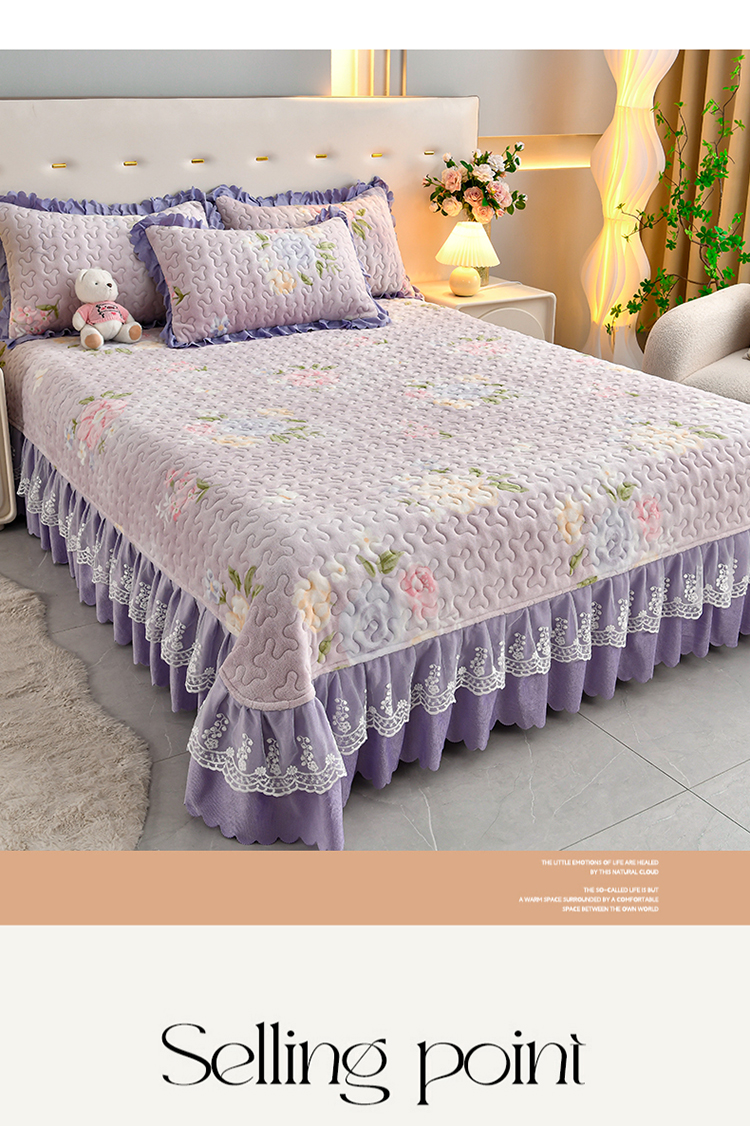 (总)三友家纺 直播爆款牛奶绒印花蕾丝花边床盖床裙单件三件套四件套