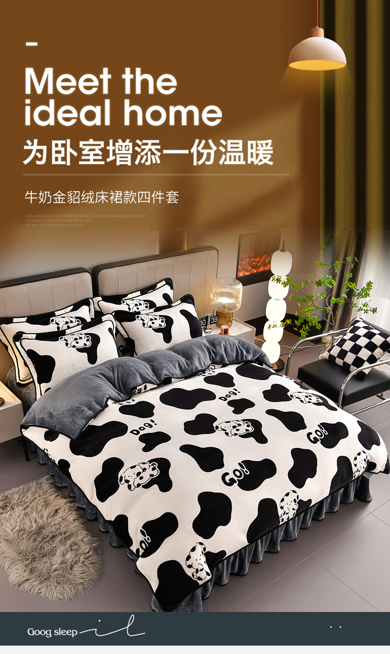 商品名称:馨梦缘 2025新款牛奶绒印花四件套 小奶狗