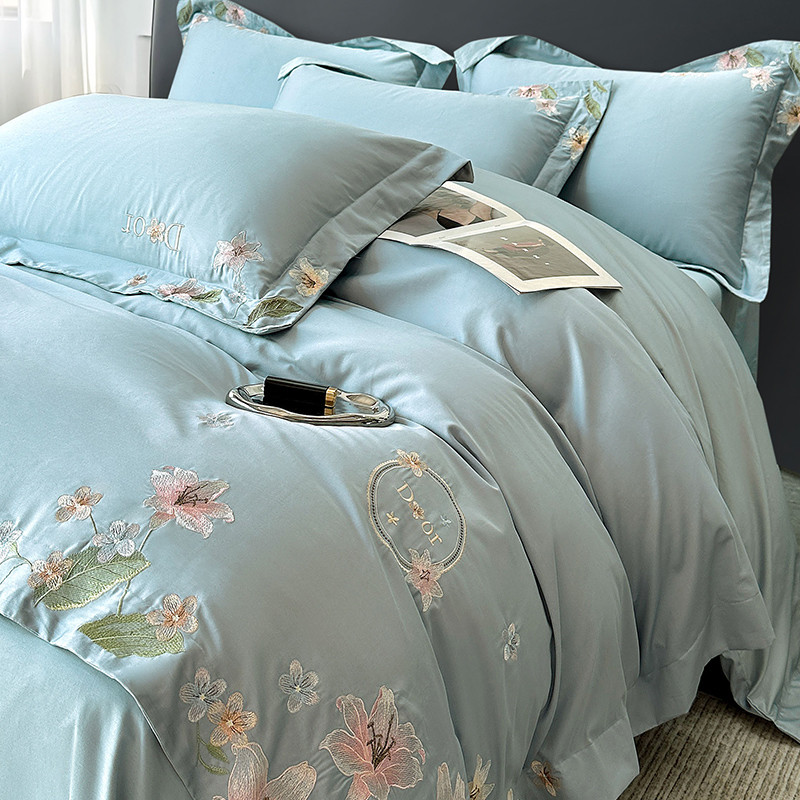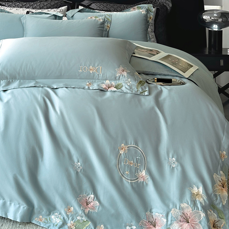 (总)宅家居 2023新款 设计款轻奢高精密贡缎提花臻品真丝四件套,迪奥-宾利蓝,迪奥-银灰,山茶花-粉玉,山茶花-蓝灰,山茶花-浅紫,香乃乃-米白