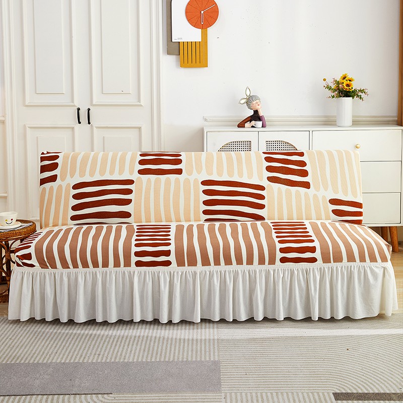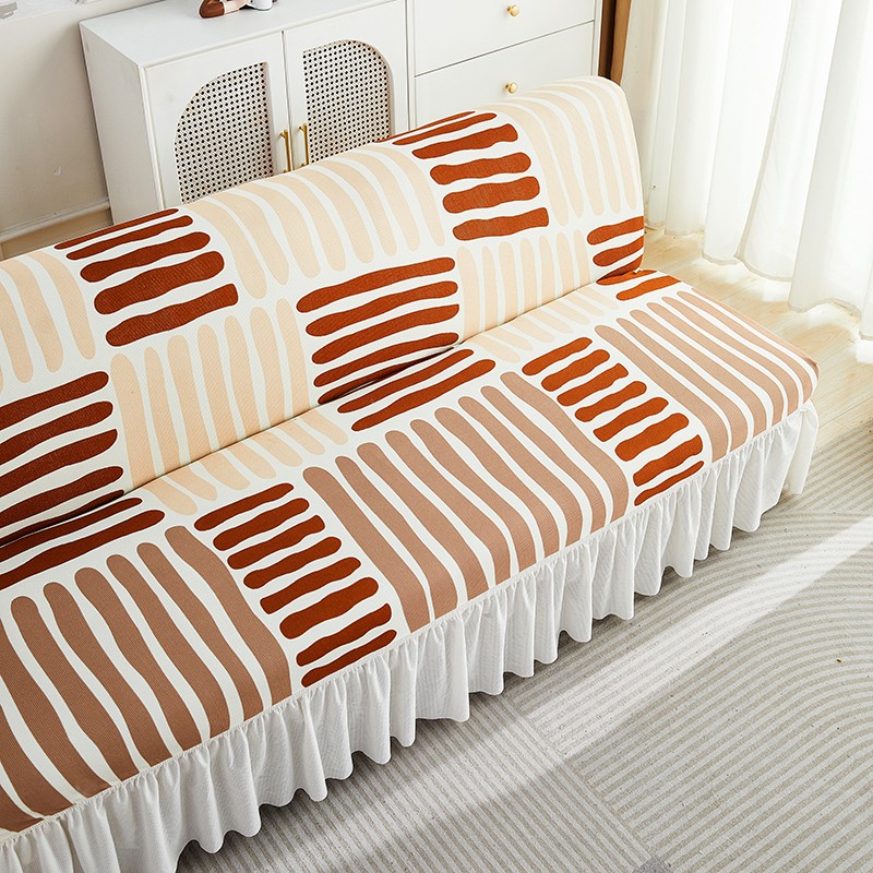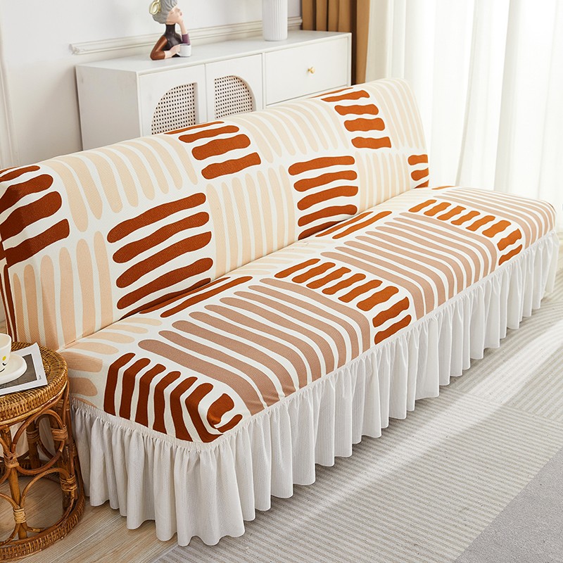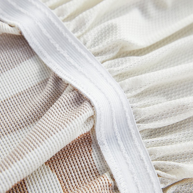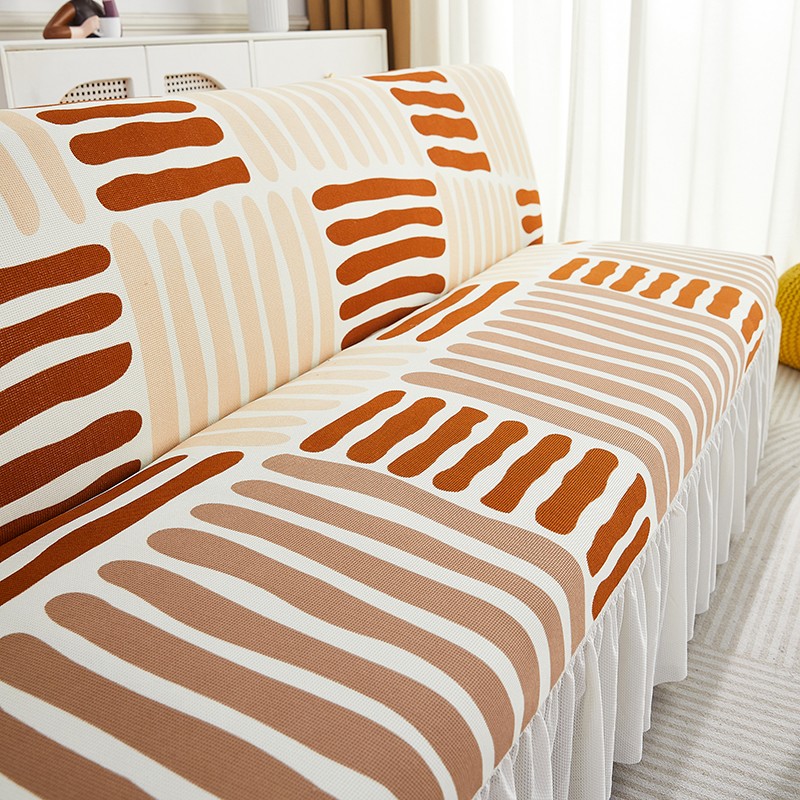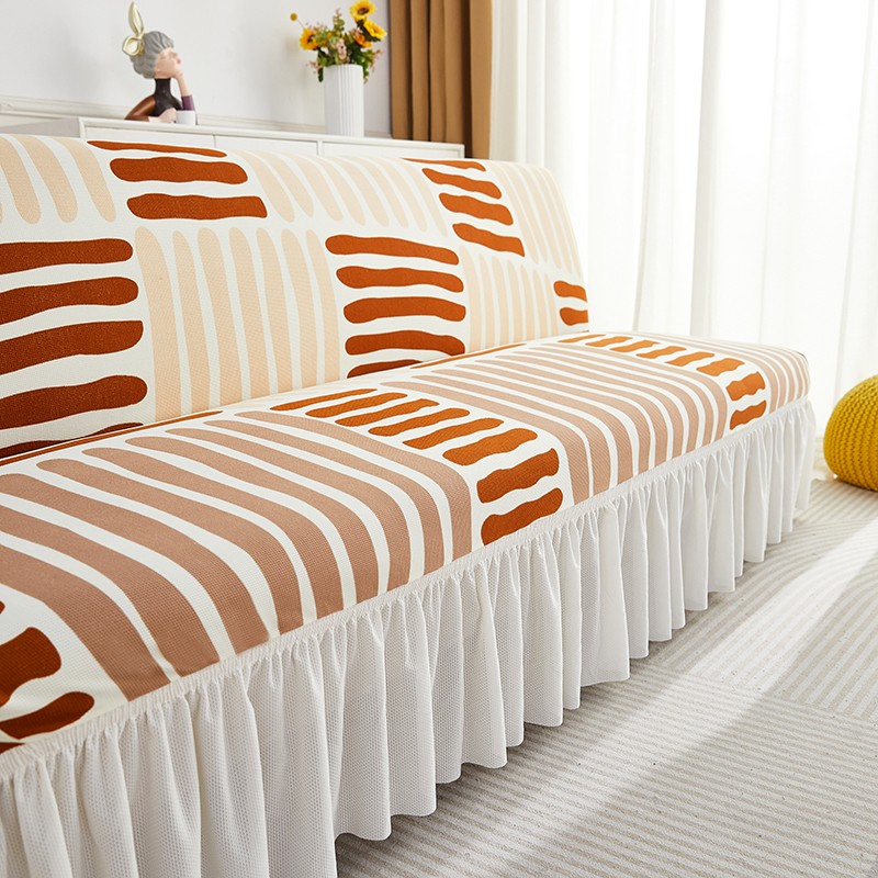 丝绮鹿 2023新款针织柔肤格沙发床套裙边款 米咖条纹